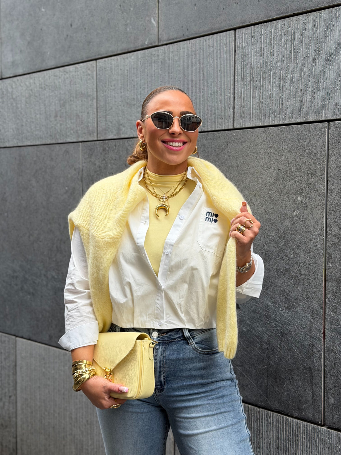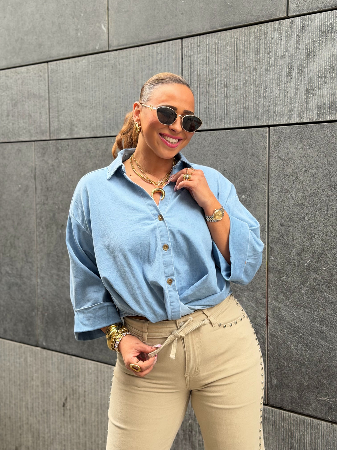 Cropped viscose katoenen bloesje die je heel leuk op een jeans kan combineren. De bloes...