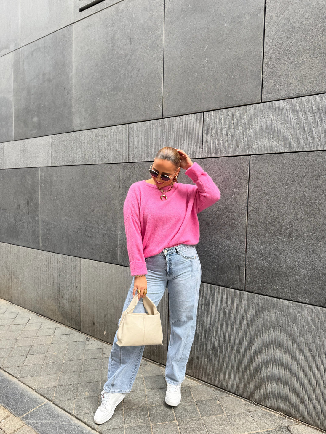 Super mooie zachte sweater met een omgeslagen mouwtje. Lekker baggy, one size, draagbaar voor de...