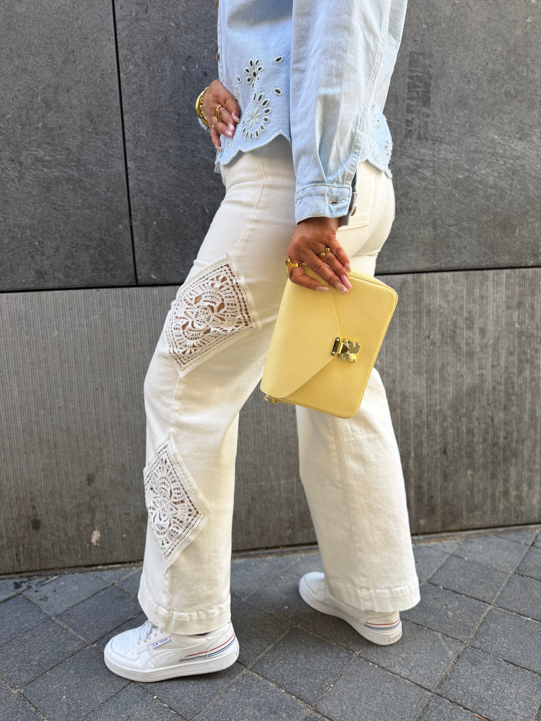 Mooie high waist stretchy jeans met leuke gehaakte details aan de zijkant. Ons model is...