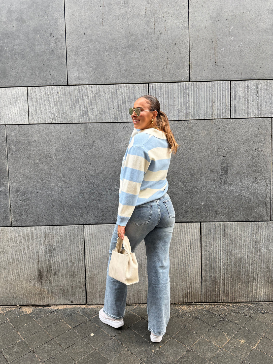 Mooie zipper sweater met streepjes! One size, draagbaar voor de maatjes xs t/xl. Geen wol,...