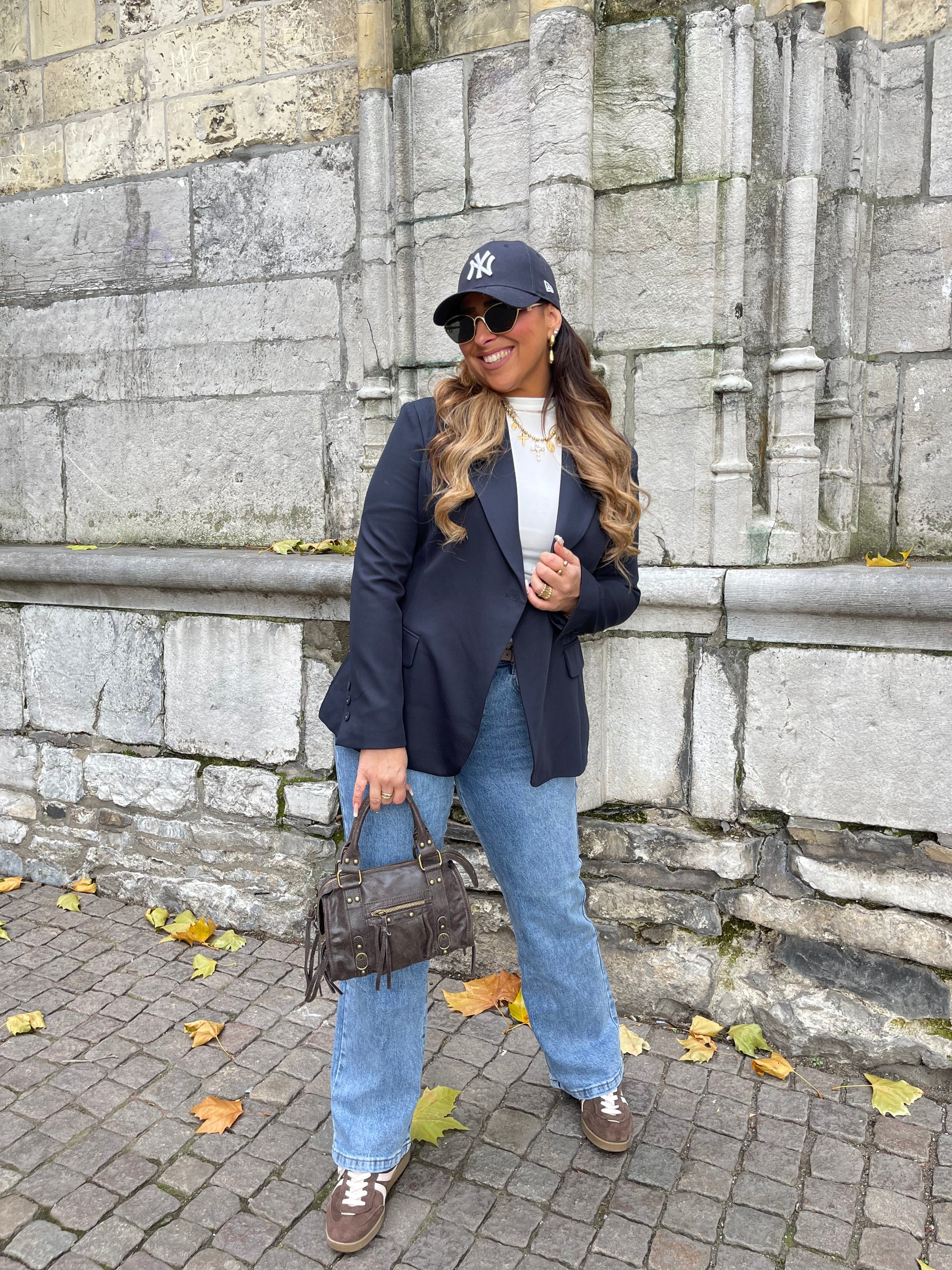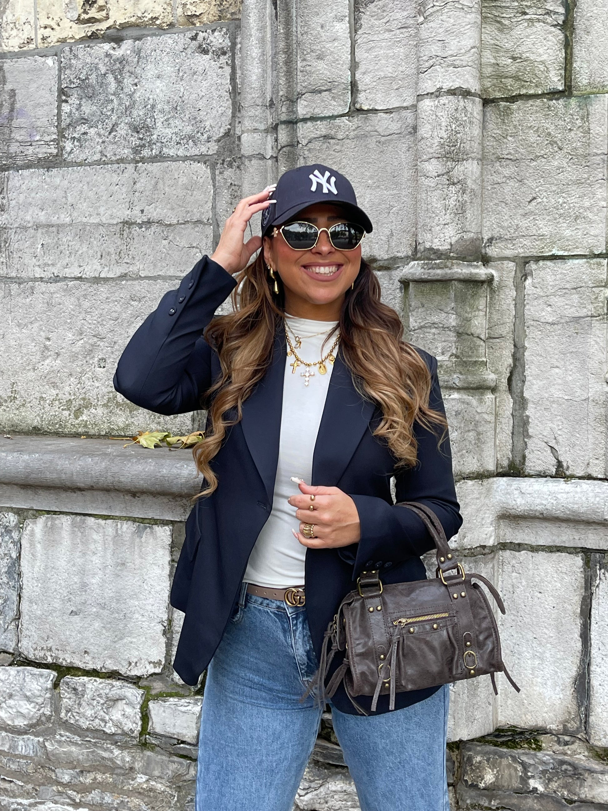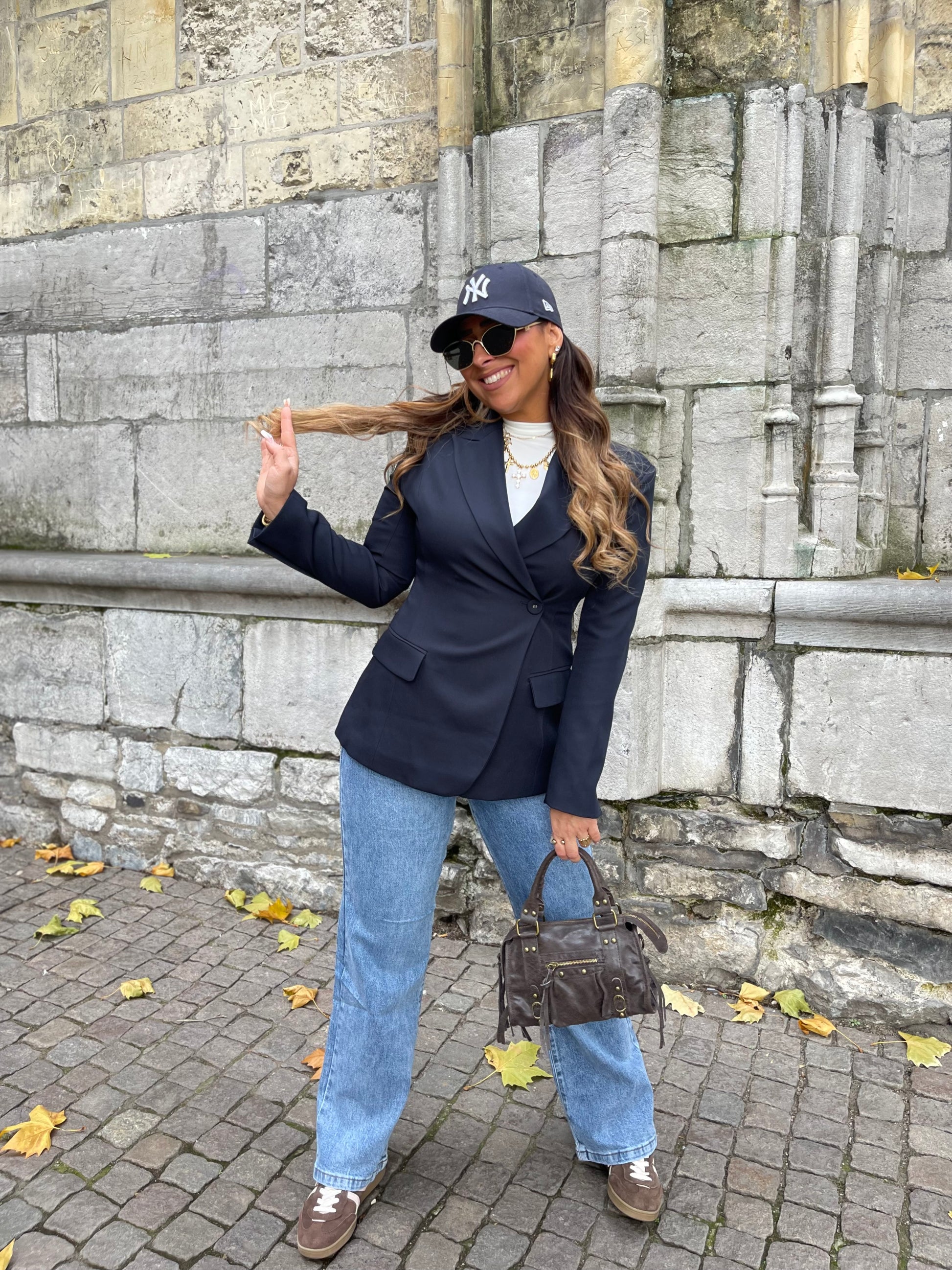 Mooie getailleerde blazer die je heel leuk kan combineren met een van onze mash tops en jeans. Goede pasvorm, ons model is 1.74m lang en draagt maat m.