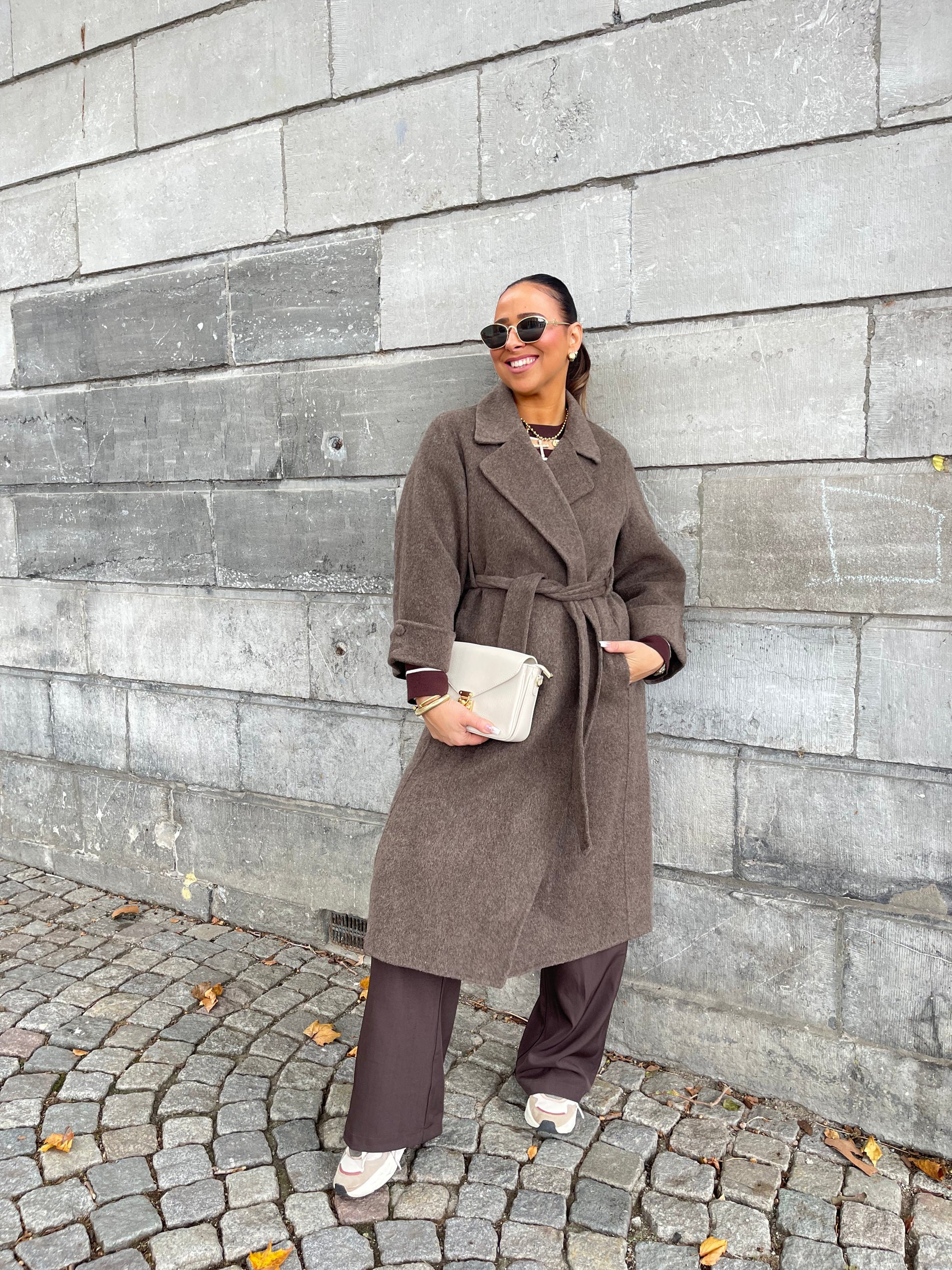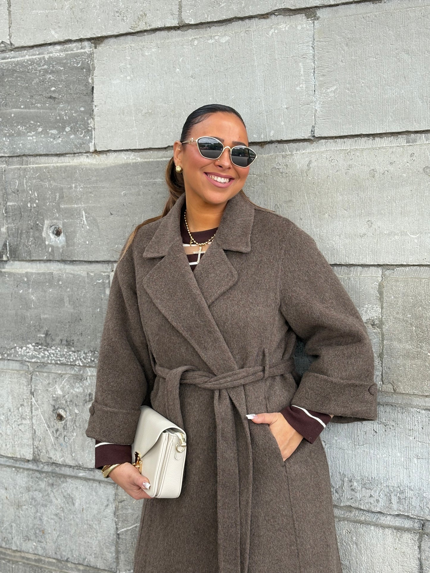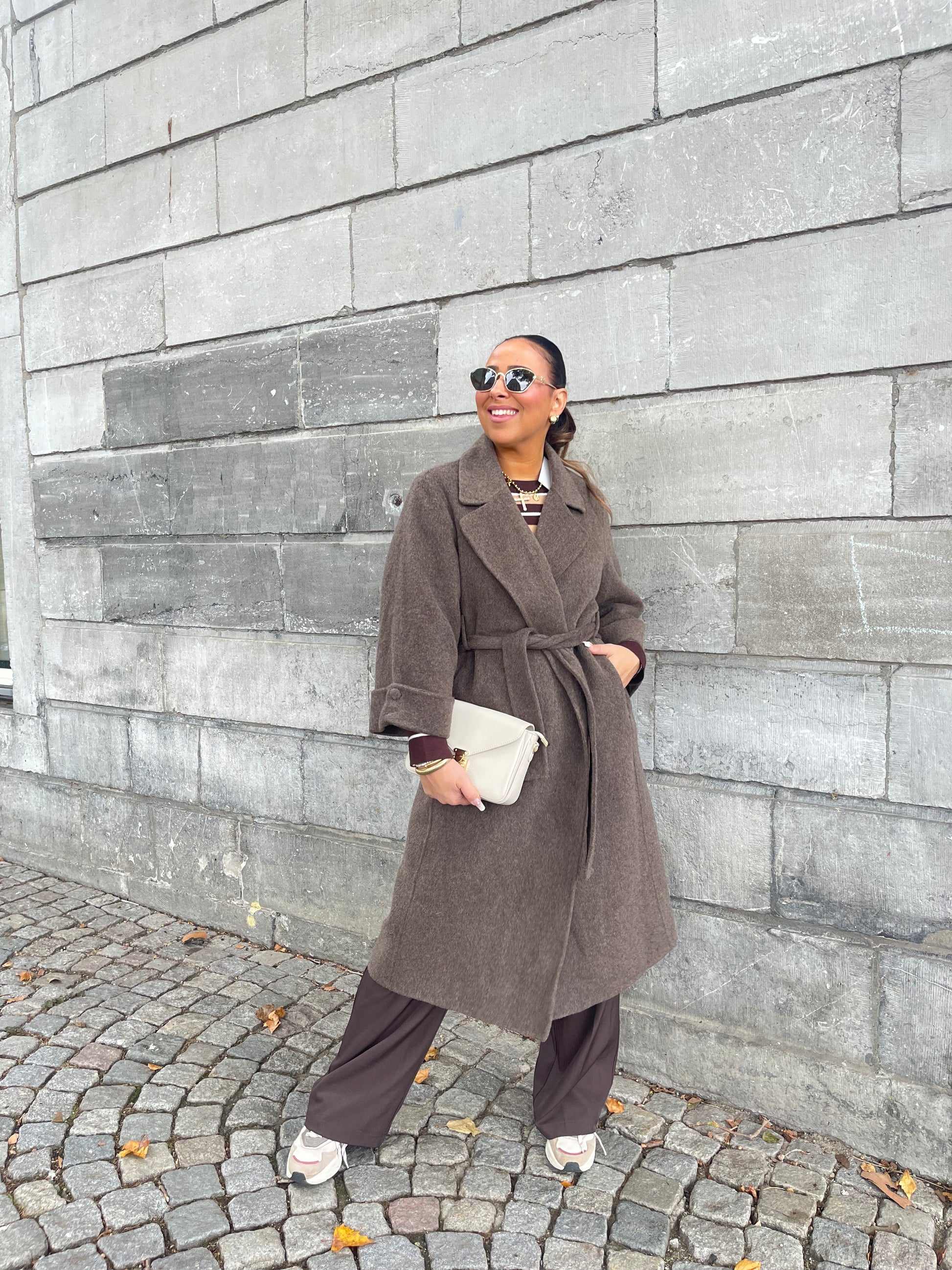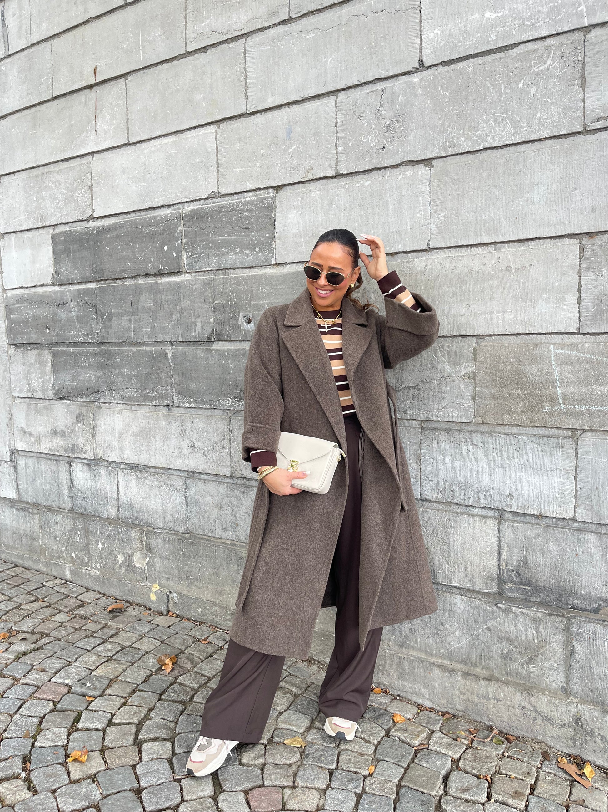 Wauwyyyy wat een plaatje! Trenchcoat gemaakt van 69% laine. Heerlijk warm en mega stylish voor de koude dagen! One size, draagbaar voor de maatjes xs t/m l.