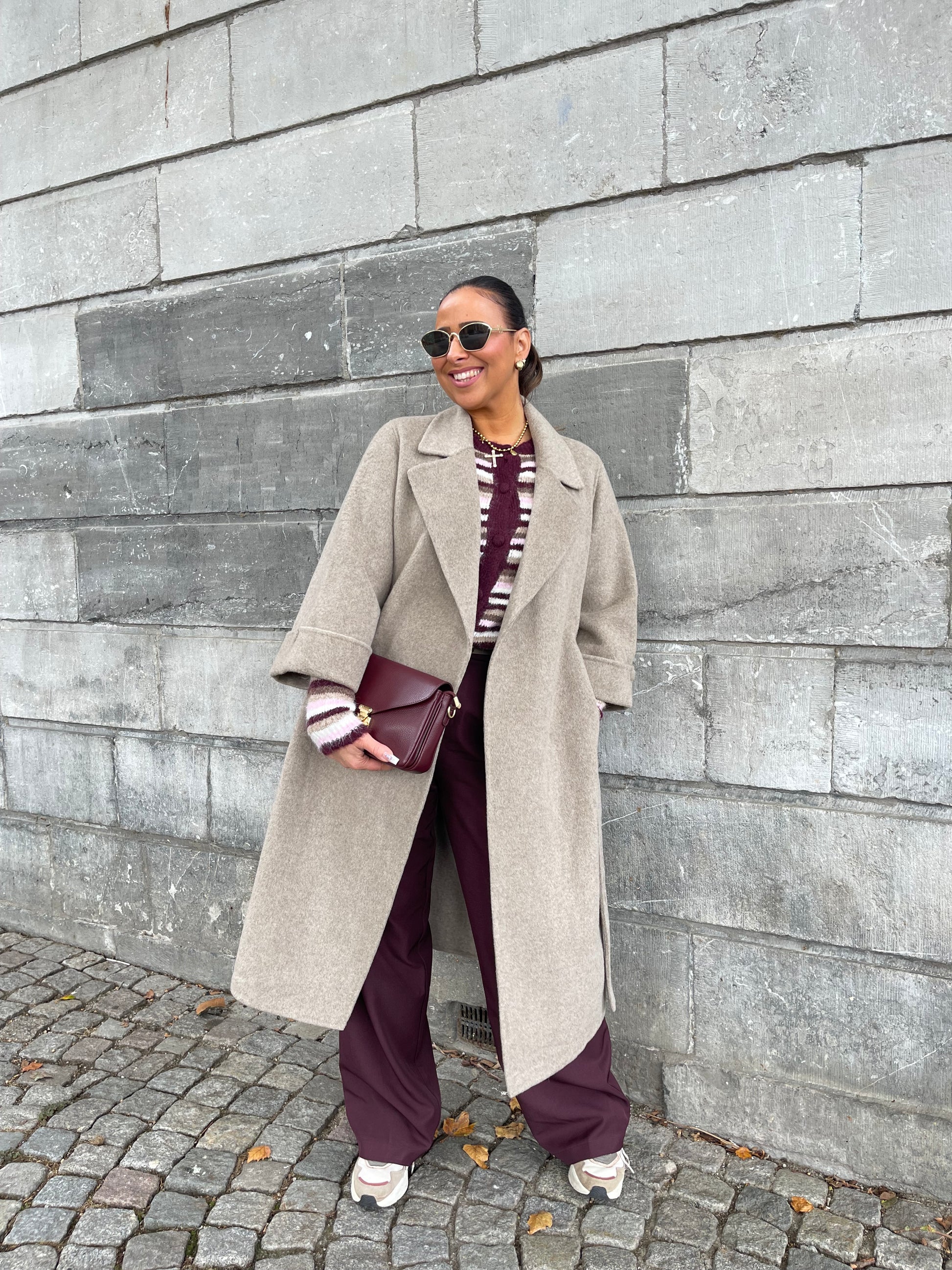 Wauwyyyy wat een plaatje! Trenchcoat gemaakt van 69% laine. Heerlijk warm en mega stylish voor de koude dagen! One size, draagbaar voor de maatjes xs t/m l.