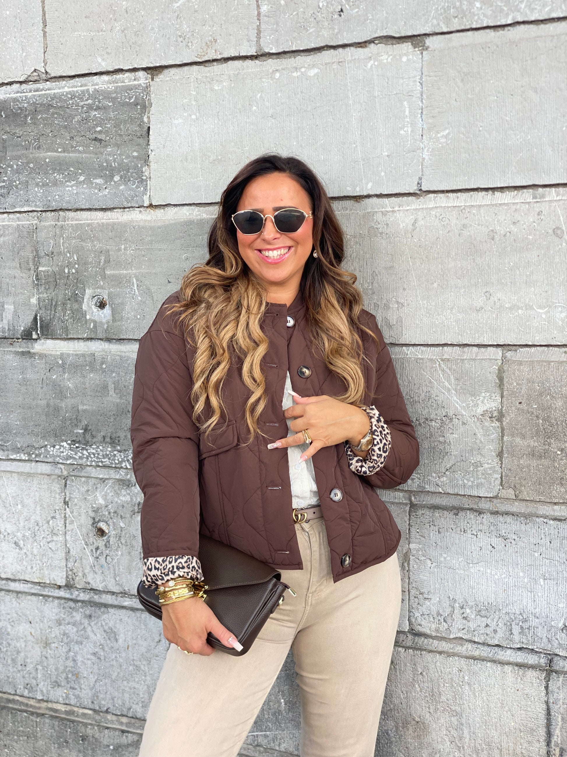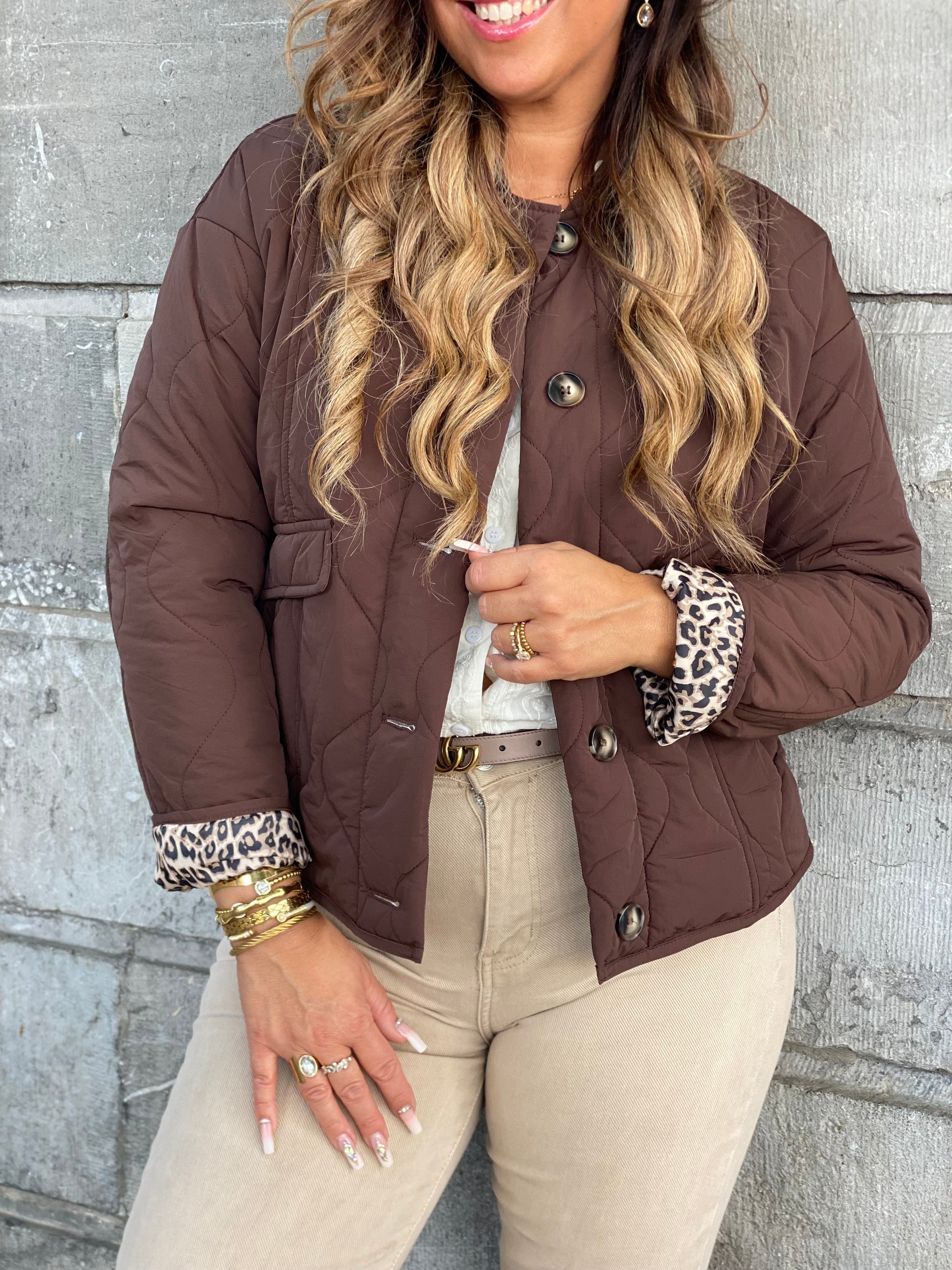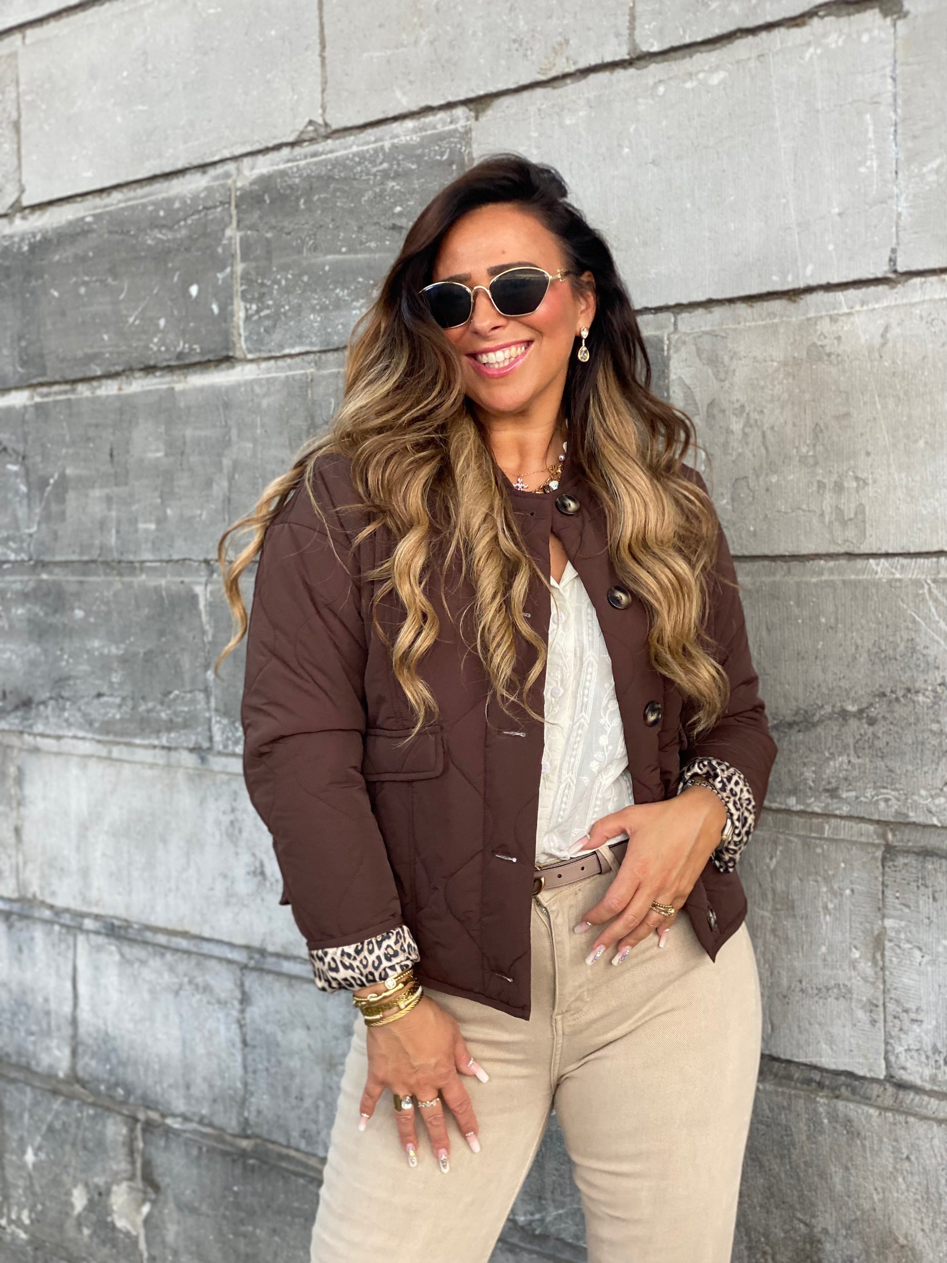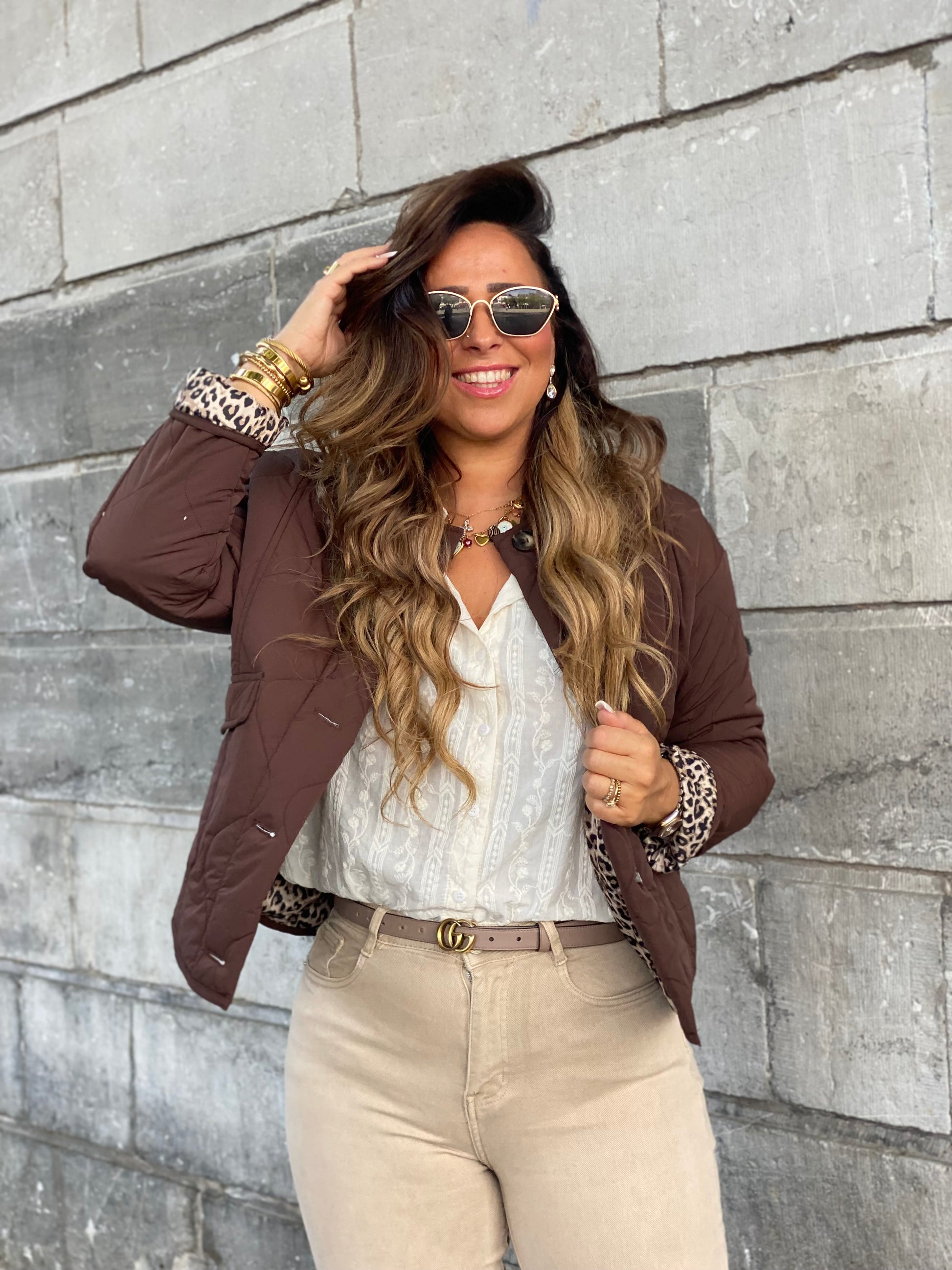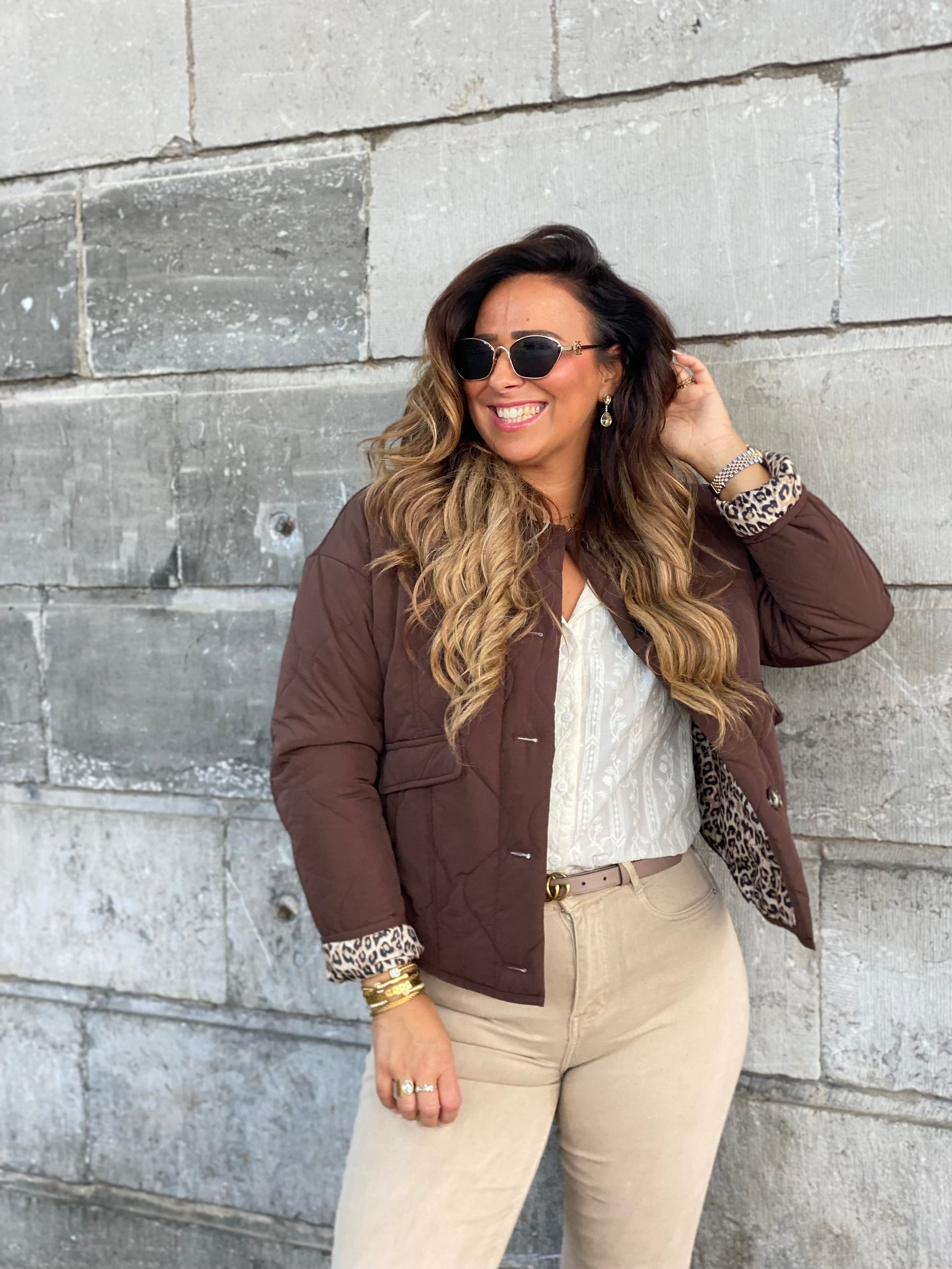 Schattig puffer jasje met een tijgerprintje aan de binnenkant. Ruime fitting, ons model is 1.74m lang en draagt maat m/l.