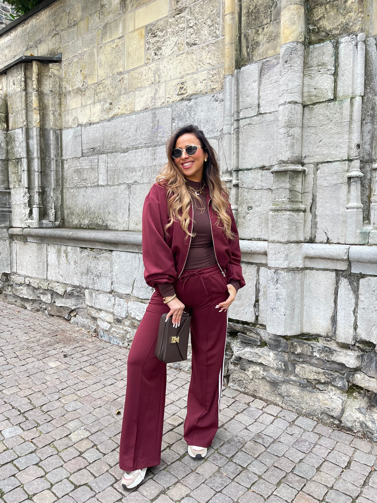 Oversized jasje met pofmouwtjes. Super leuk om met onze matching jogger te dragen, maar ook heel leuk op een jeans. Ons model is 1.74m lang en draagt maat m.