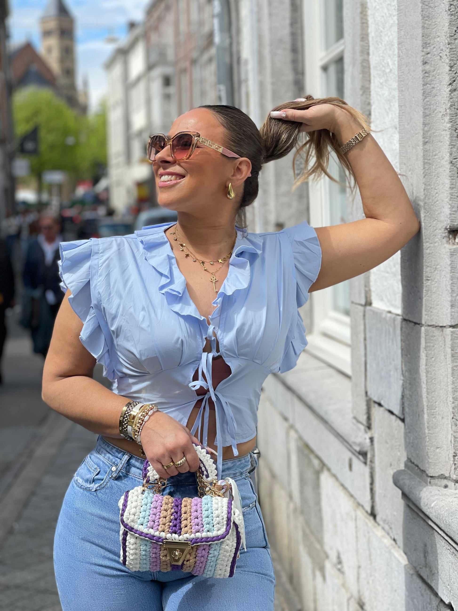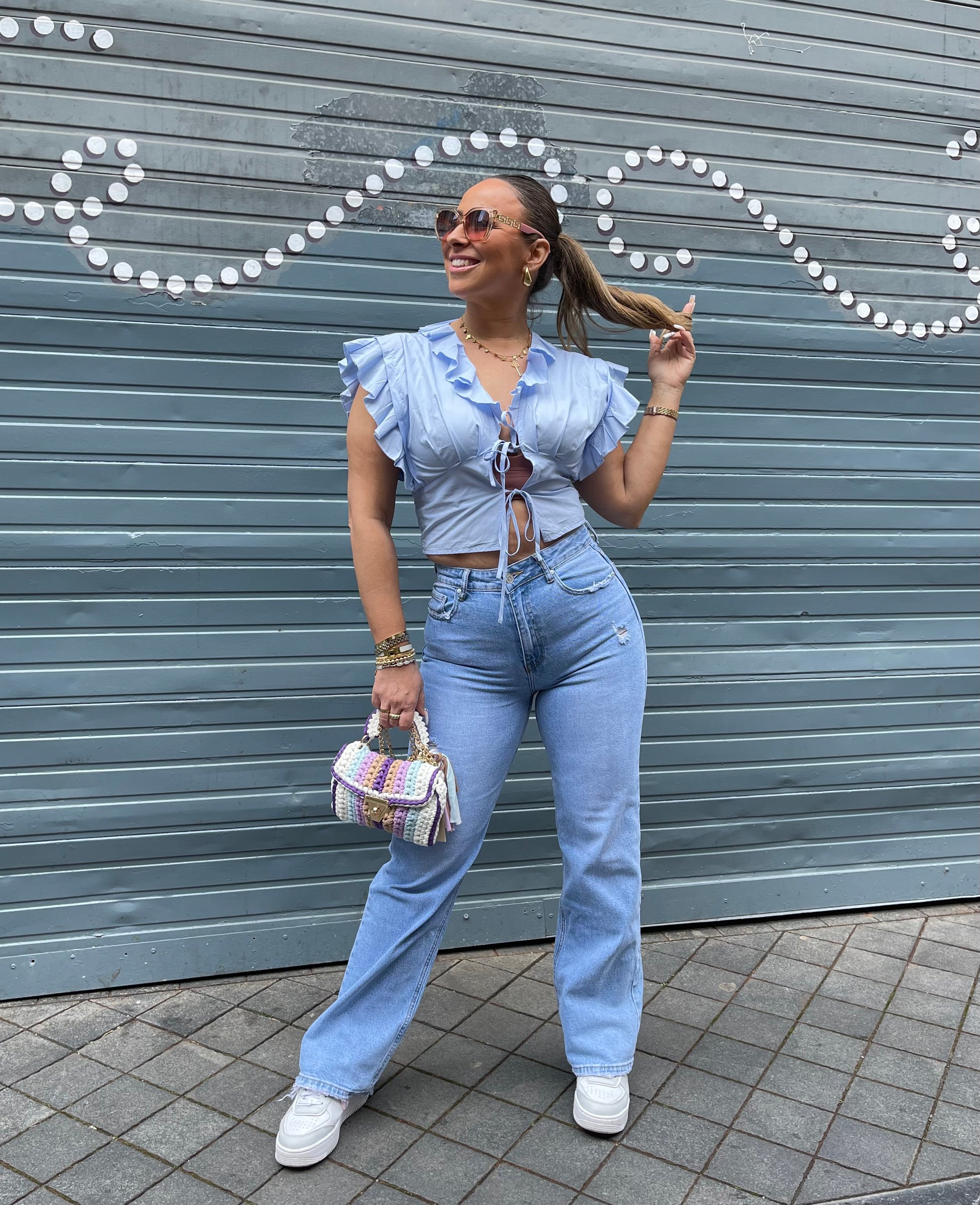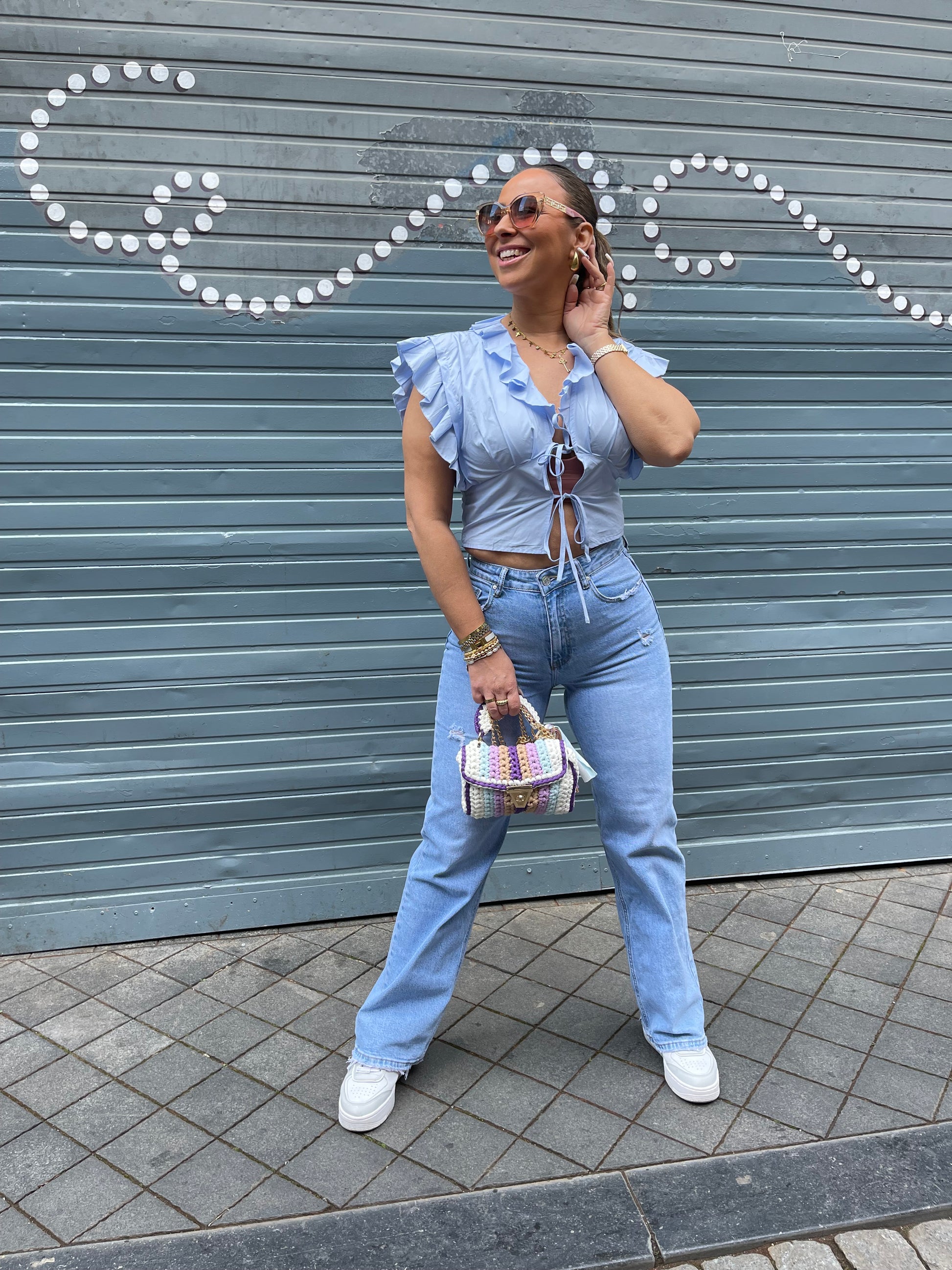 Too cute a bag to style all your summer looks with. The bag also has a gold strap so you can also wear it as a crossbody.