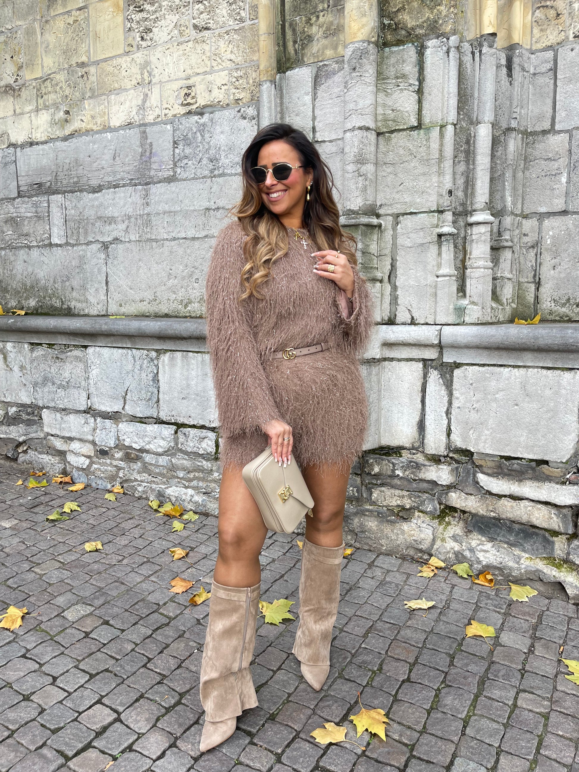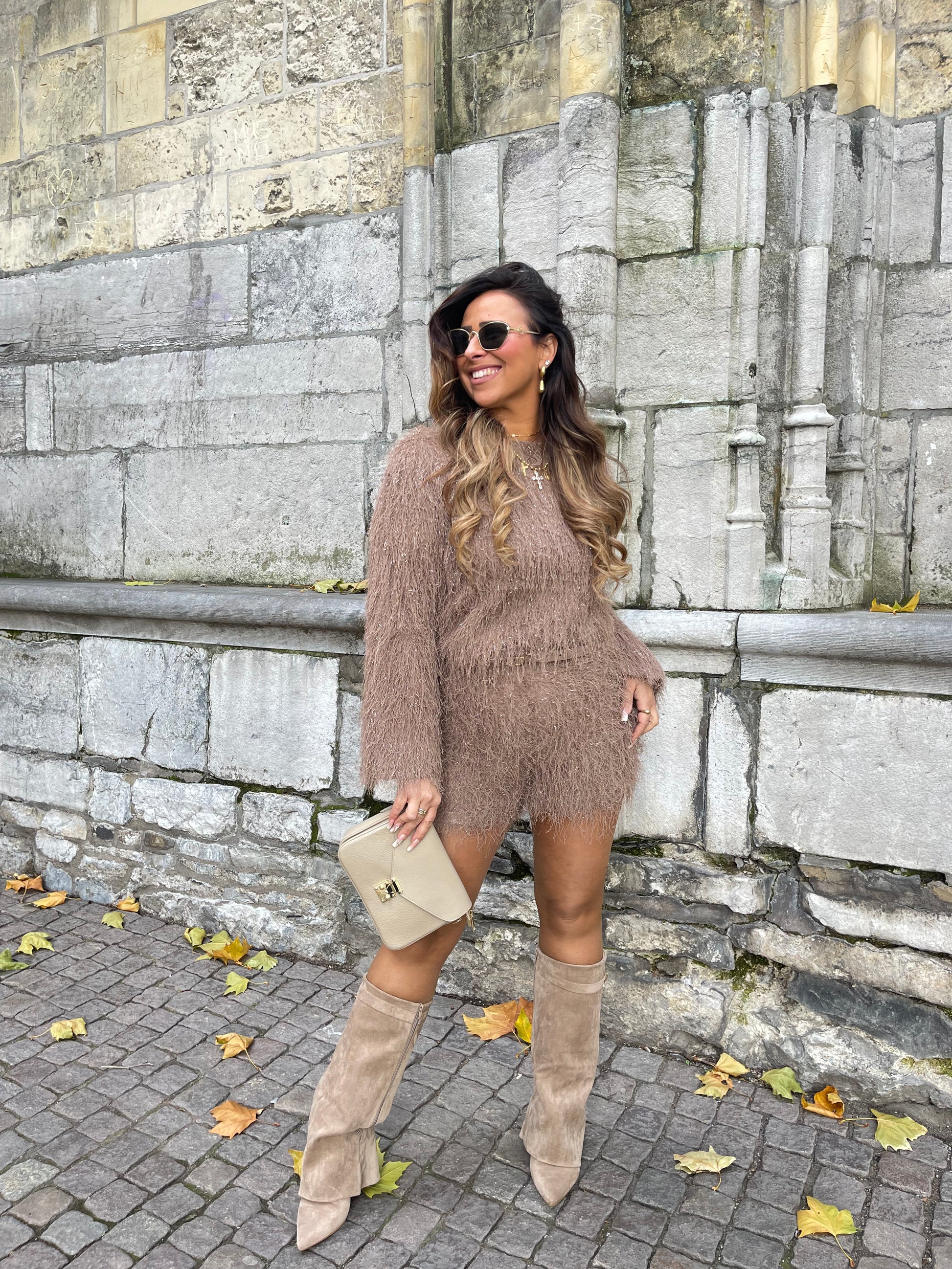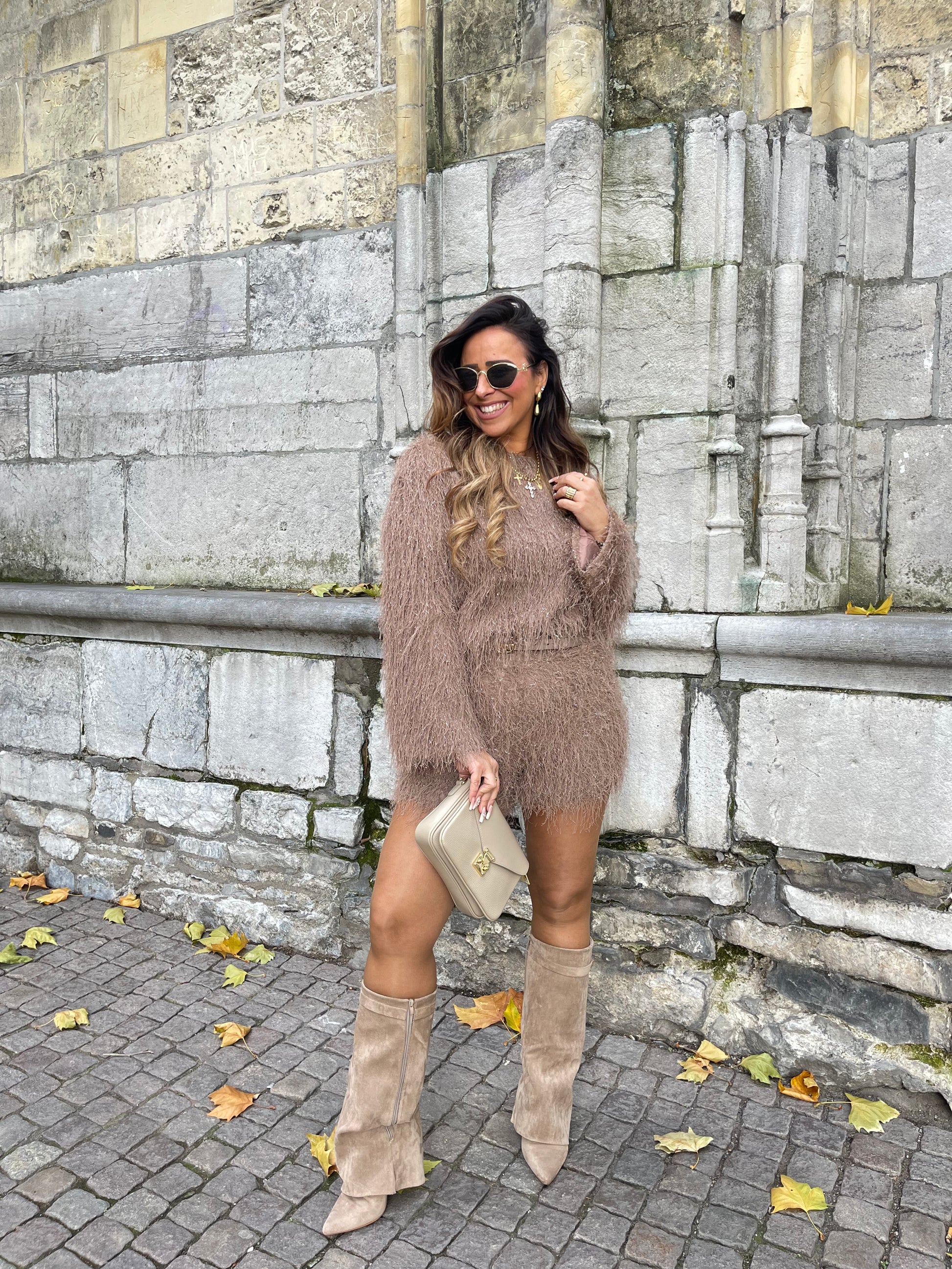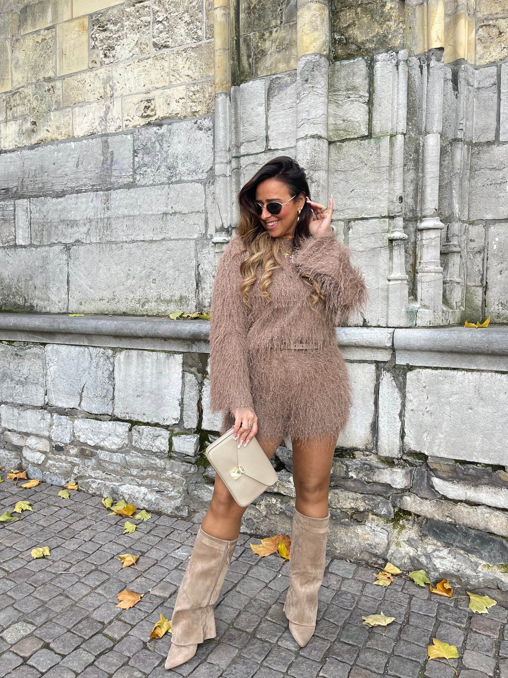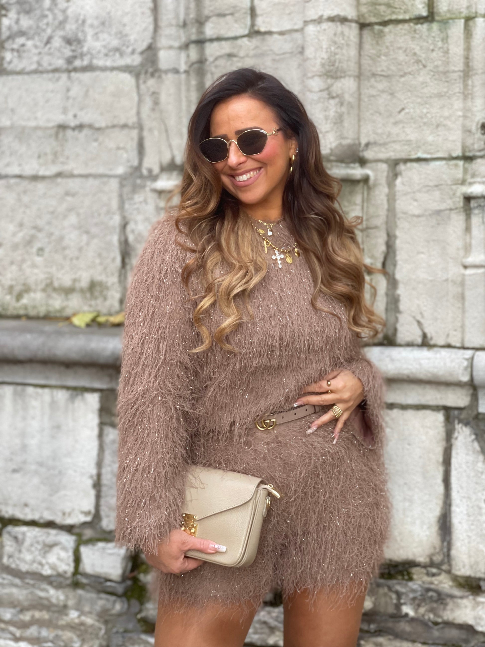 Super mooie fluffy top met zilveren details. Erg leuk te combineren met een van onze mooie pantalons of met ons matching shortje. Ons model draagt maat m en is 1.74m lang.