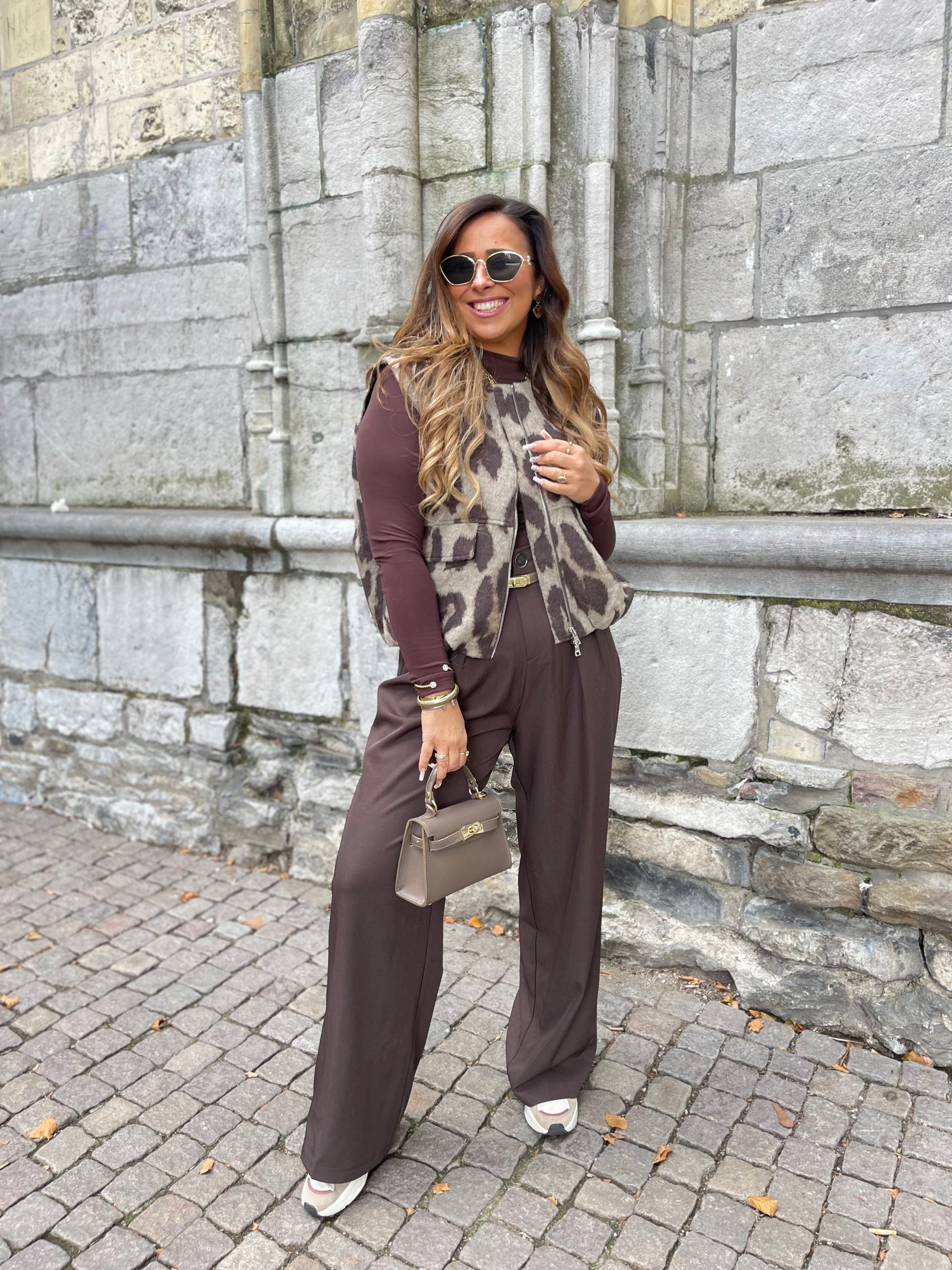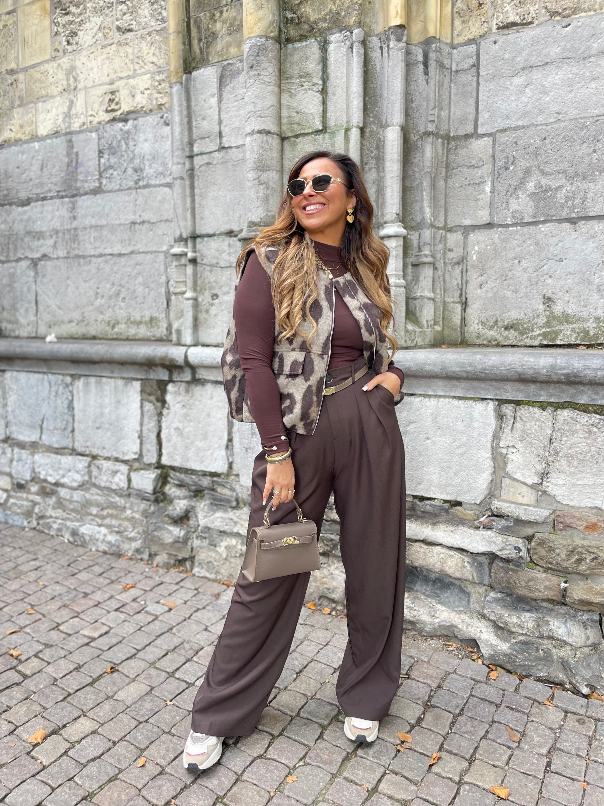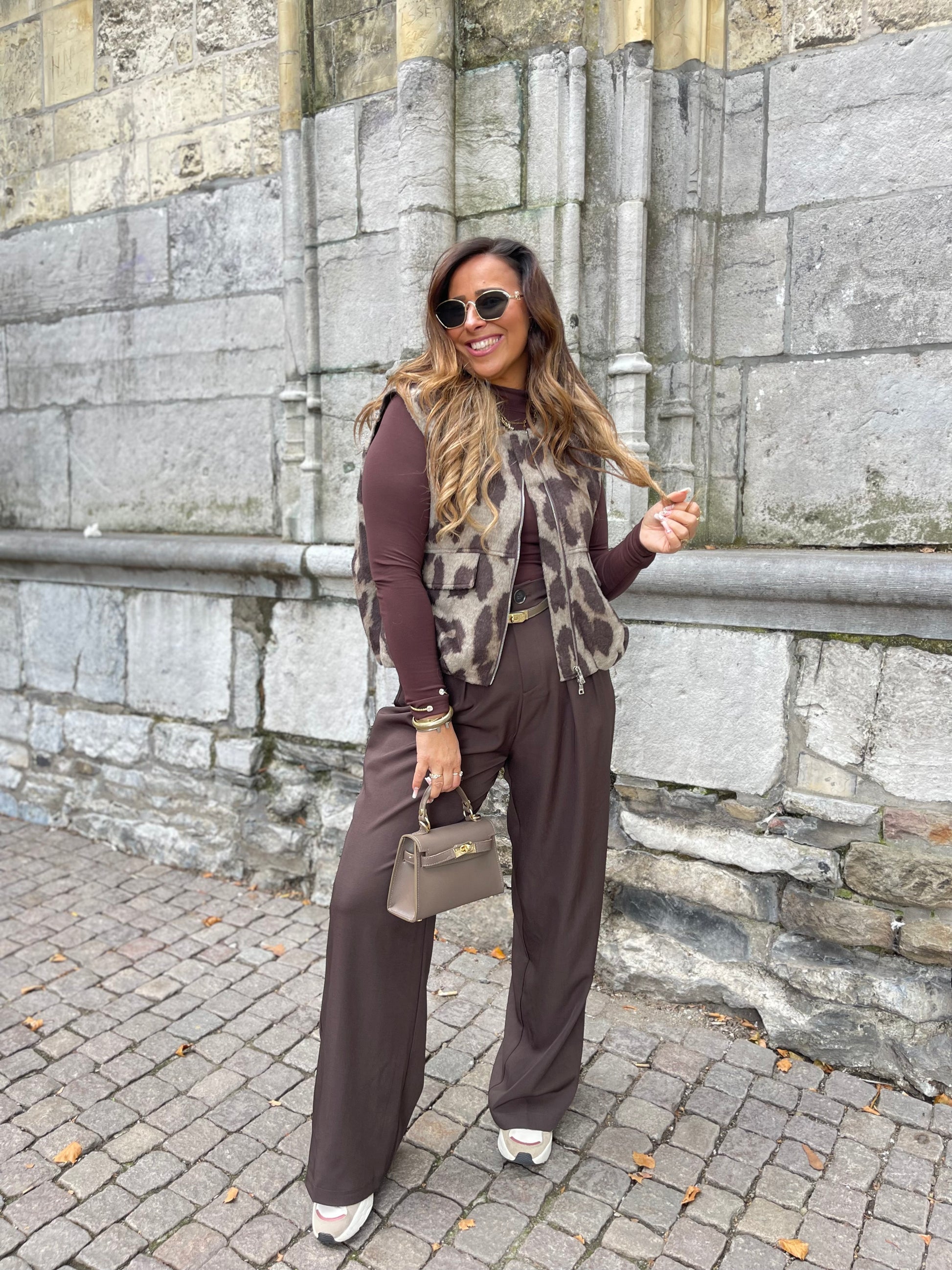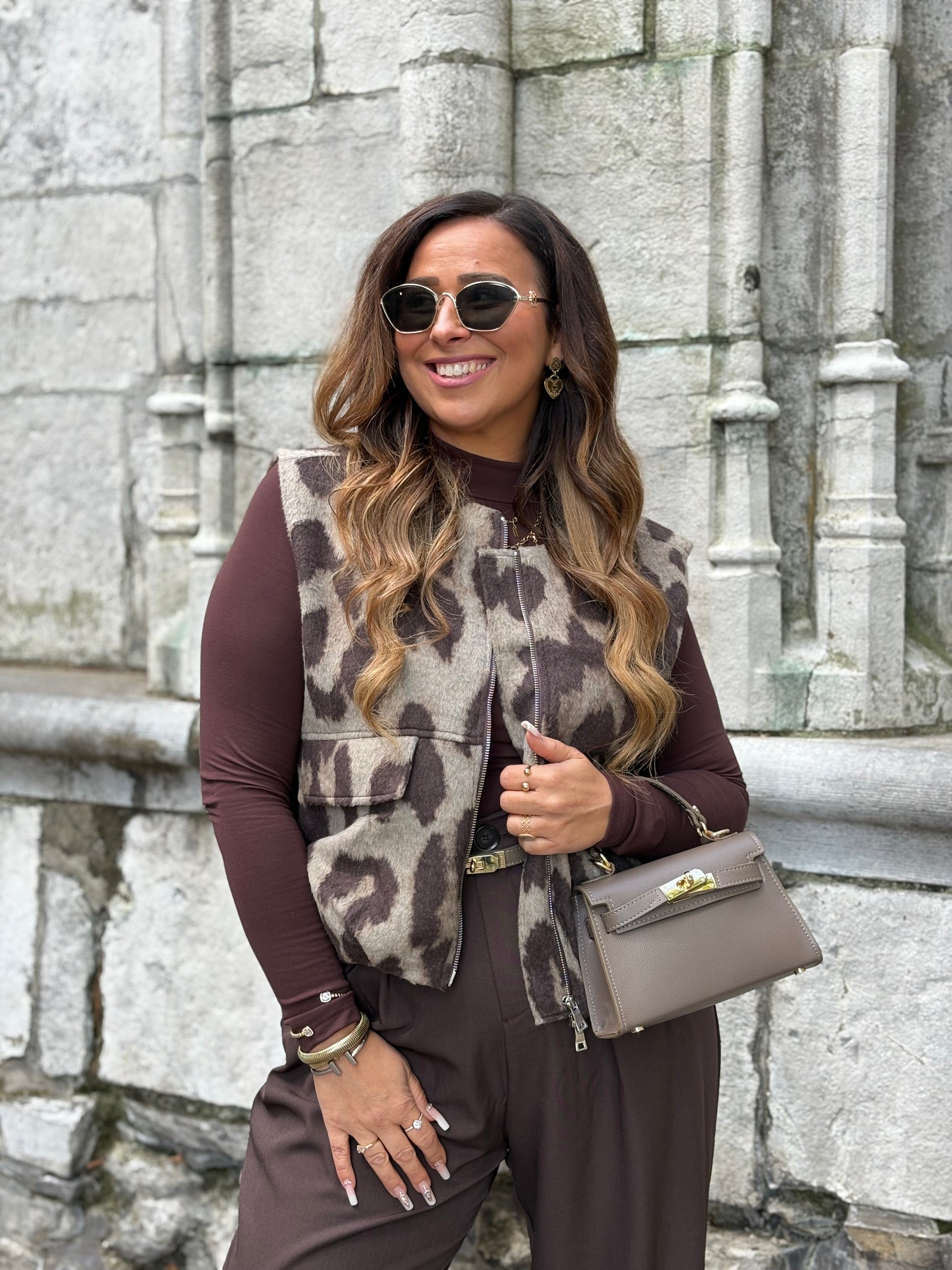 Oversized gilletje met een leopard printje. Super mooi op een jeans of pantalon te combineren. Ons model is 1.74m lang en draagt maat s/m.