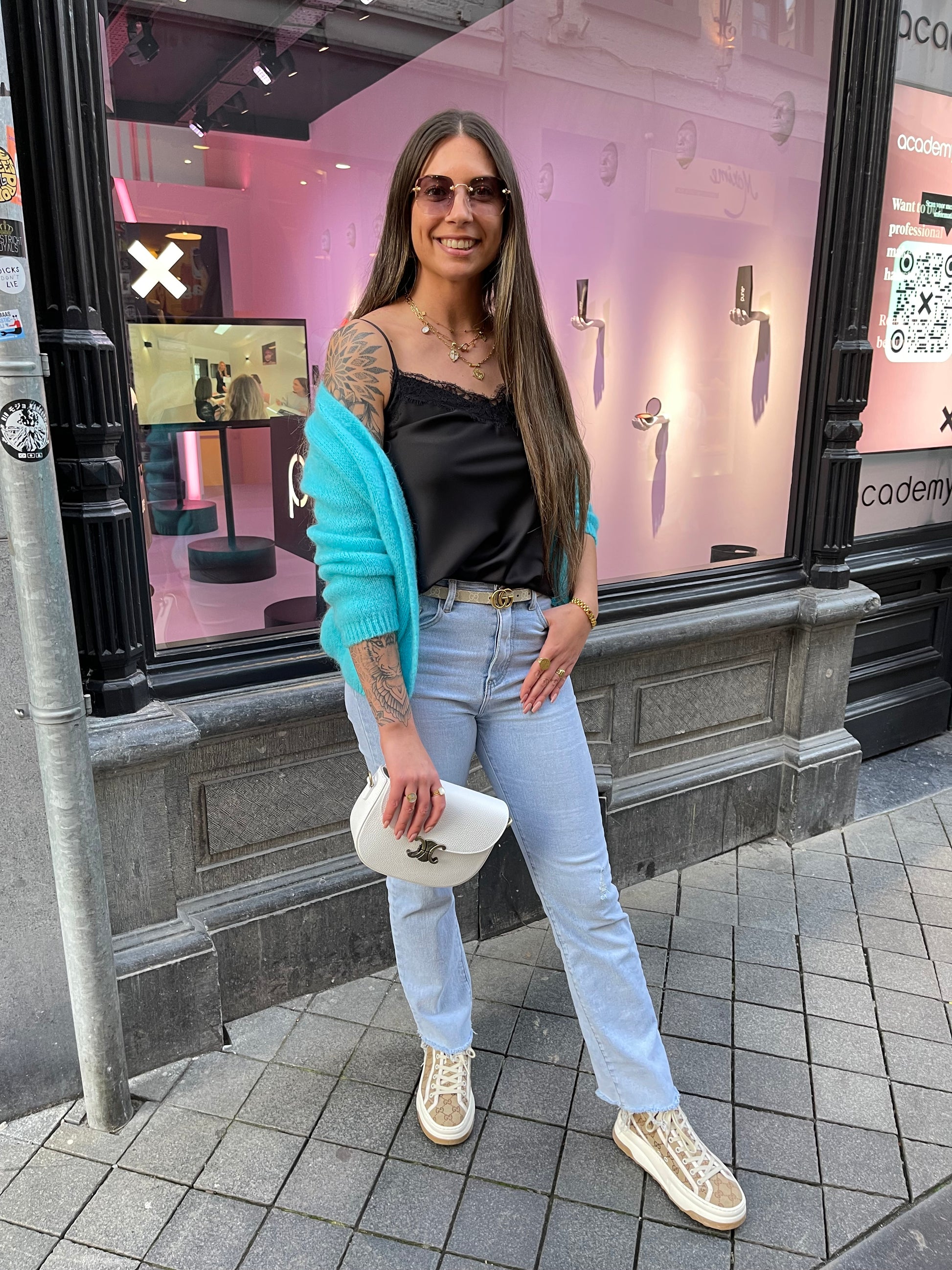 Super cute top with lace detail around the neck. The top is one size and is suitable for sizes xs to l. Super fun to wear under one of our must-have jackets, cardigans or dresses! Love it….