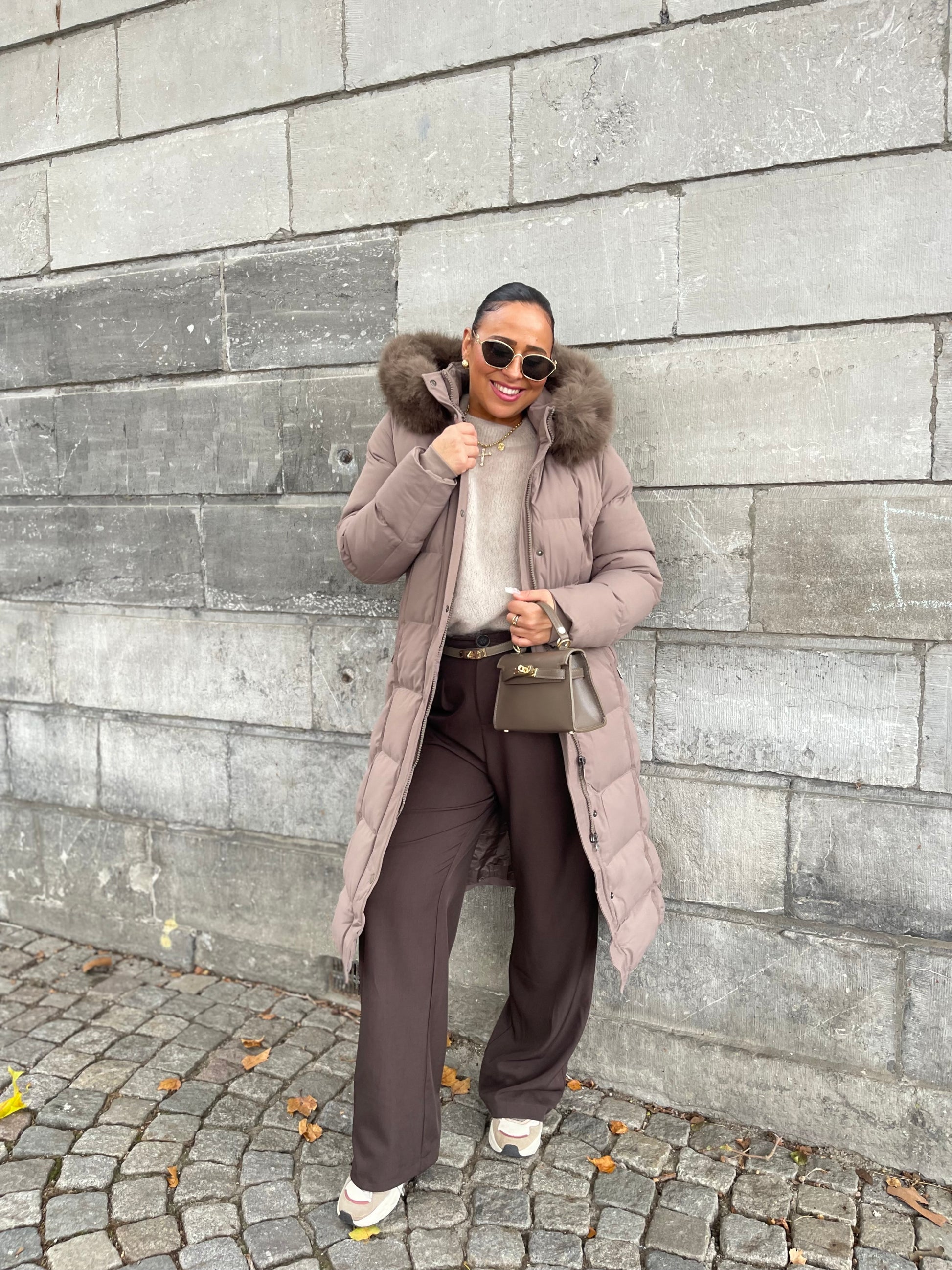 Mooie getailleerde pufferjacket men een faux fur kraagje en een capuchon. De kraag kan er ook afgehaald worden. De jas heeft een rits die zowel van onder als van boven open gemaakt kan worden. Voorzien van drukknoopjes en steekzakjes. Valt goed op maat, ons model is 1.74m lang en draagt maat m.