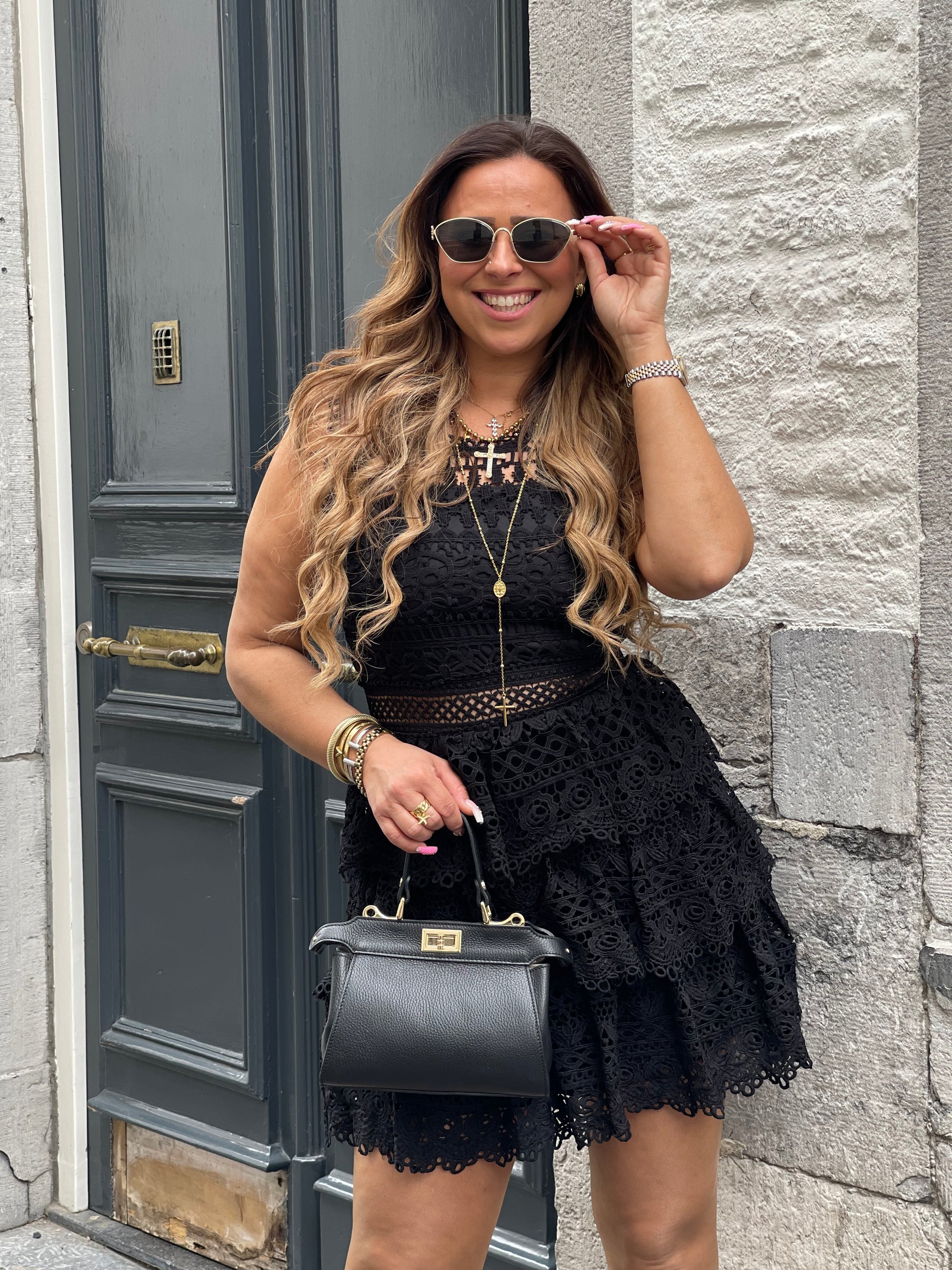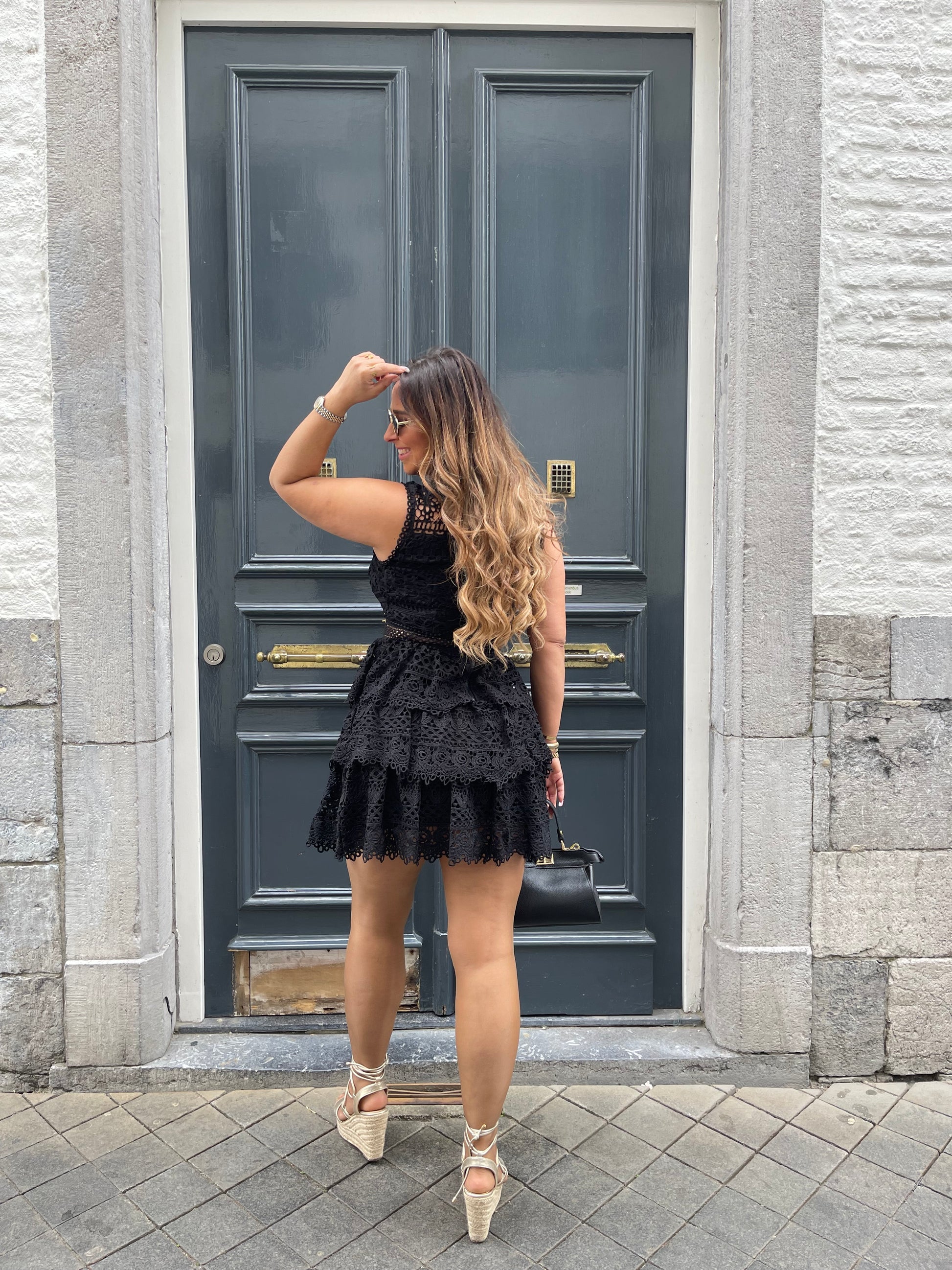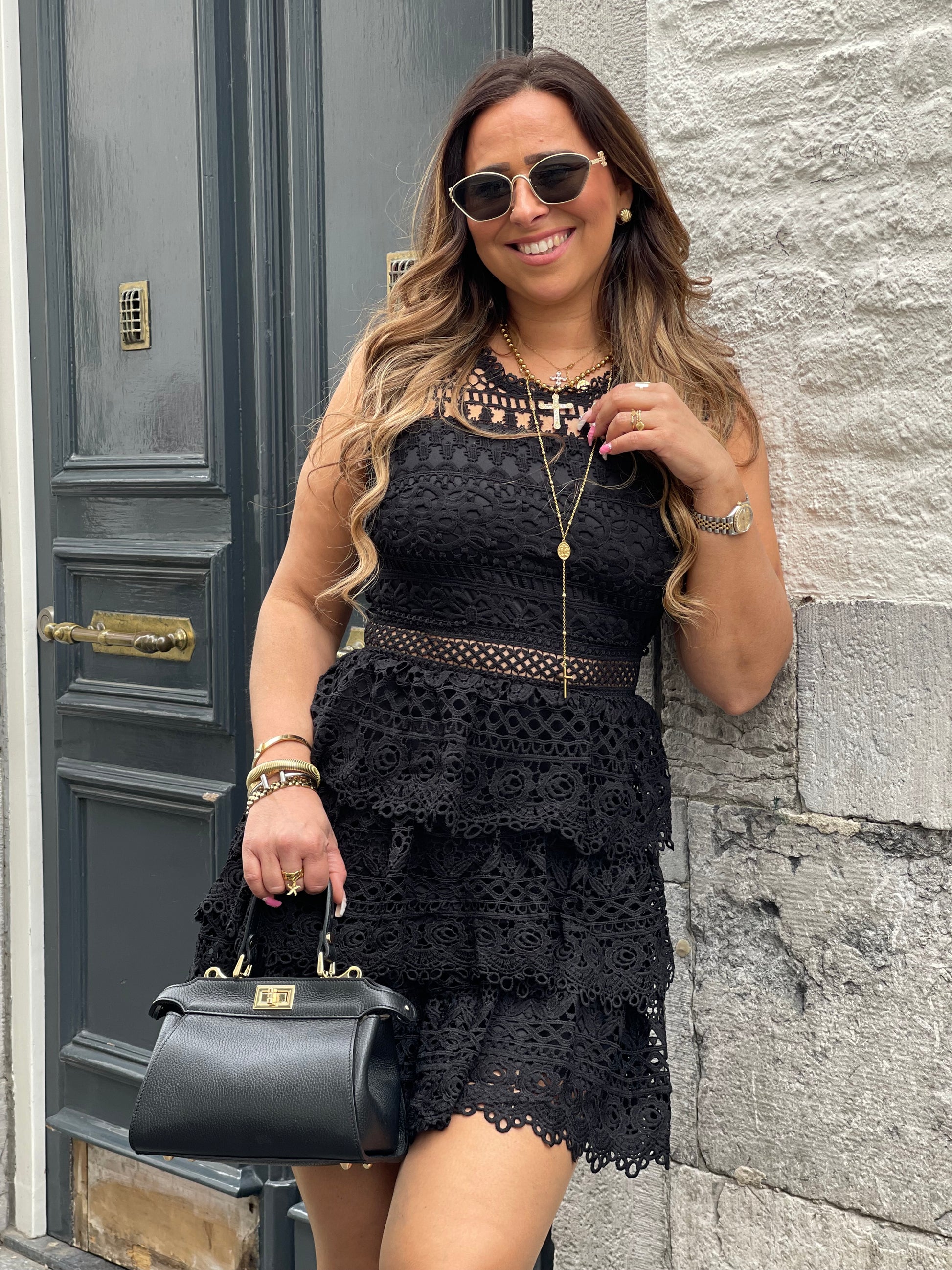 Prachtige lace dress met rouches. Ideaal voor een bruiloft of een feestje. Ons model is 1.74m lang en draagt maat m.