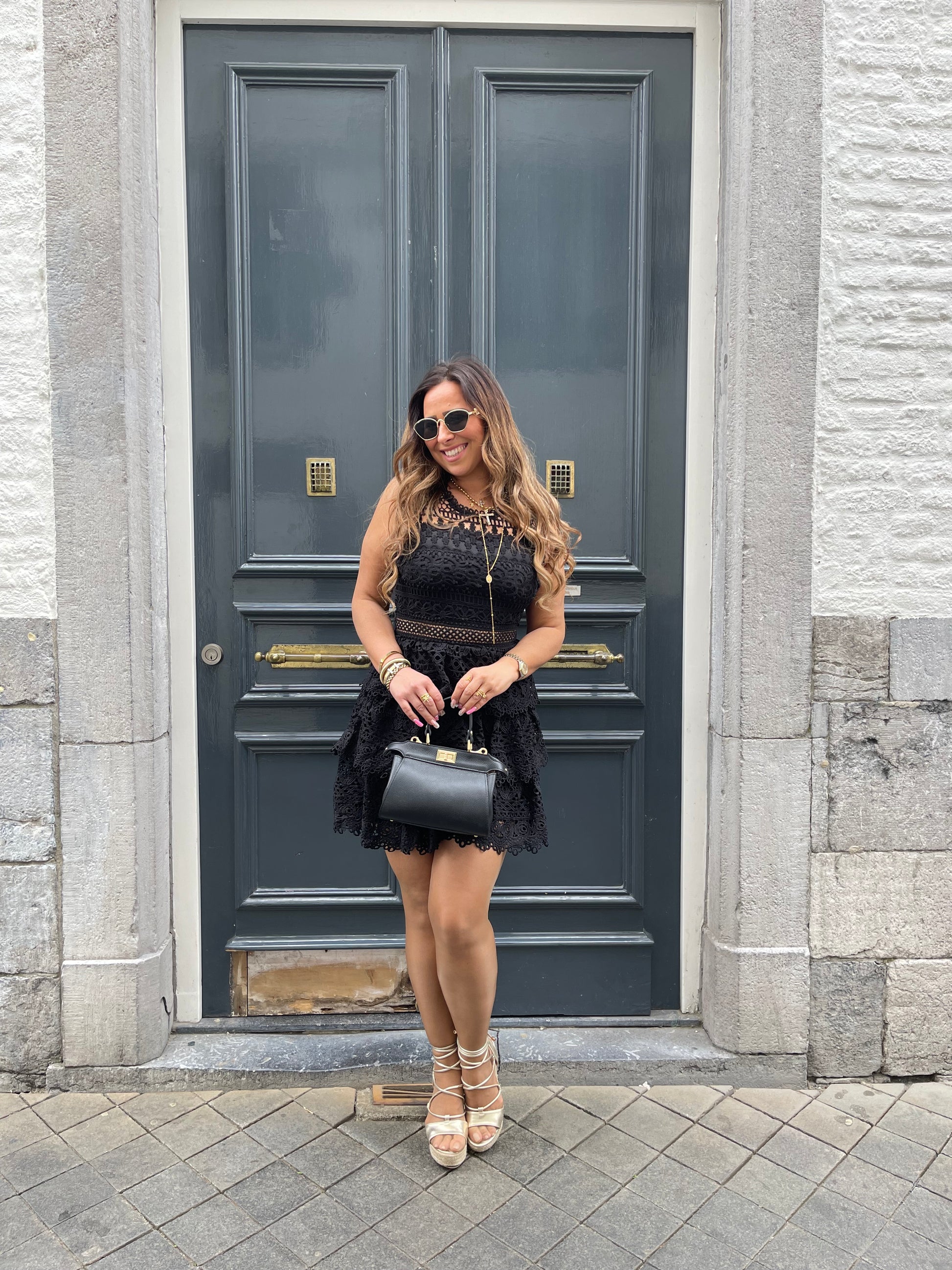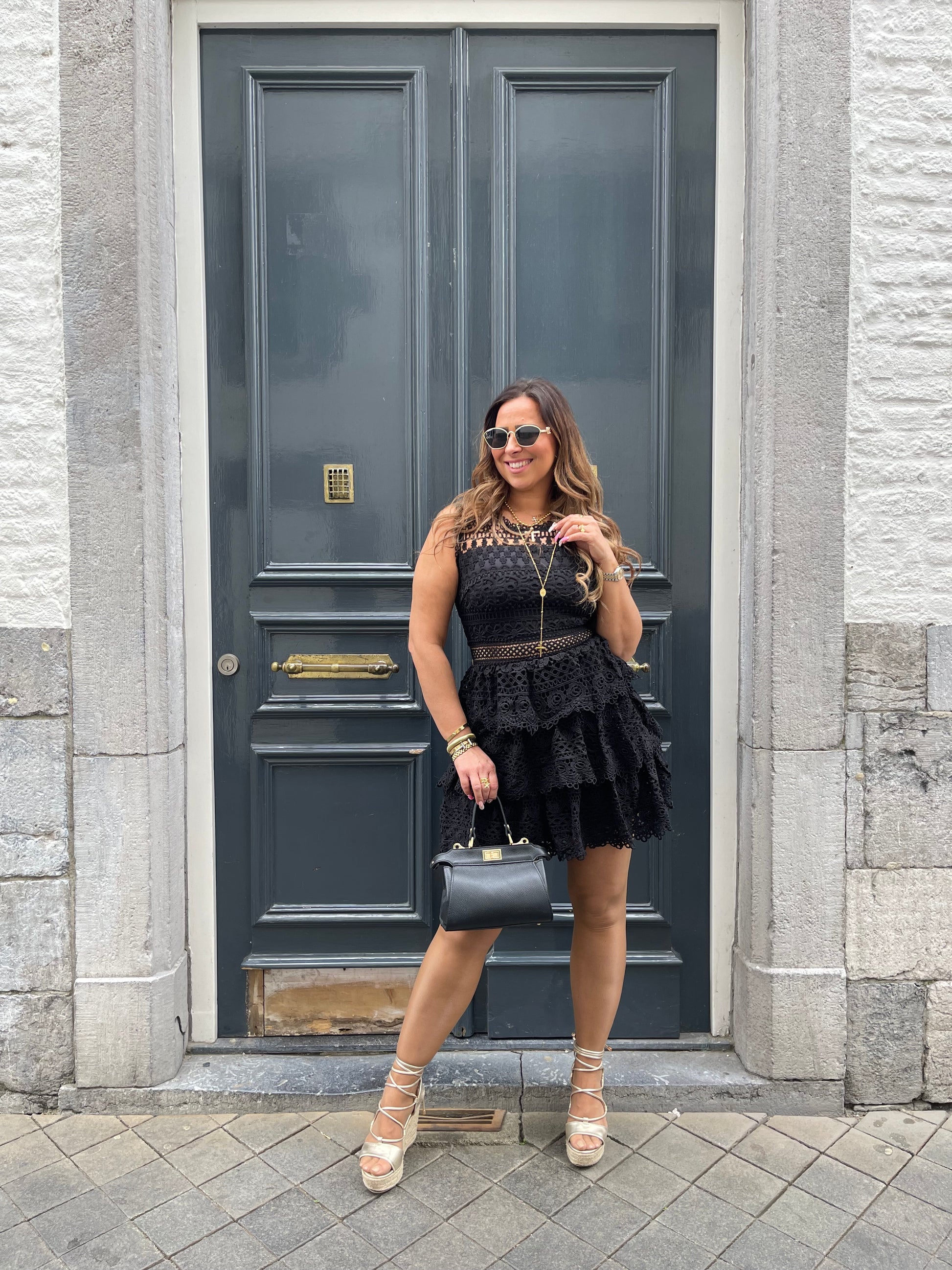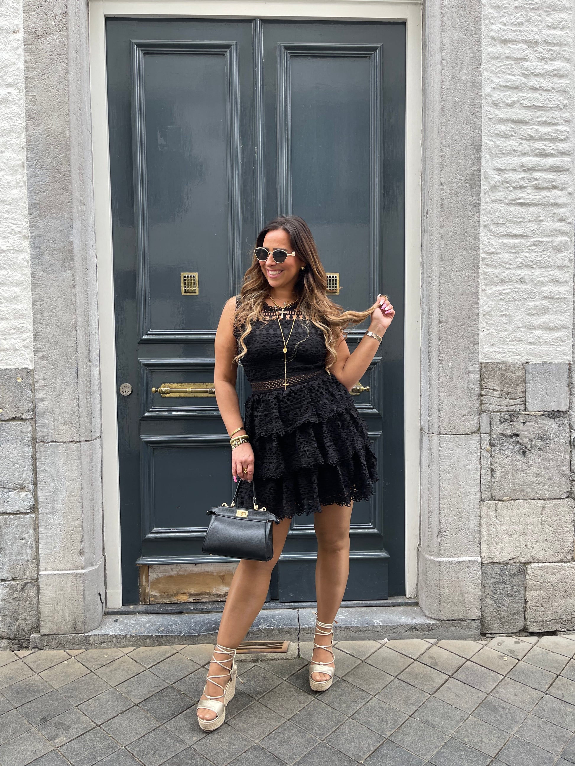Prachtige lace dress met rouches. Ideaal voor een bruiloft of een feestje. Ons model is 1.74m lang en draagt maat m.