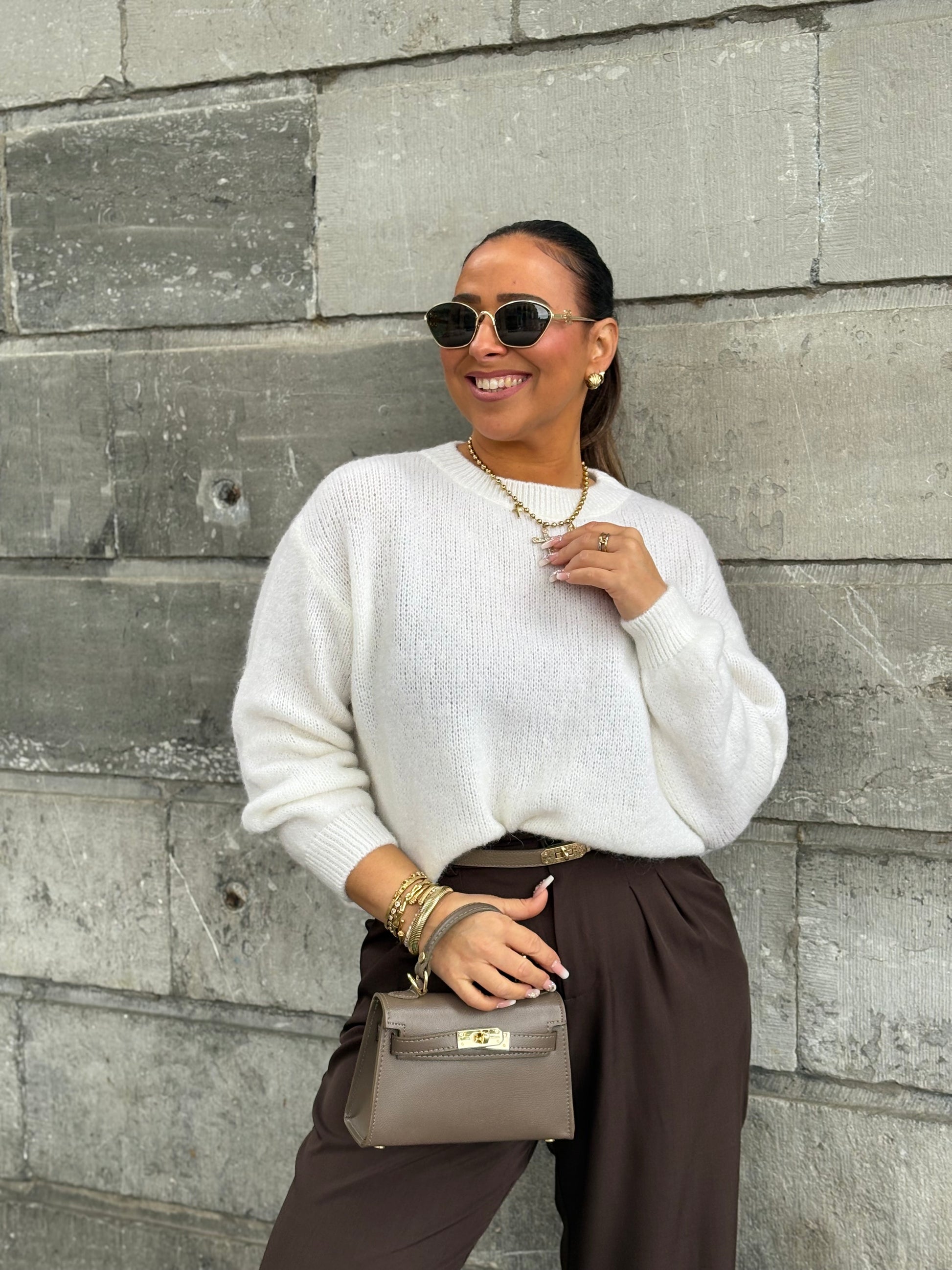 Heerlijke warme basic sweater, perfect for everyday! De trui bevat wol, maar is heerlijk zacht en kriebelt niet. Hij is one size en draagbaar voor de maatjes XS t/m L. Wij adviseren de sweater op de hand te wassen.