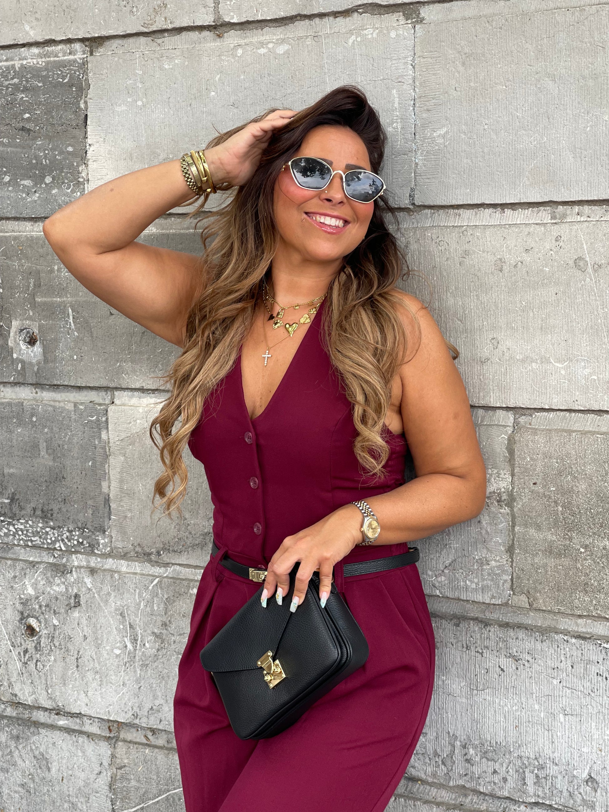 Deze beeldige jumpsuit mag je niet missen! Met verstelbare  bandjes in de nek en stretchy band aan de achterkant. Exclusief riem. Draagbaar voor de maatjes xs t/m m.