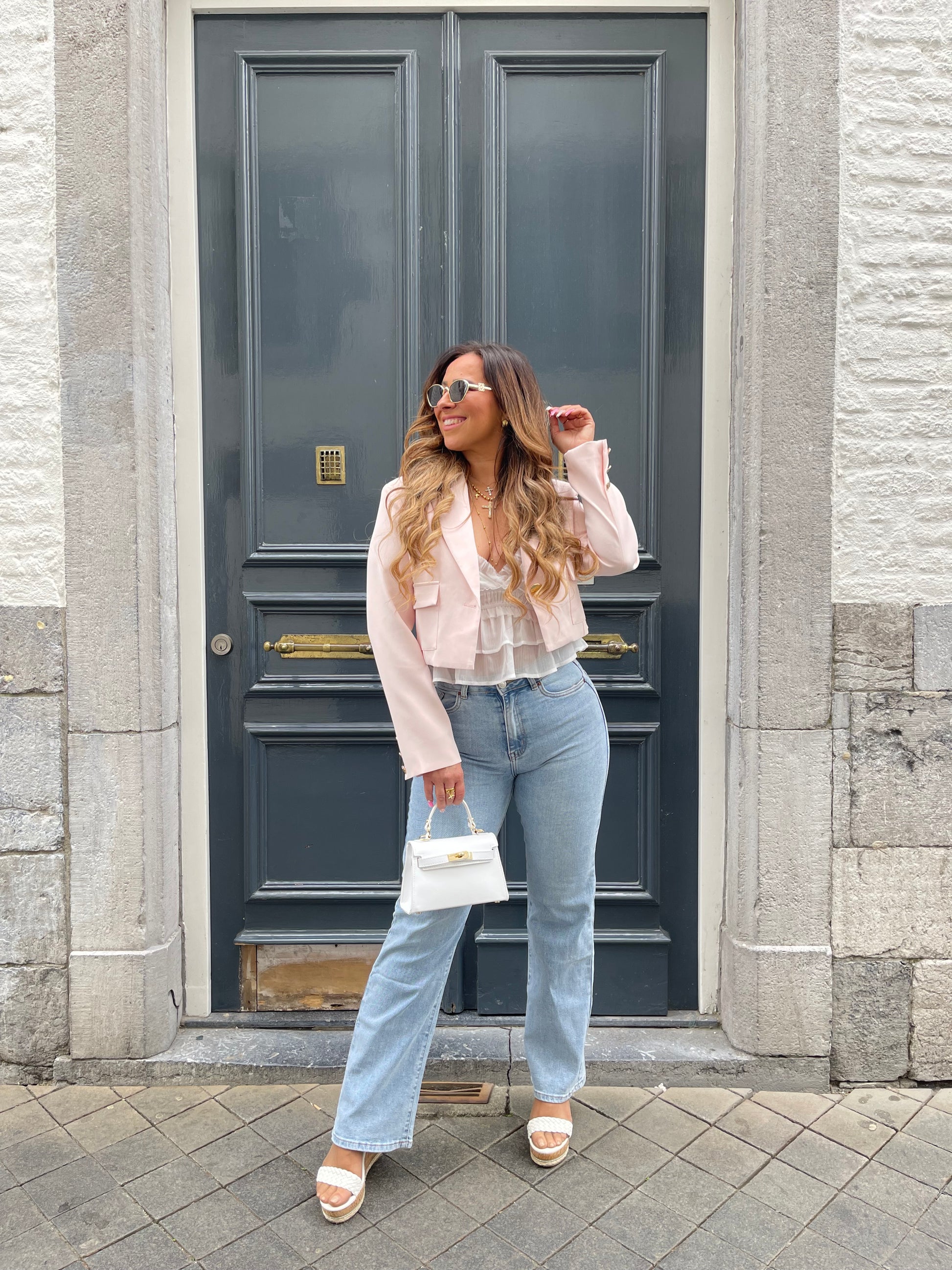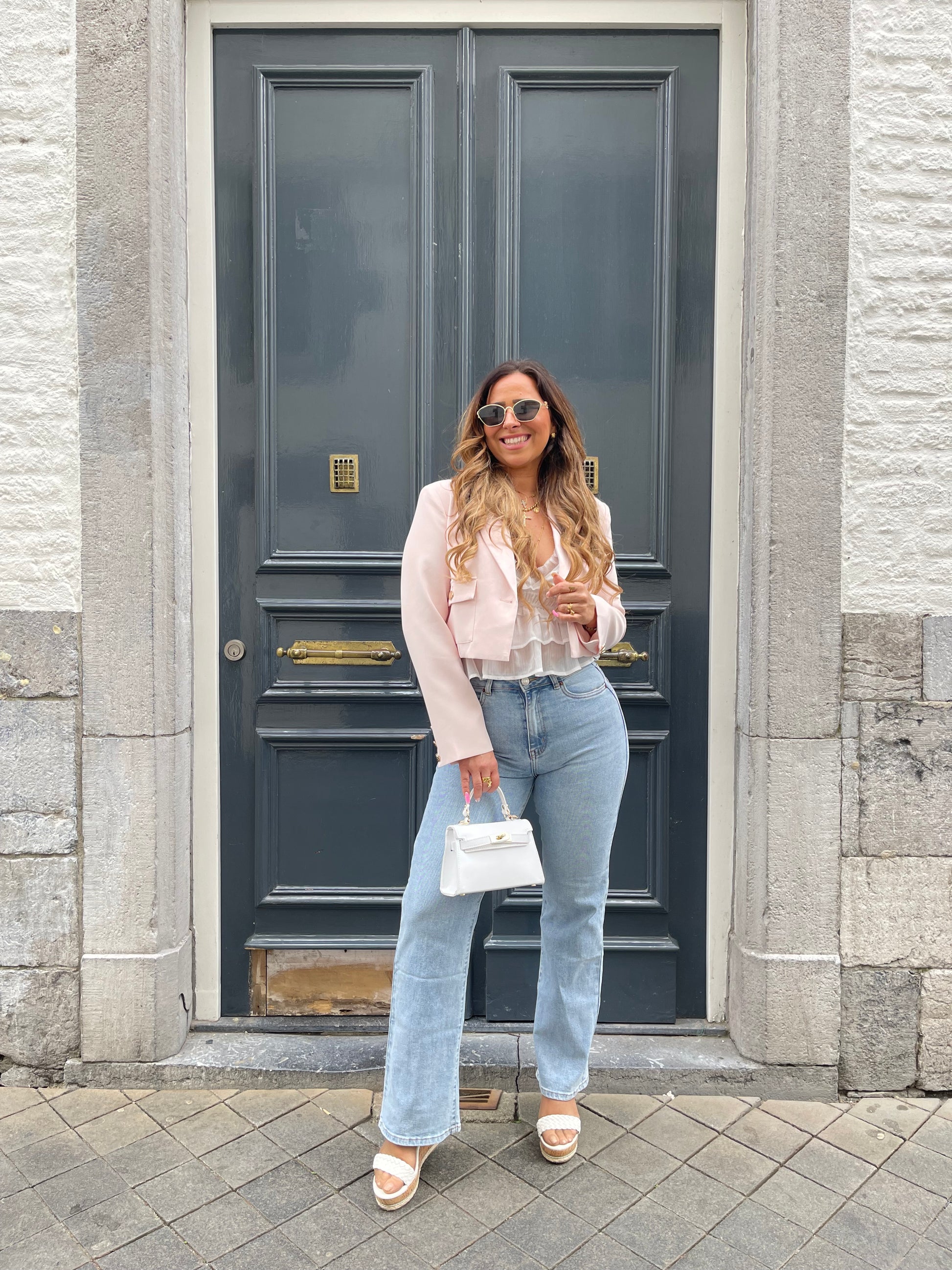 Wide leg jeans, high waist met stretch. Zit perfect, ons model is 1.74m lang en draagt maat 36.