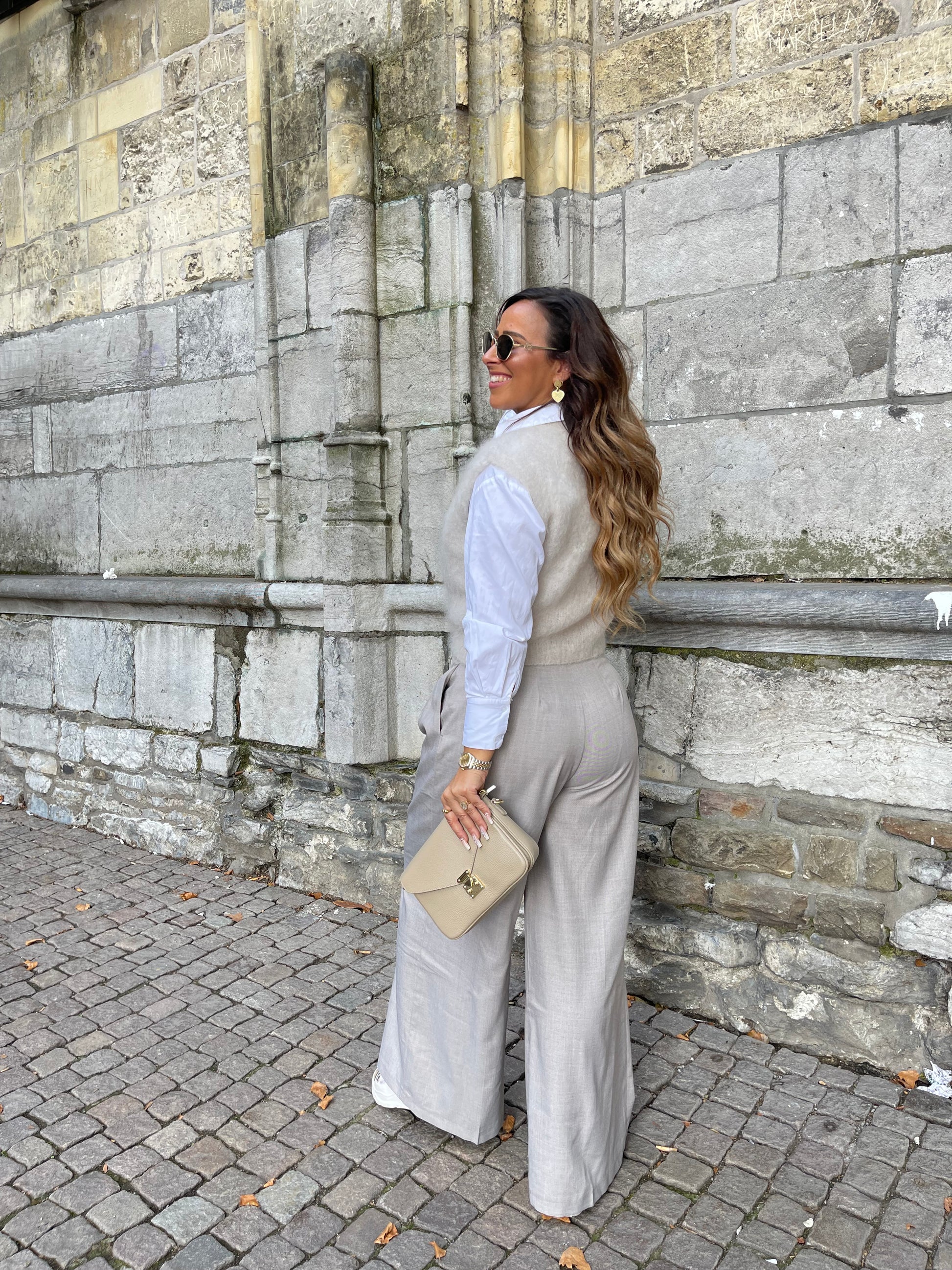 Prachtige high waist wide leg pantalon, zonder stretch. Let op de pantalon valt kleiner uit ons model is 1.74m lang en  draagt maat xl. Wij adviseren om een maatje groter te bestellen.
