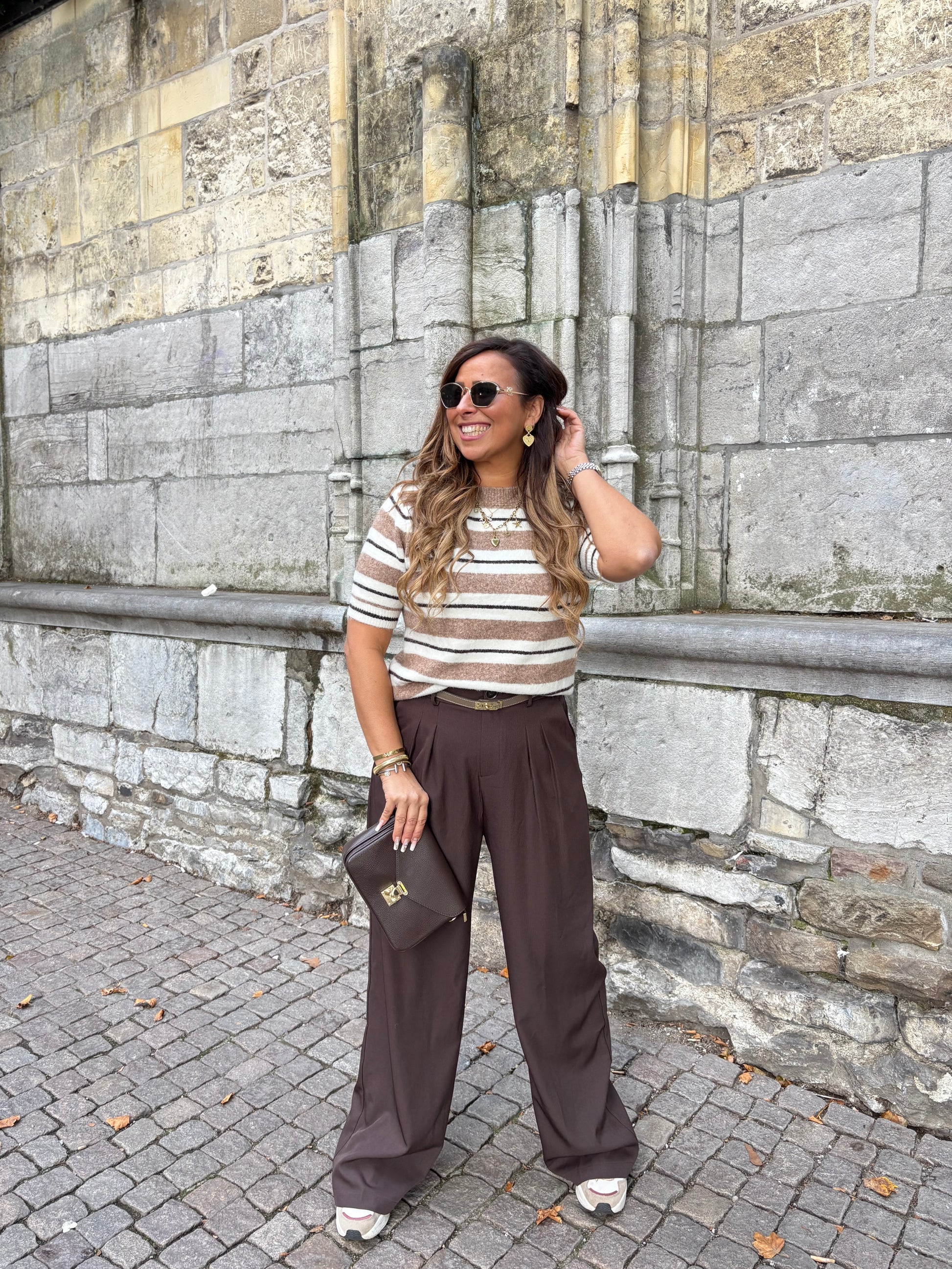 Oversized streepjes sweater, lekker basic en comfy. Mooi te combineren met een van onze jeans broeken. Draagbaar voor de maatjes xs t/m l. Let op de sweater bevat wol en mag niet in de wasmachine gewassen worden.