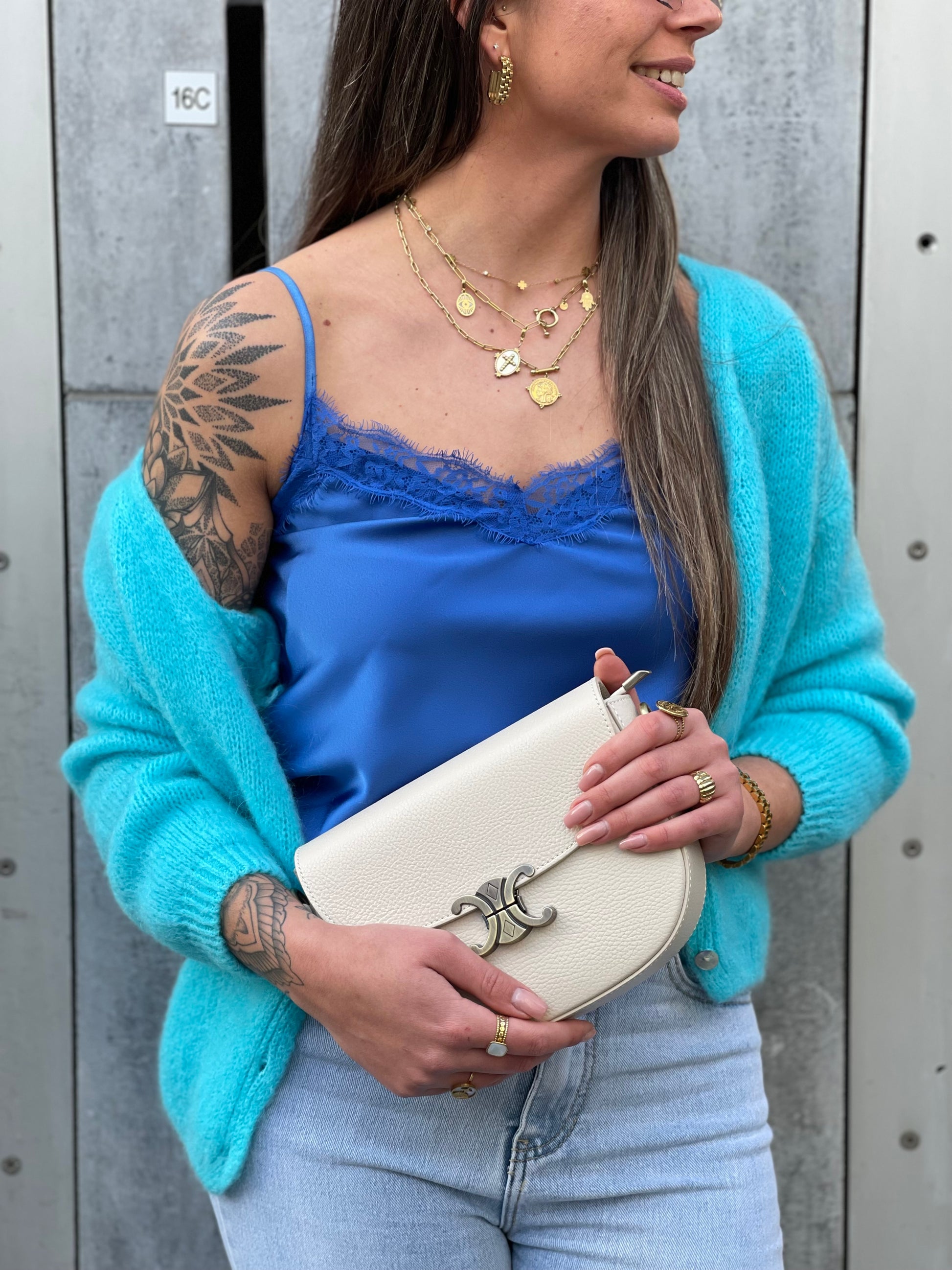 Top super mignon avec détail en dentelle autour du cou. Le haut est de taille unique et convient aux tailles xs à l. Super amusant à porter sous l’une de nos vestes, cardigans ou robes incontournables ! Aimer….