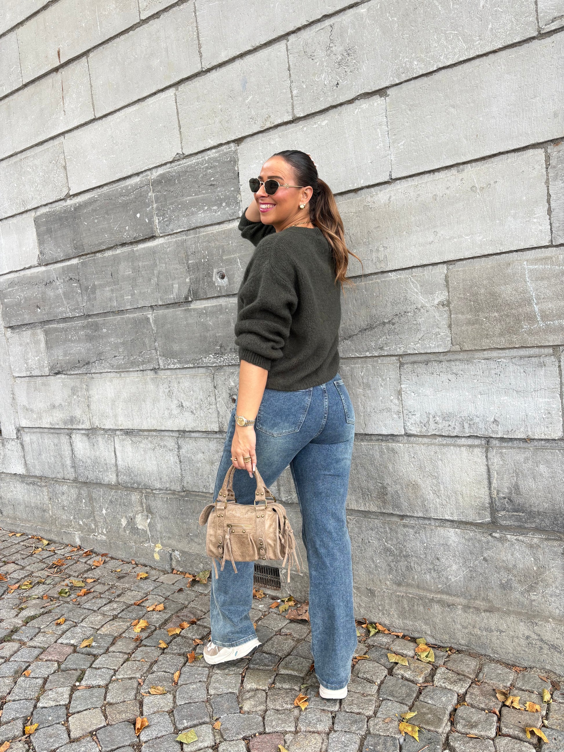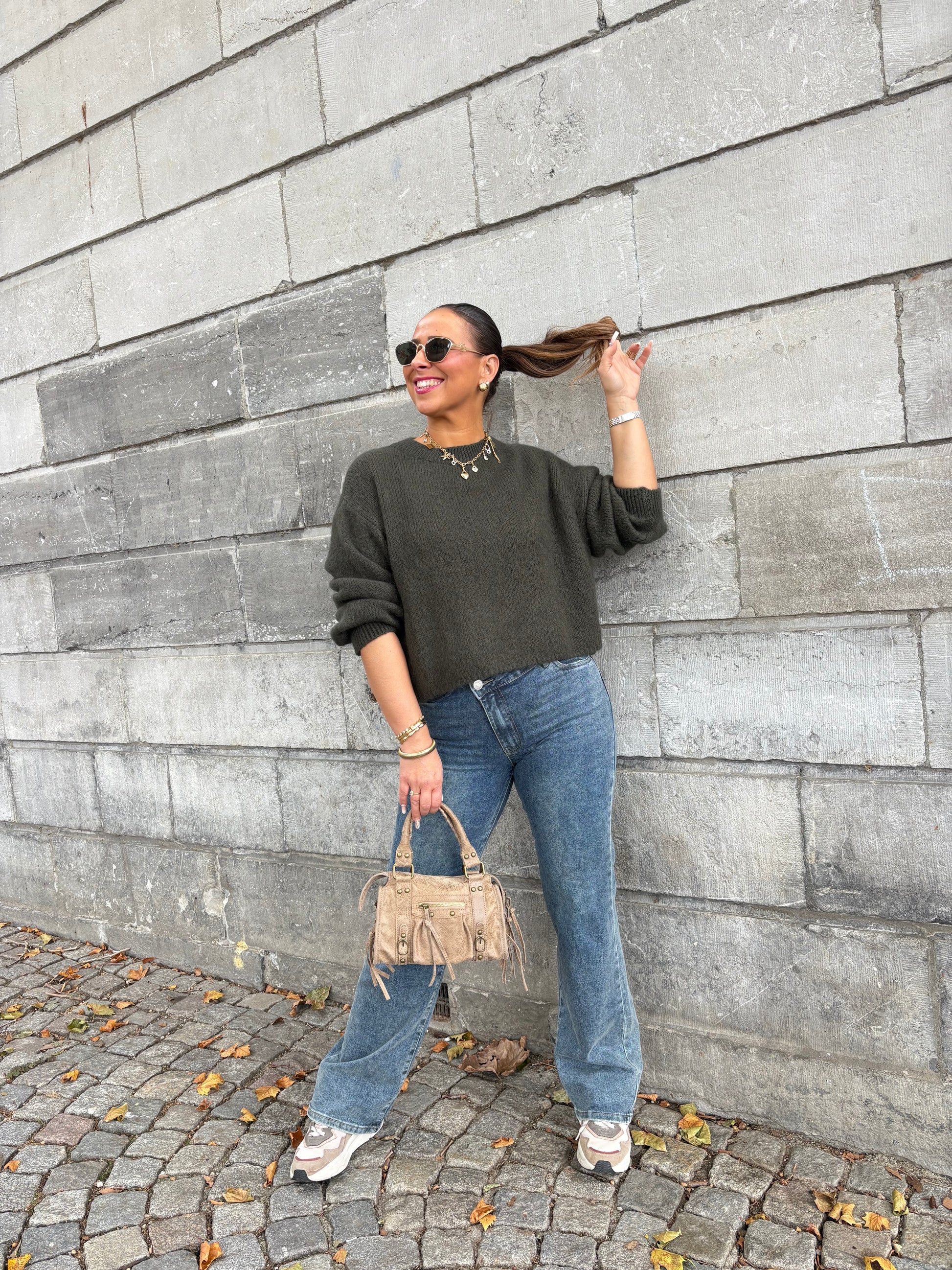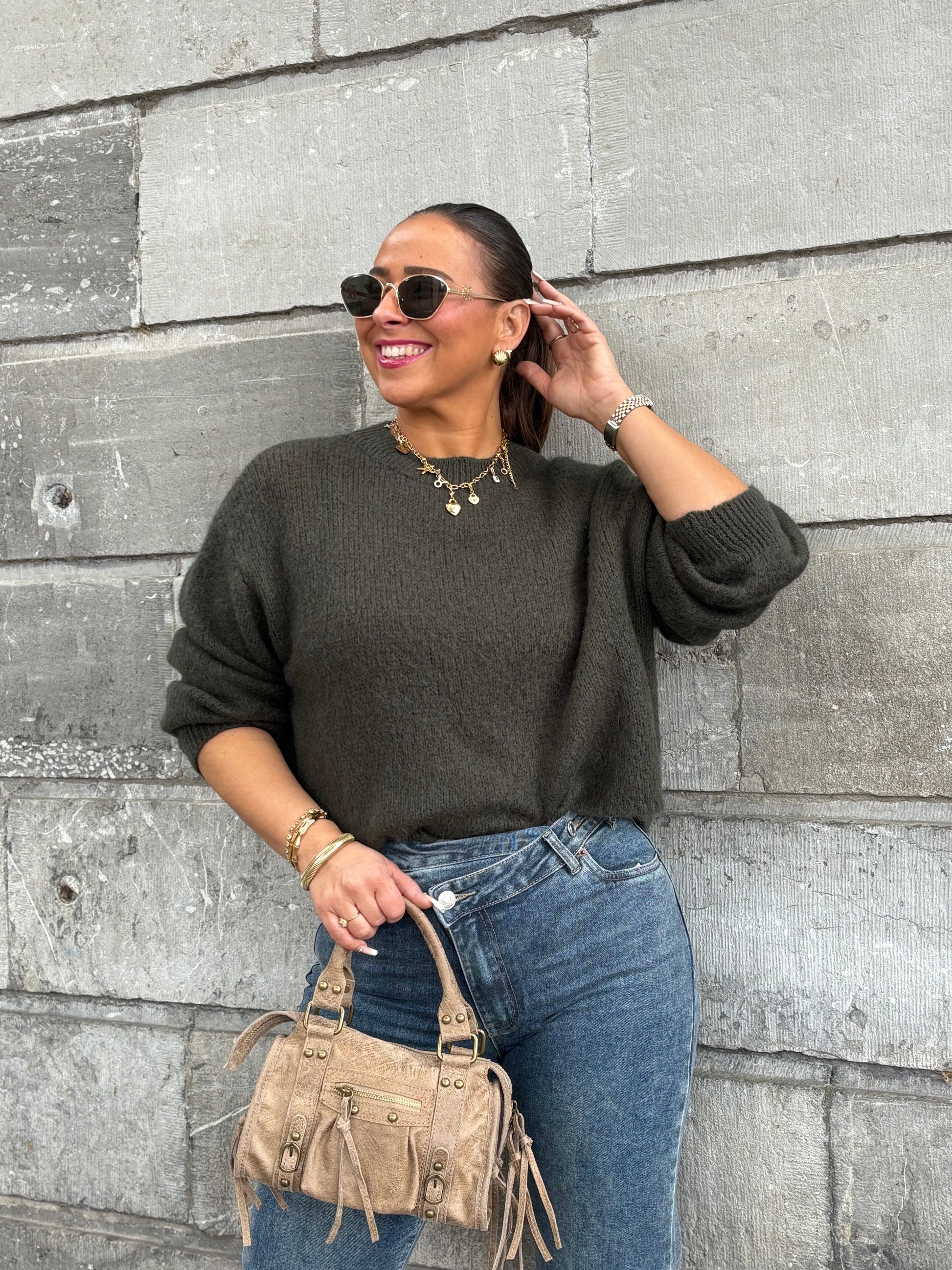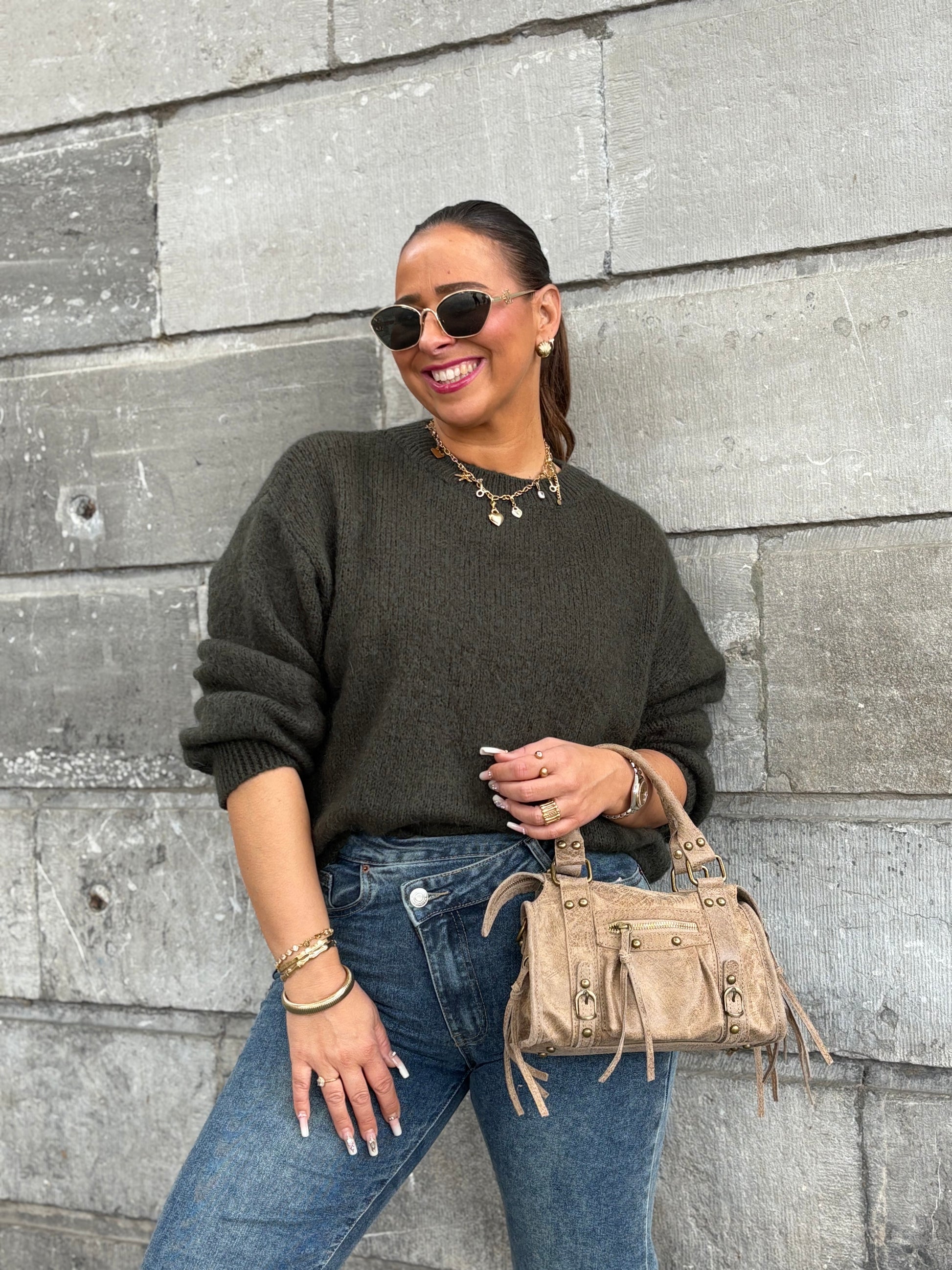 Heerlijke warme basic sweater, perfect for everyday! De trui bevat wol, maar is heerlijk zacht en kriebelt niet. Hij is one size en draagbaar voor de maatjes XS t/m L. Wij adviseren de sweater op de hand te wassen en niet in de machine.