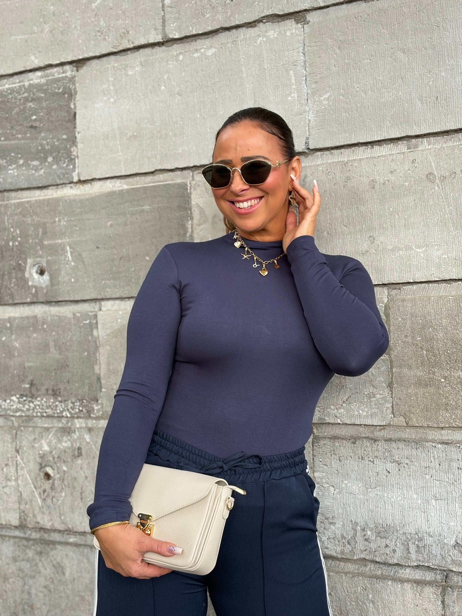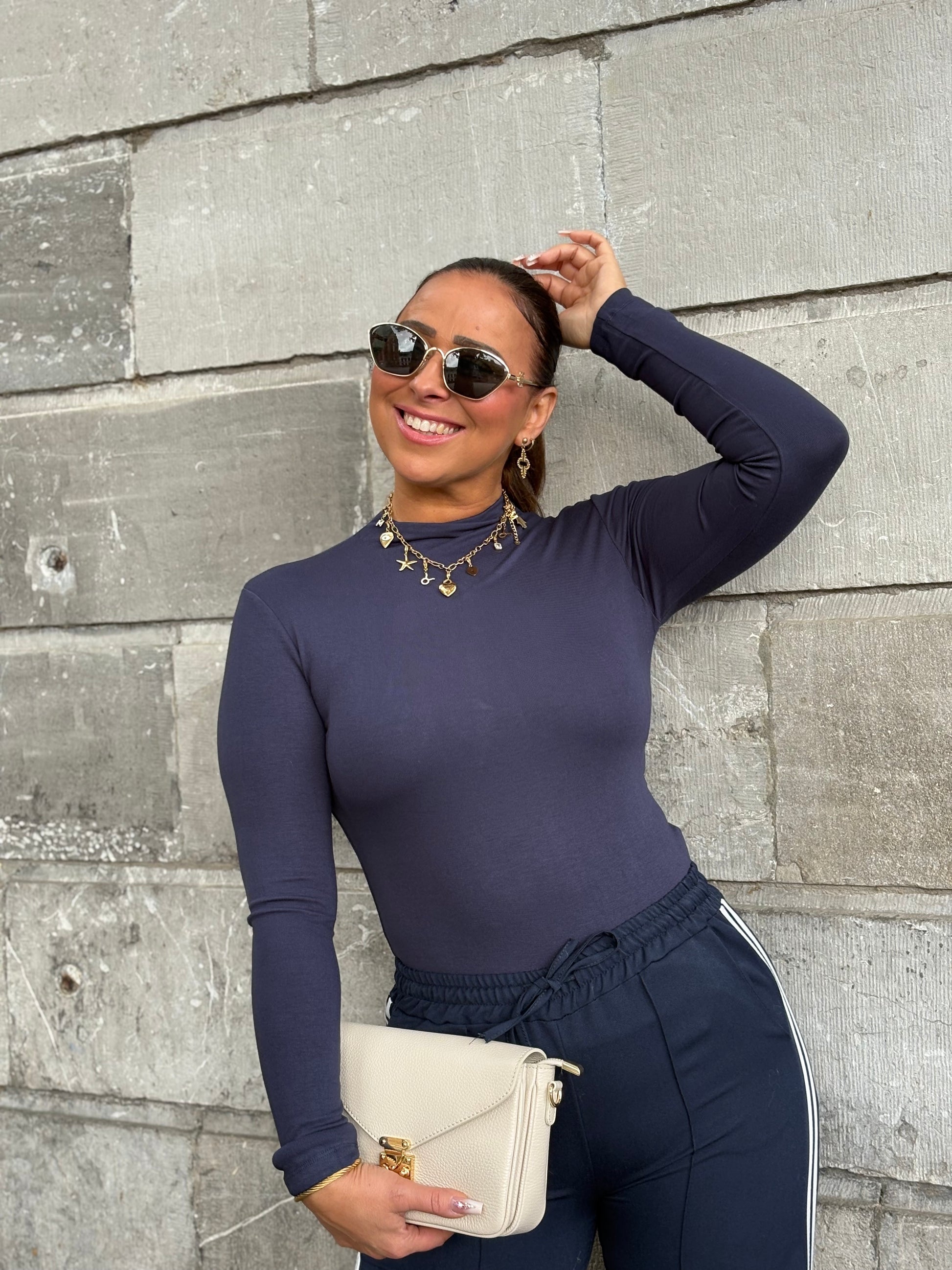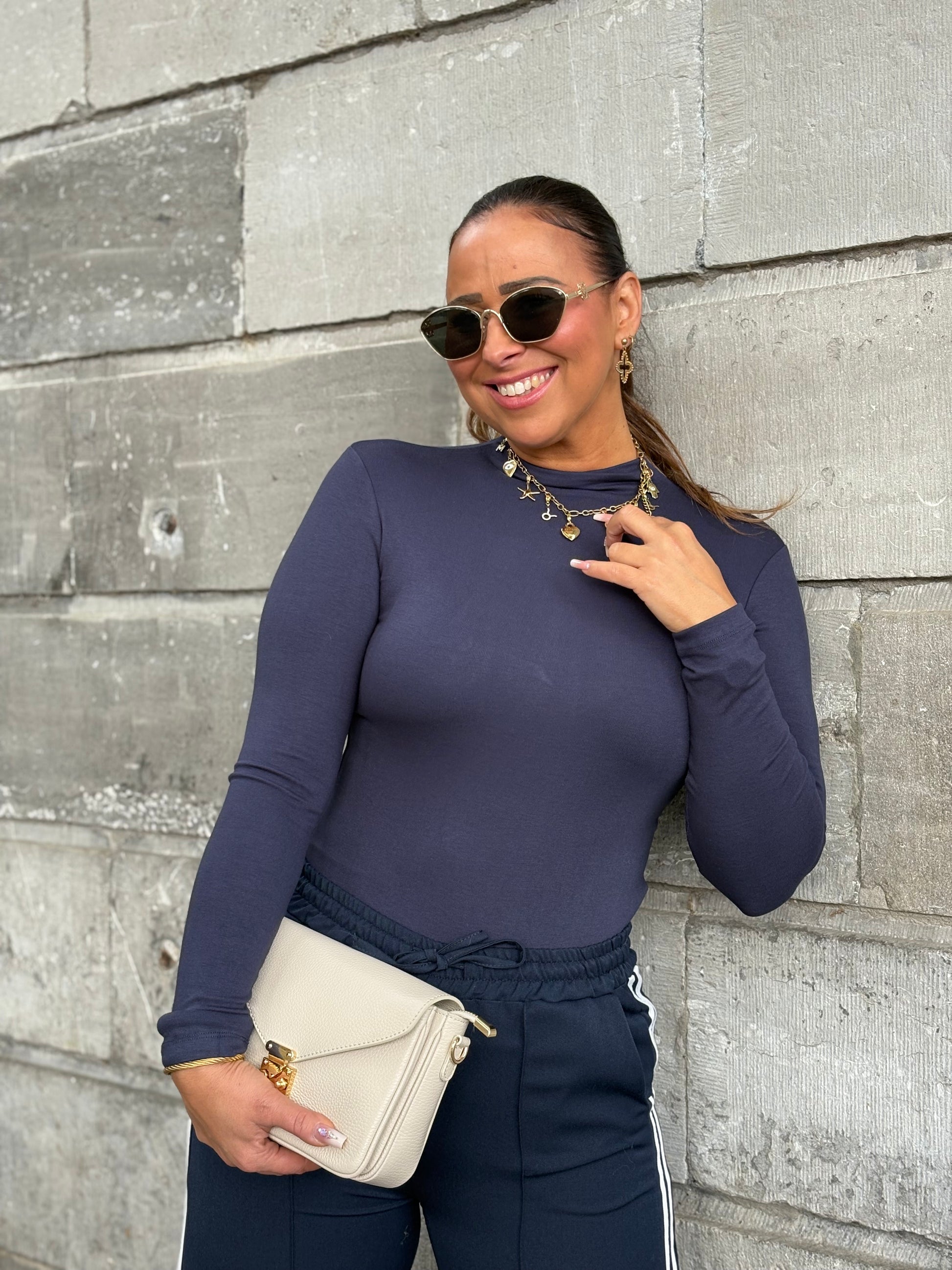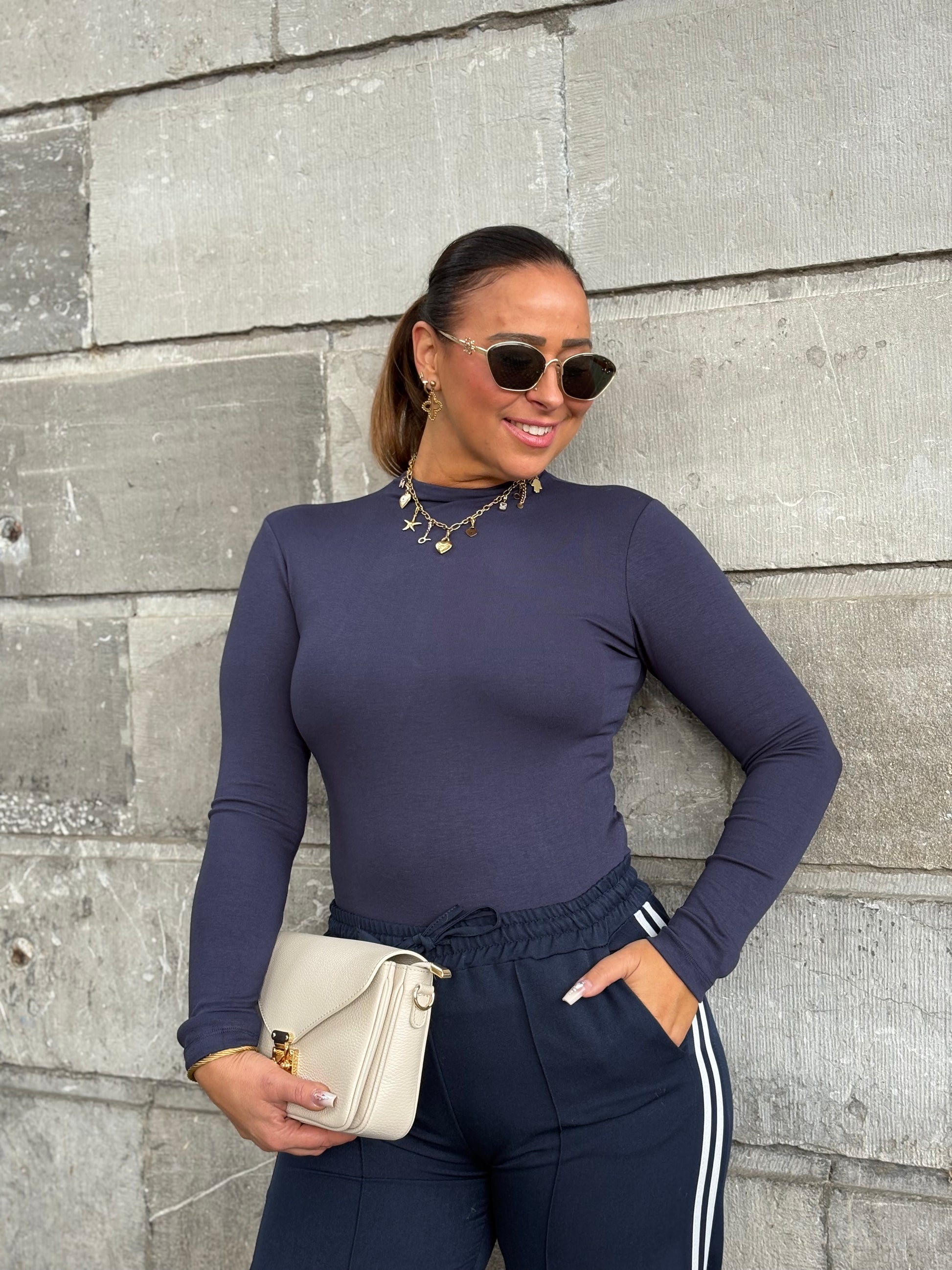 Basic shirtje met stretch en een klein kolletje! One size, draagbaar voor de maatje xs t/m l.