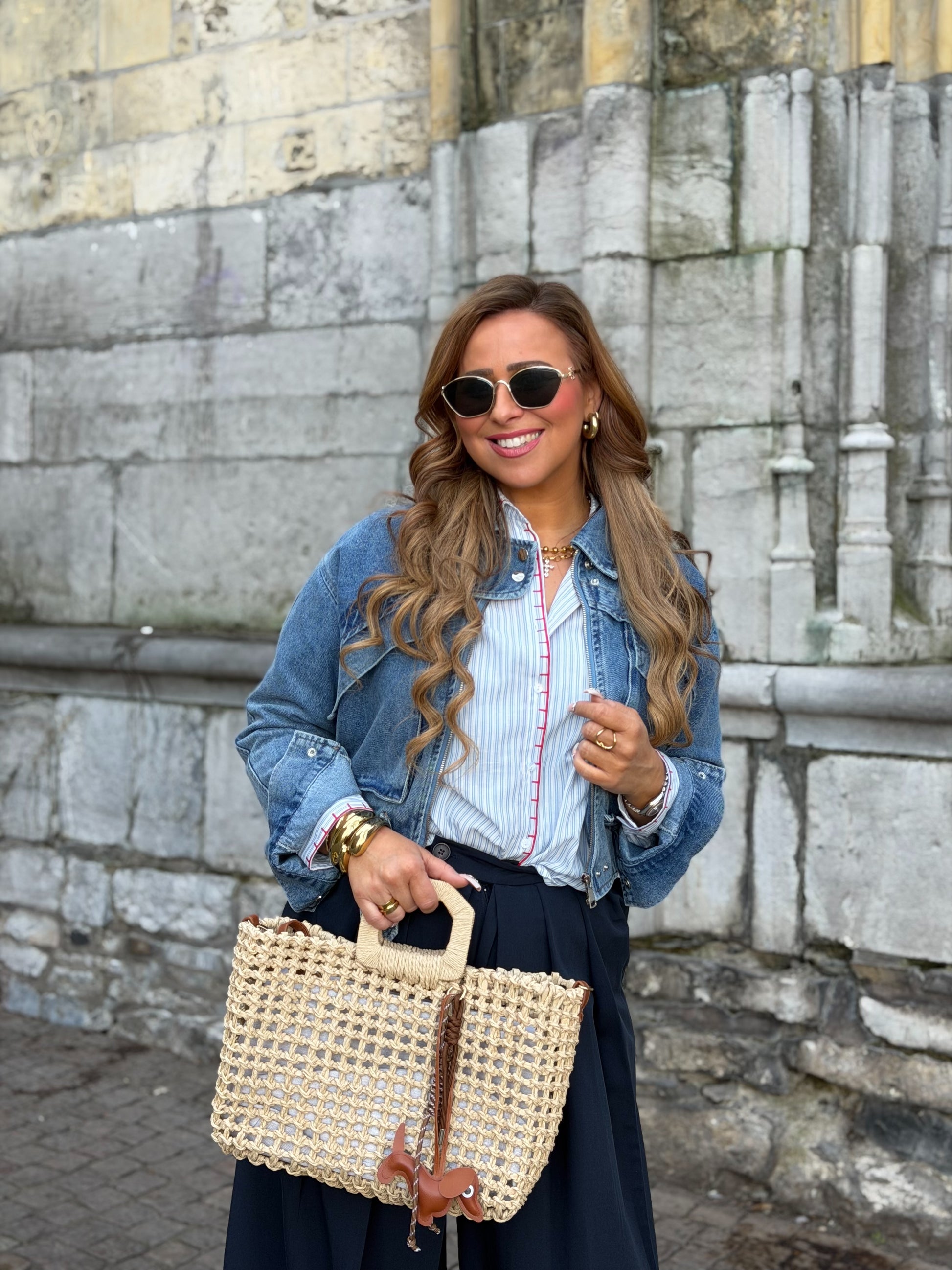 Prachtig jeans cropped jasje. Super leuk om op een pantalon, jurkje of jeans te dragen. Ons model is 1.74m lang en draag maat m/l.