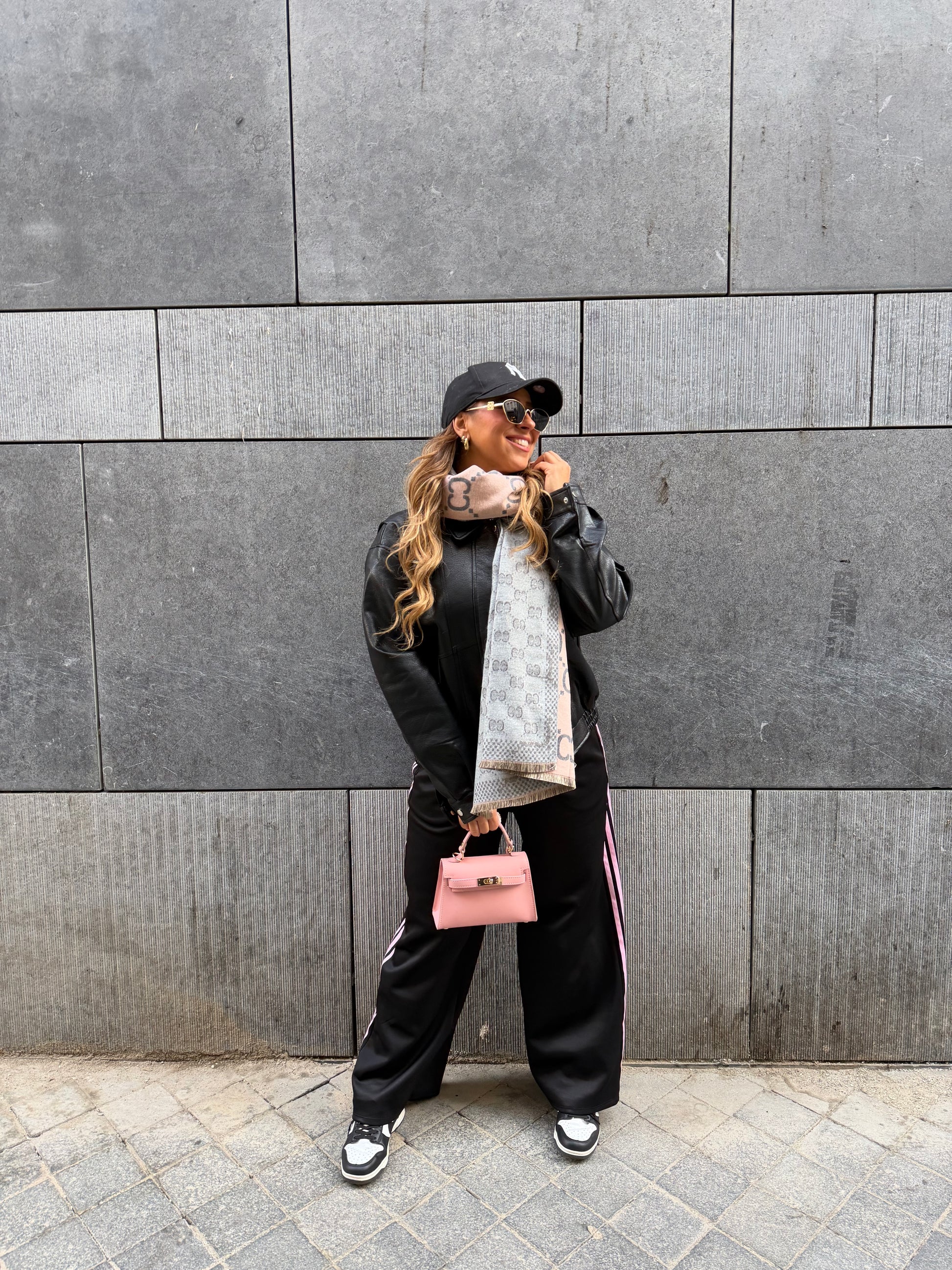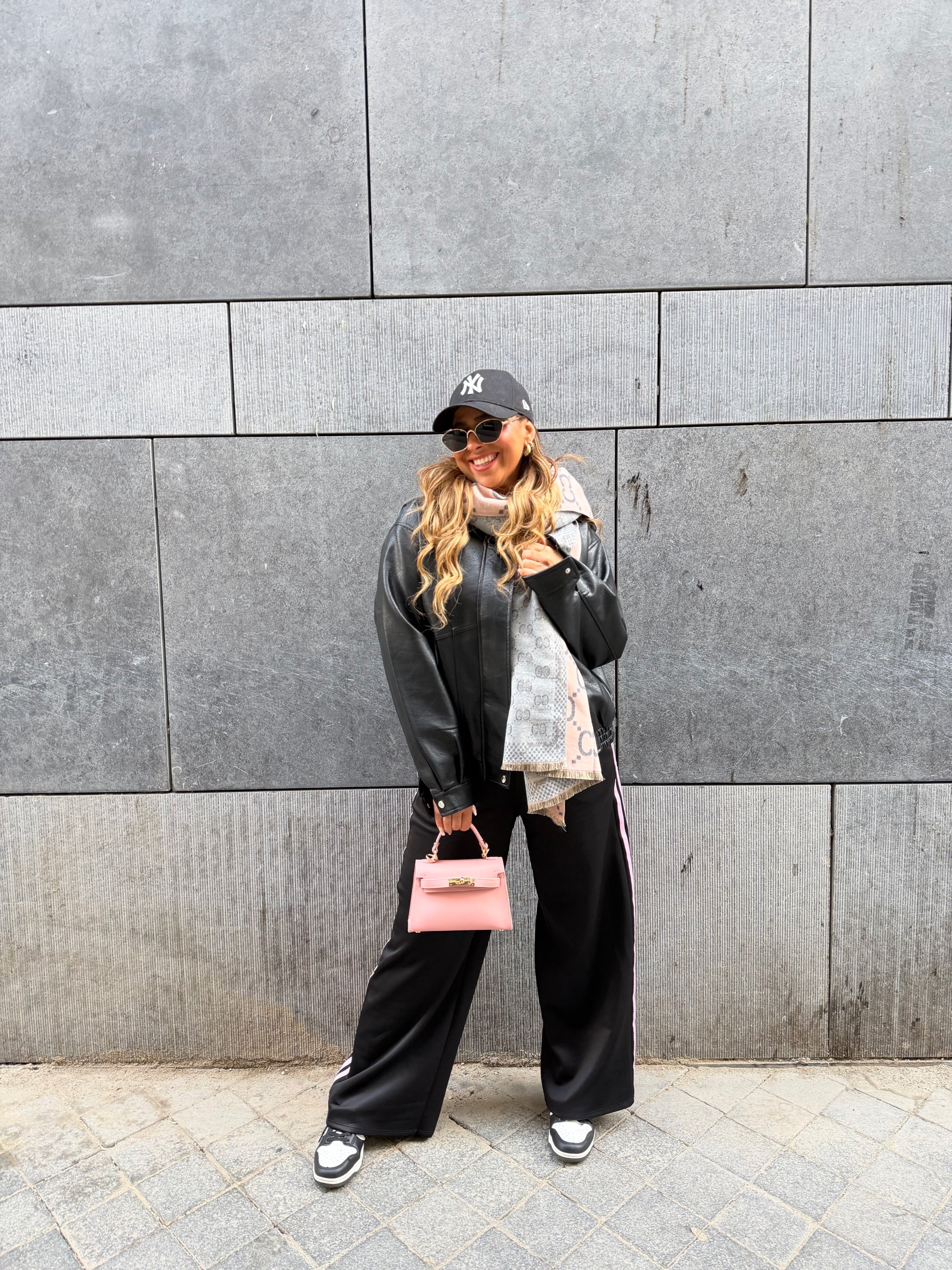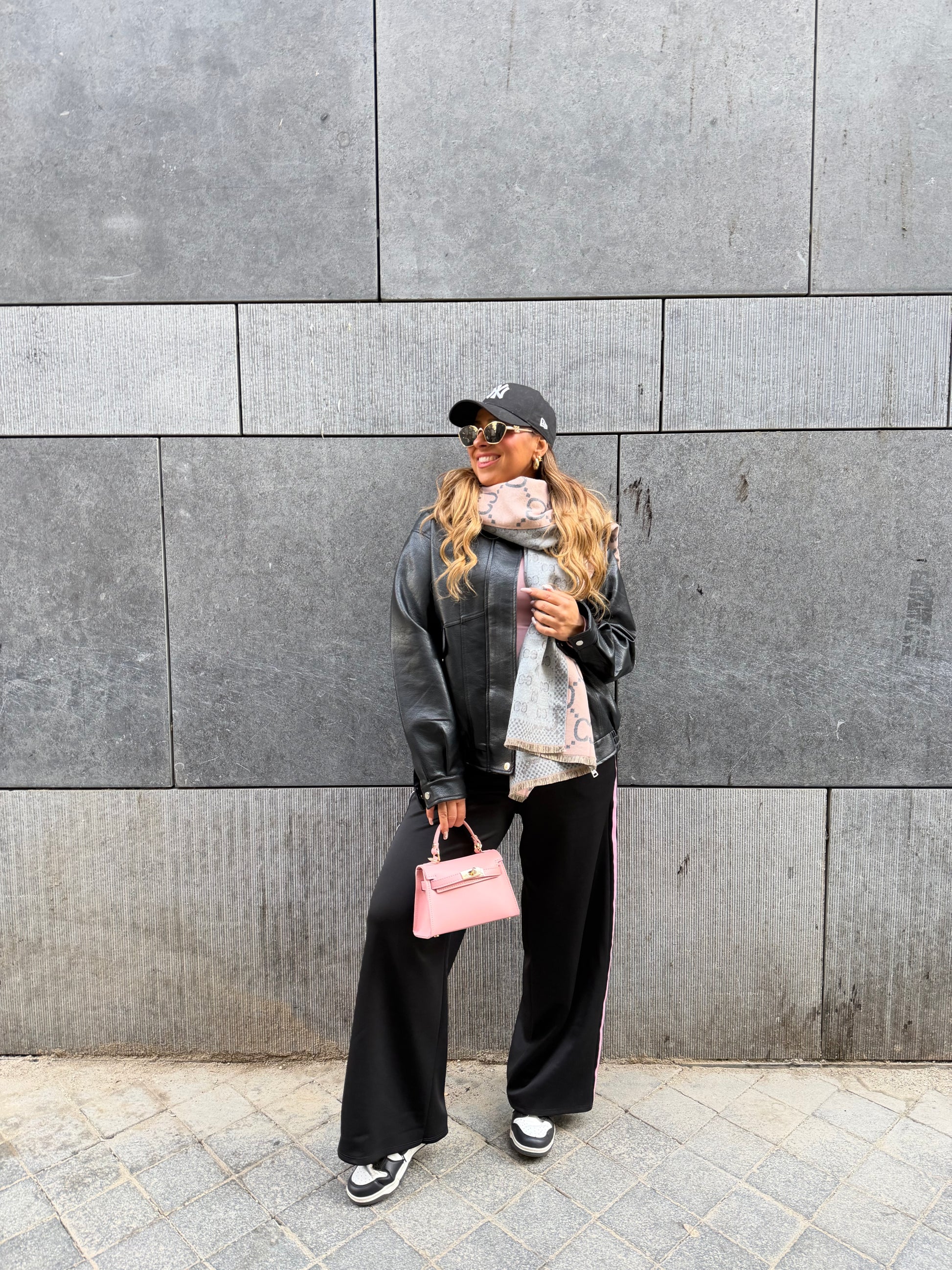 Oversized leather look bomber jacket met zakken. Onmisbaar dit seizoen in je garderobe! Ons model is 1.78m lang en draagt maat m/l.