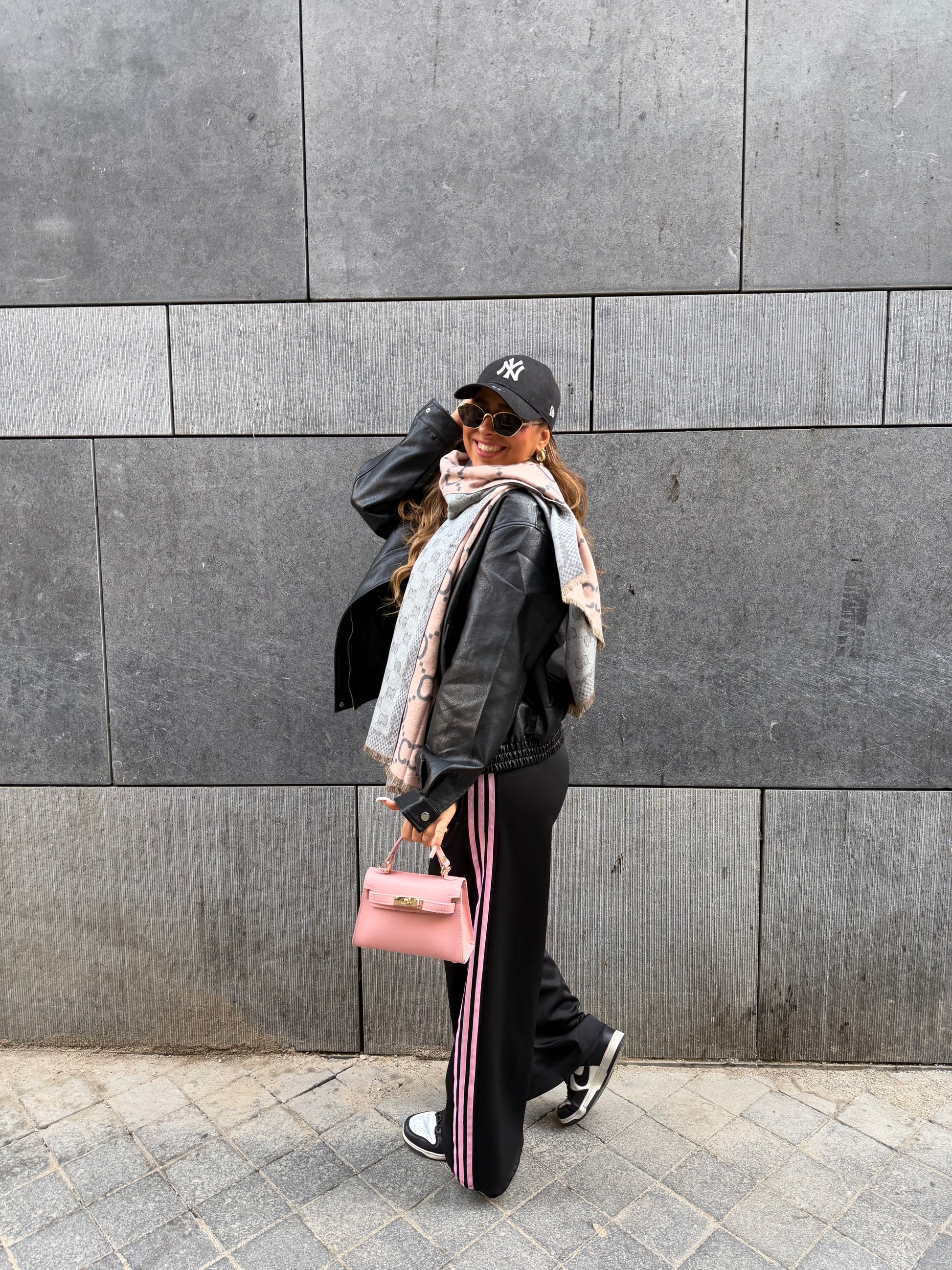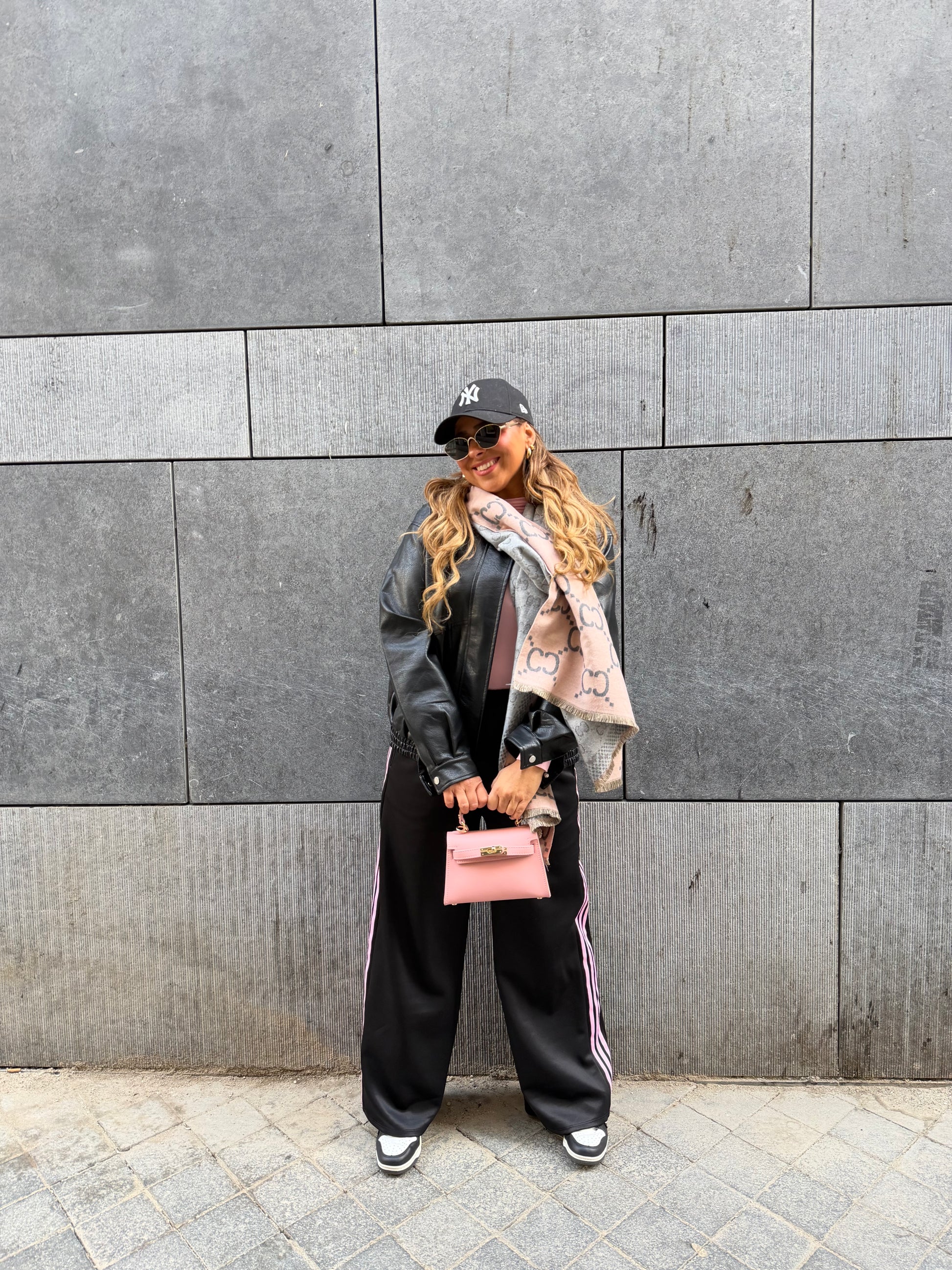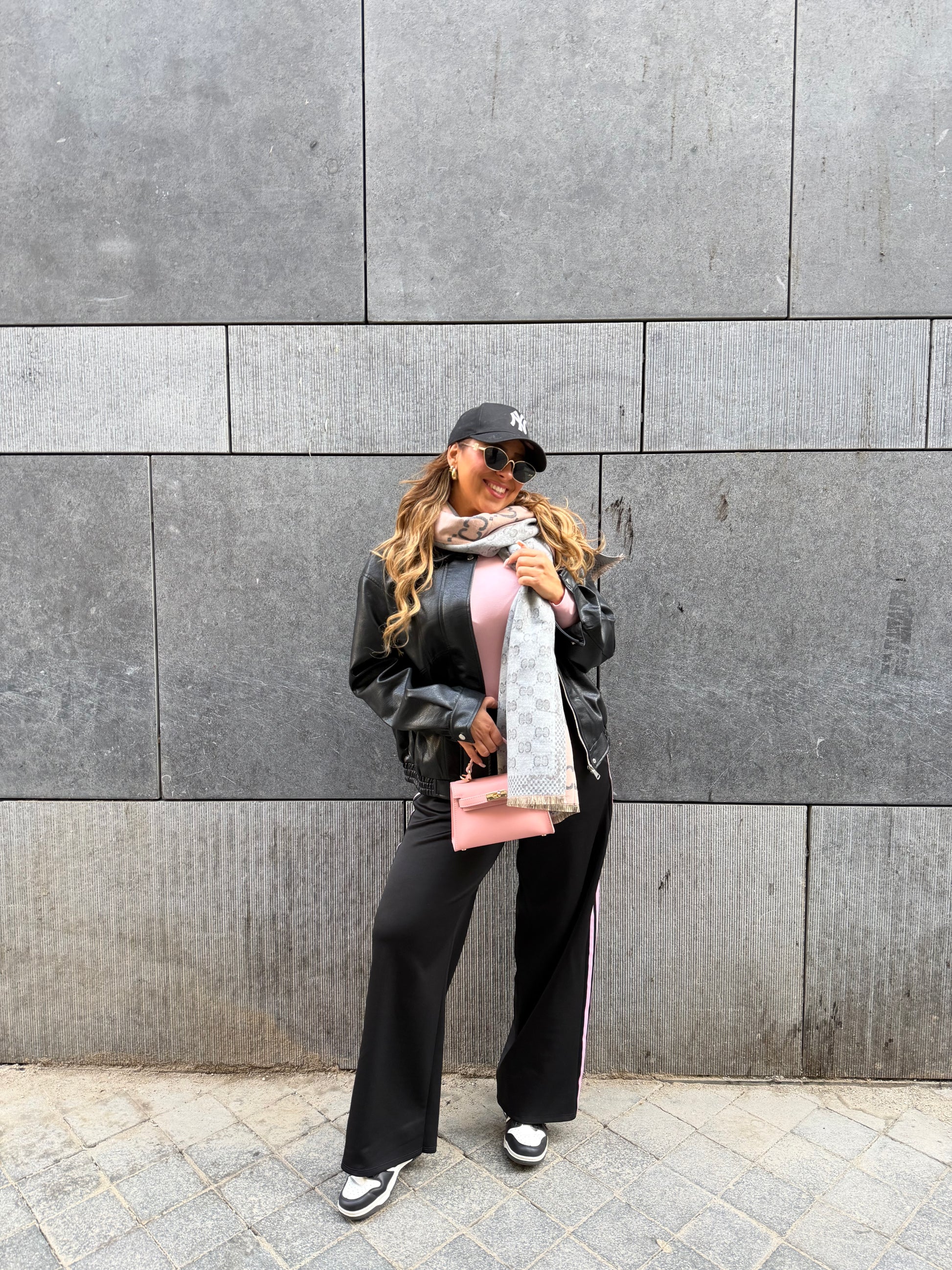 Oversized leather look bomber jacket met zakken. Onmisbaar dit seizoen in je garderobe! Ons model is 1.78m lang en draagt maat m/l.