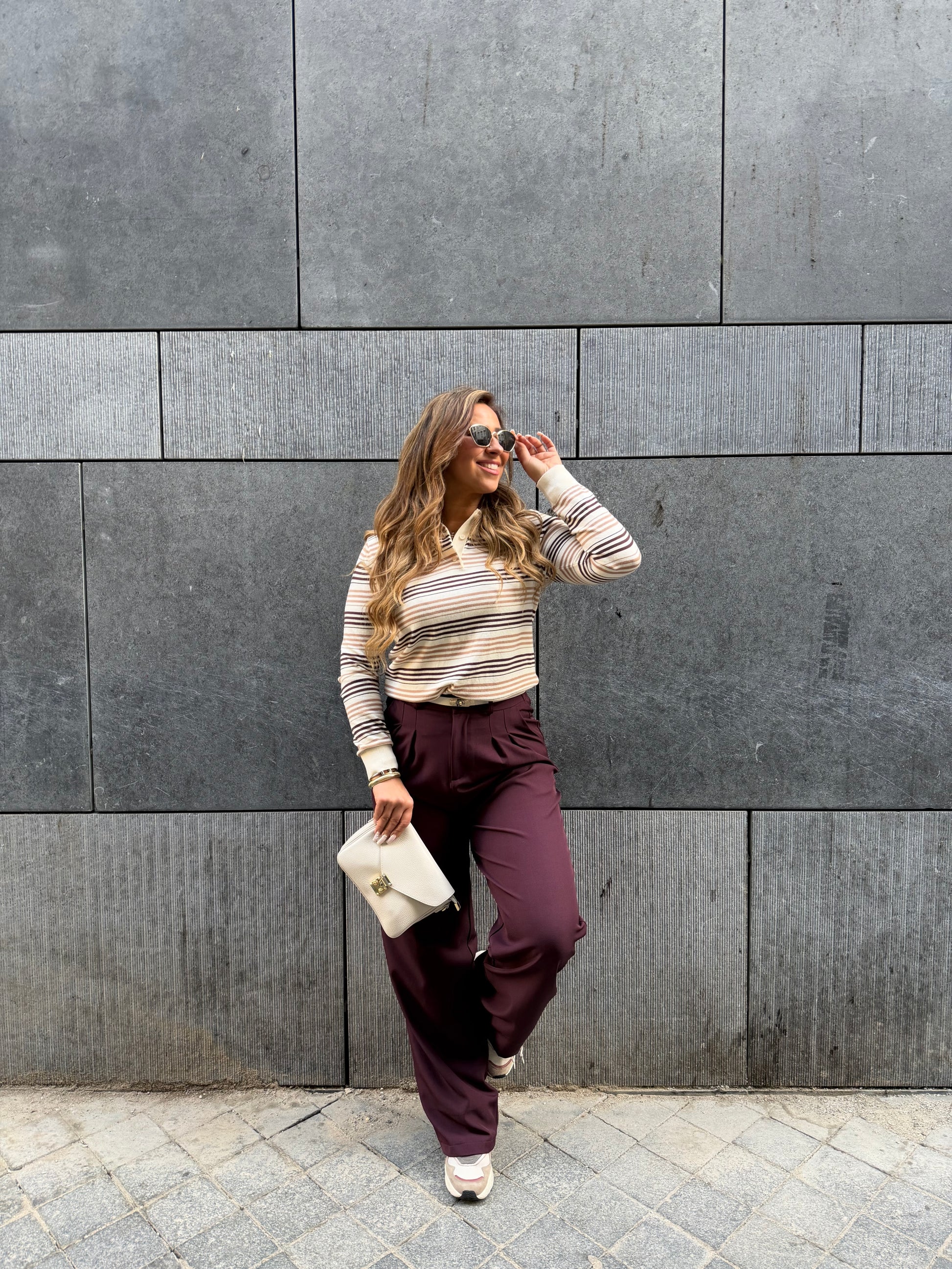 Oversized streepjes sweater, erg leuk op een jeans te combineren. Draagbaar voor de maatjes xs t/m xl.  De sweater bestaat voor 50% uit viscose en voor 50% uit polyamide.