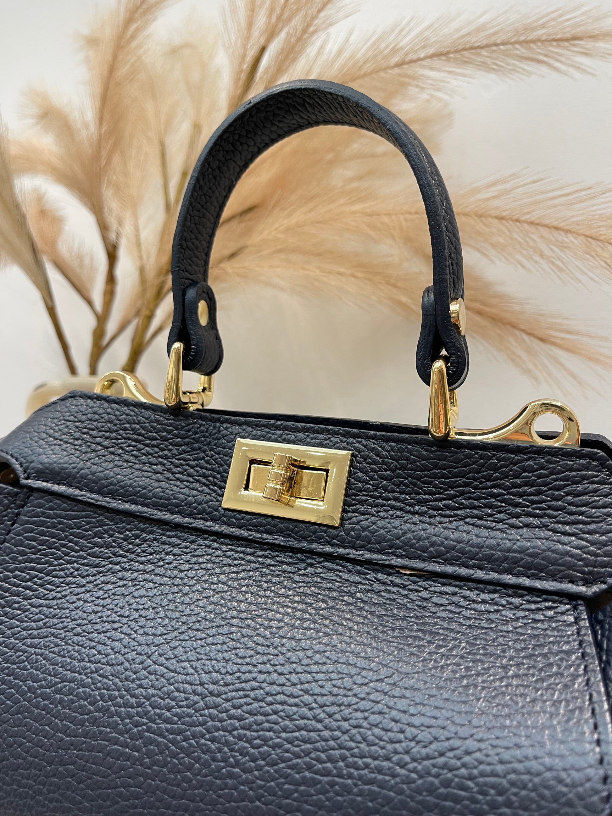 The perfect bag for strolling through the city. De tas is gemaakt van 100% echt leder en heeft gouden details. Er zit een bijpassend riempje bij zodat je de tas ook crossbody of over de schouder kan dragen. We’re obsessed!
