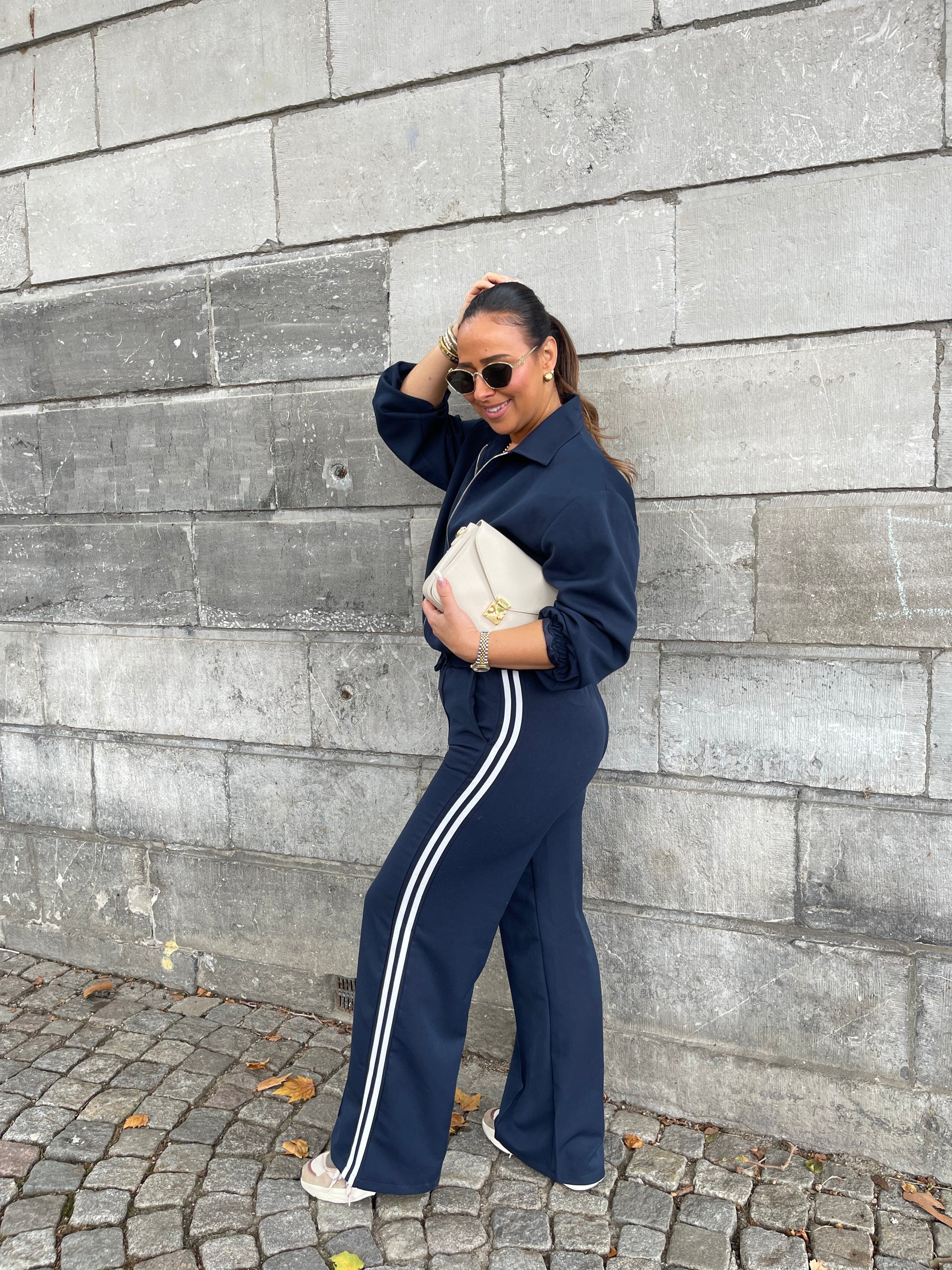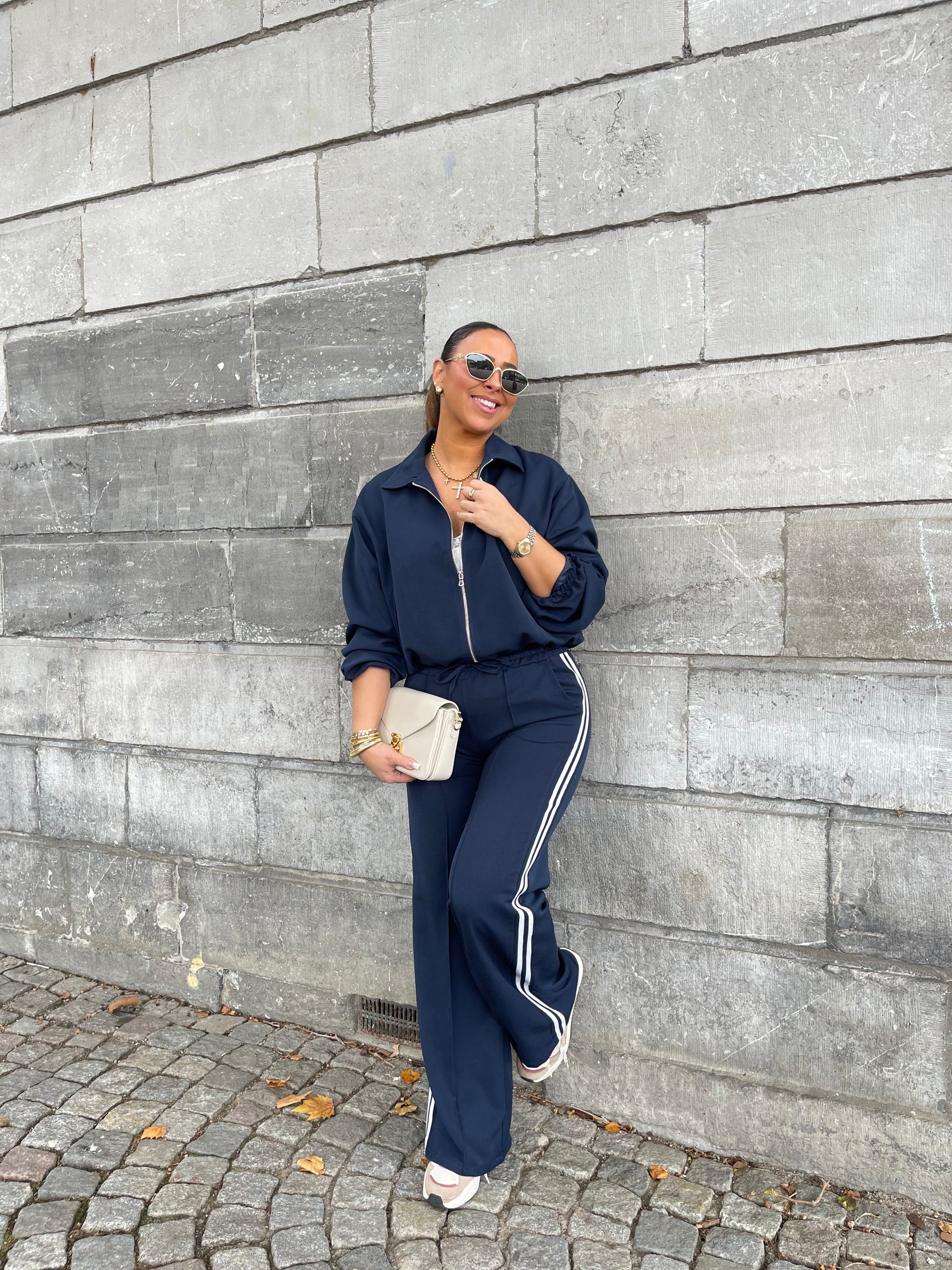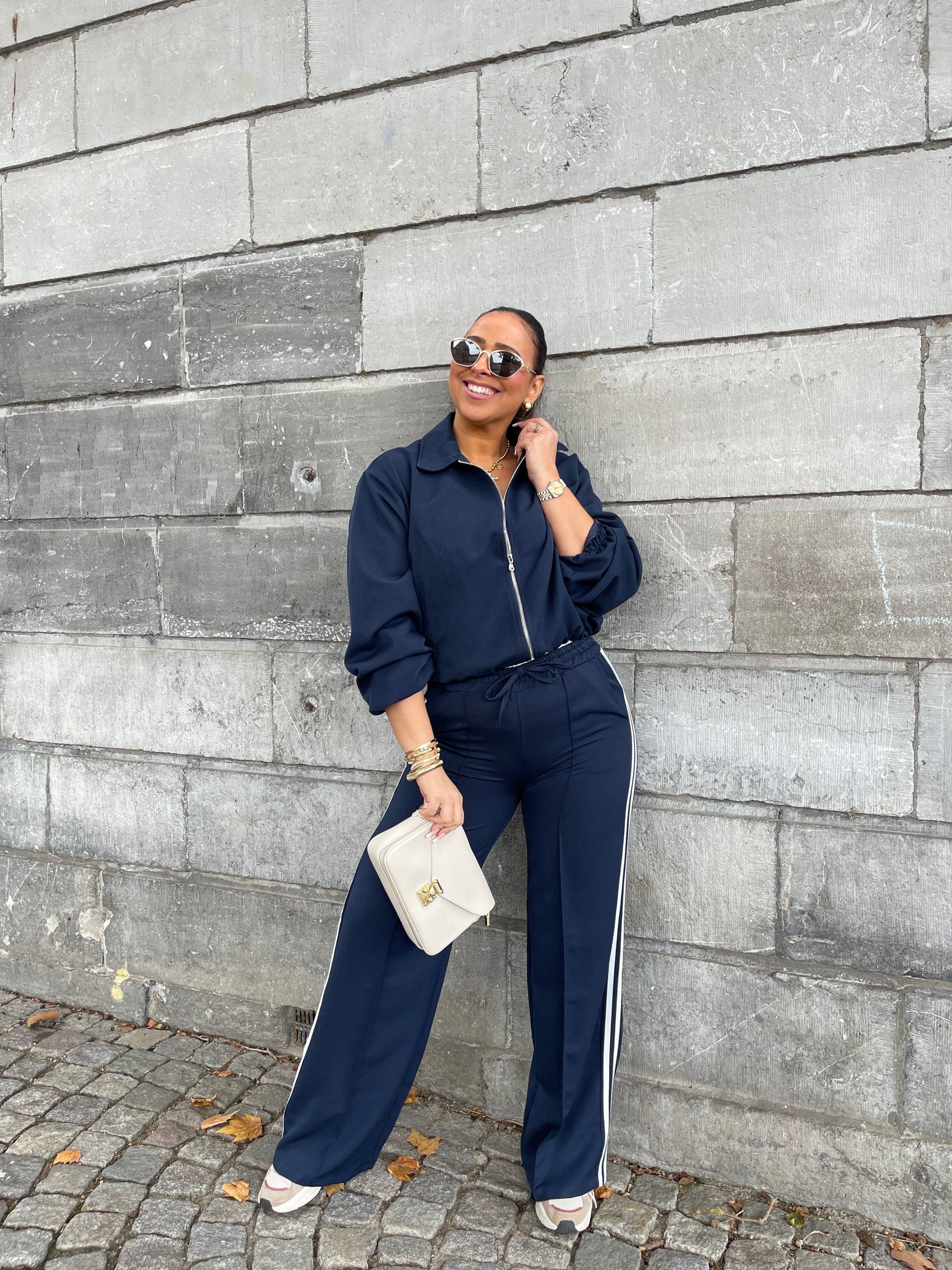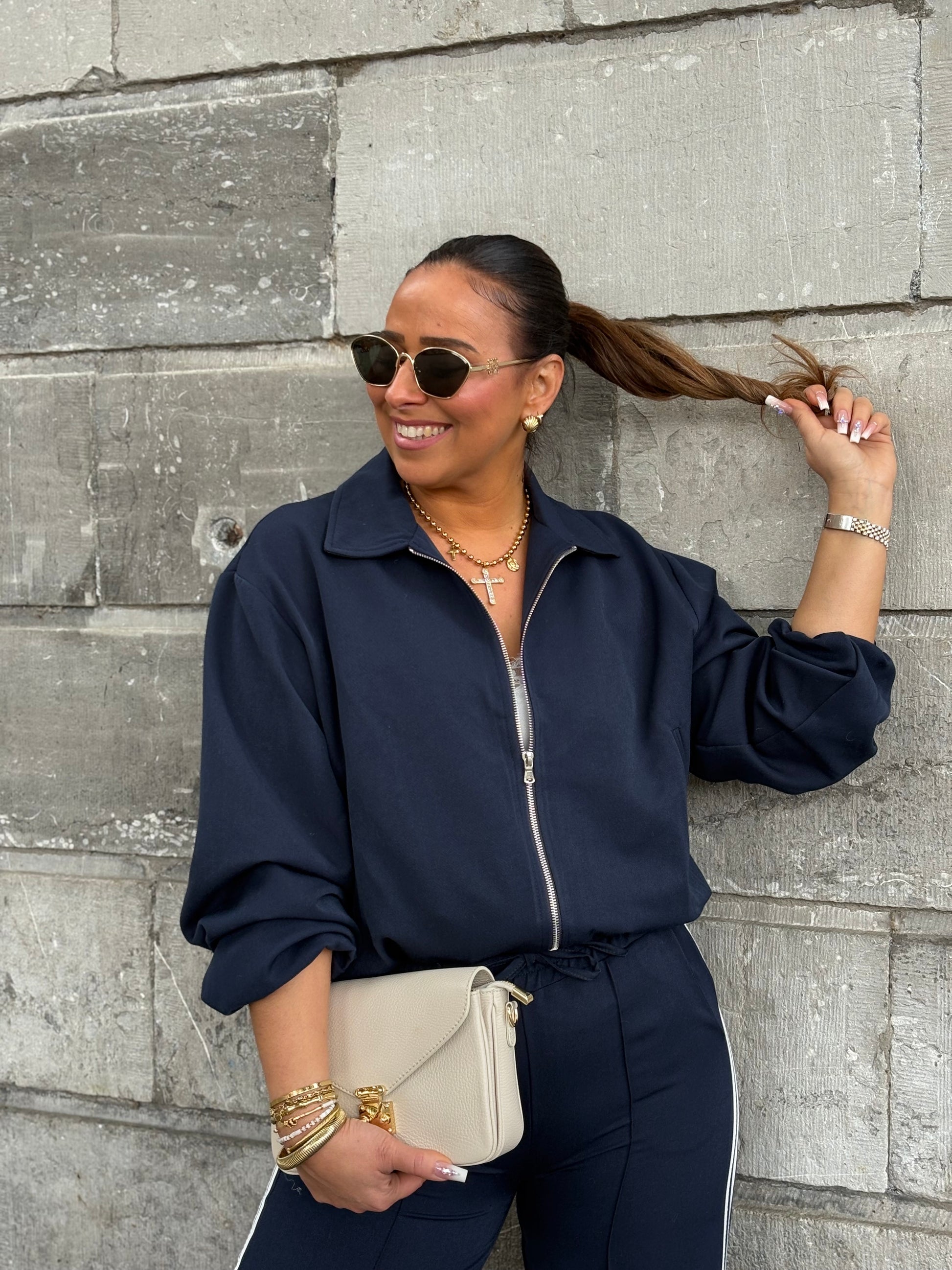 Oversized jasje met pofmouwtjes. Super leuk om met onze matching jogger te dragen, maar ook heel leuk op een jeans. Ons model is 1.74m lang en draagt maat m.