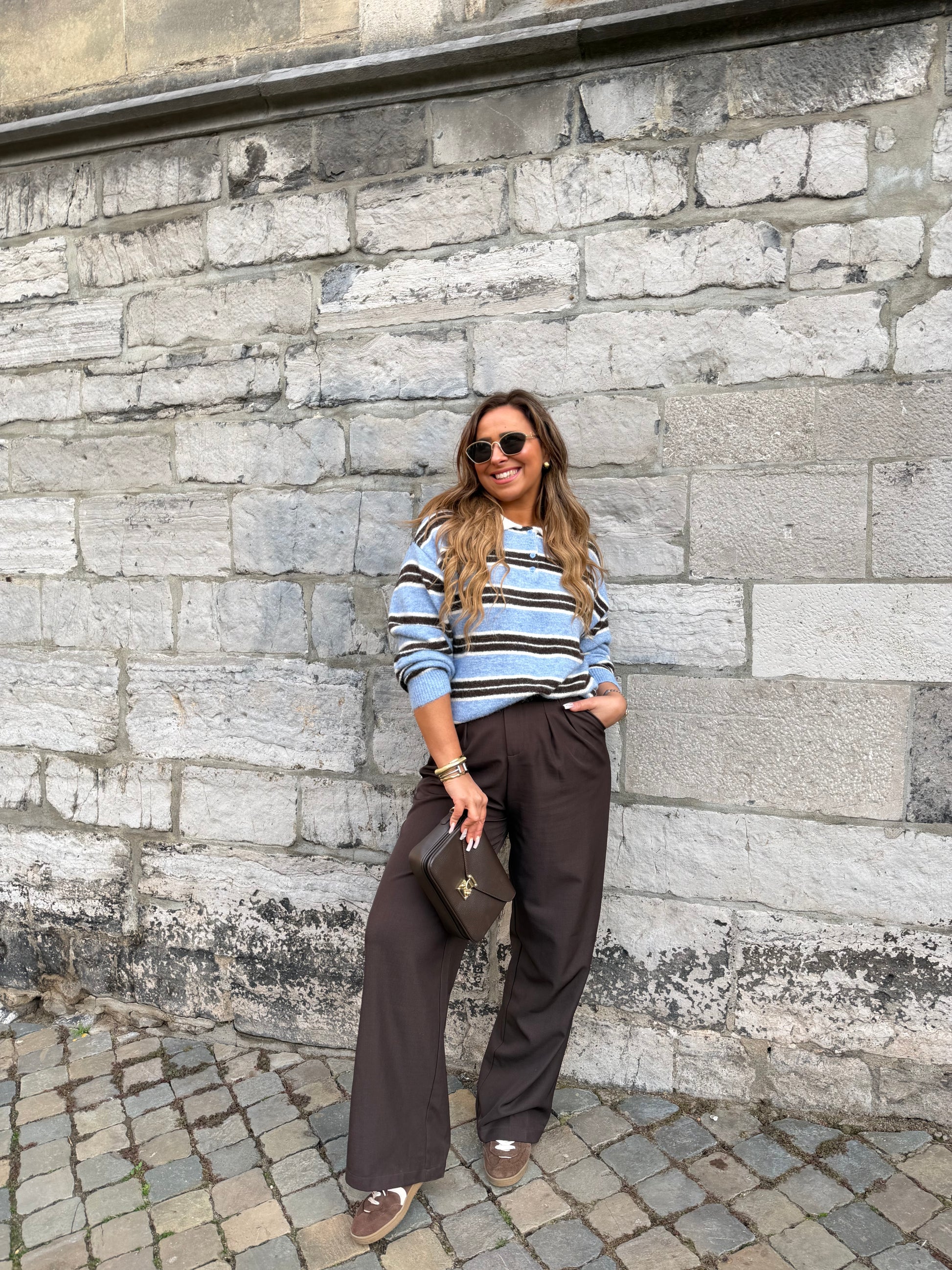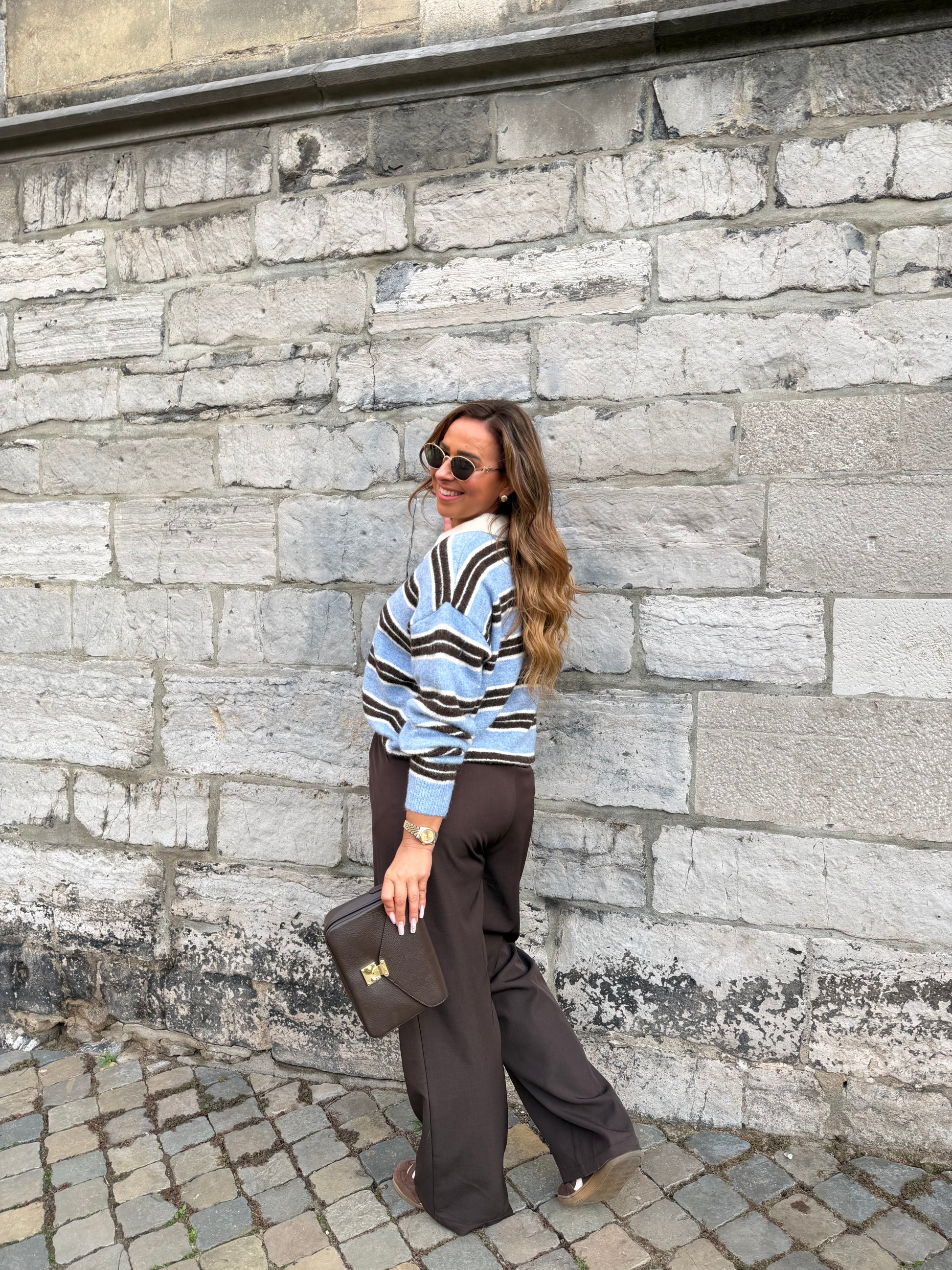 Super cute polotje met leuke streepjes details. One size, draagbaar voor de maatjes xs t/m xl. De sweater bevat een klein beetje wol, kriebelt niet. Let op op de hand wassen niet in de machine.
