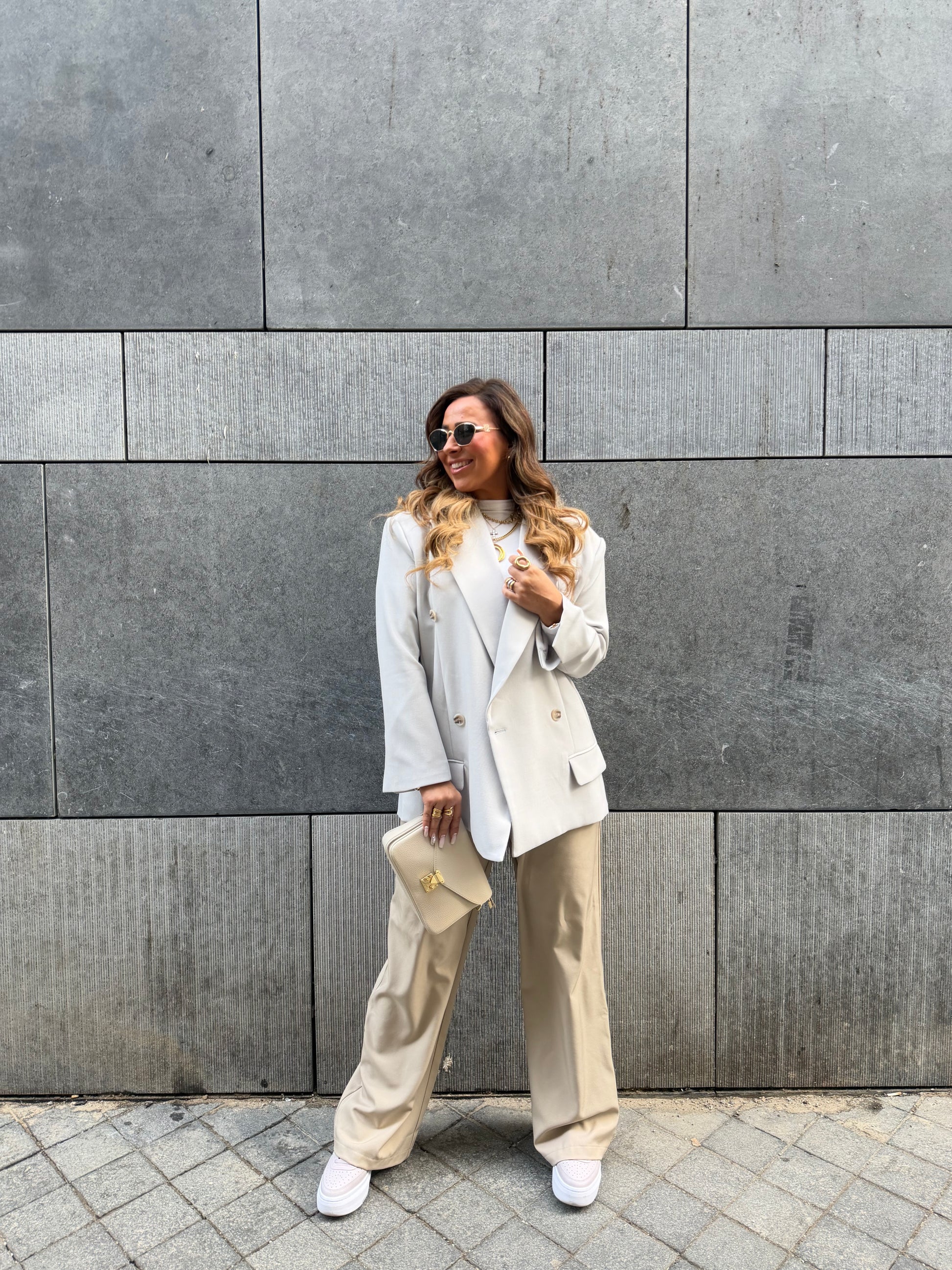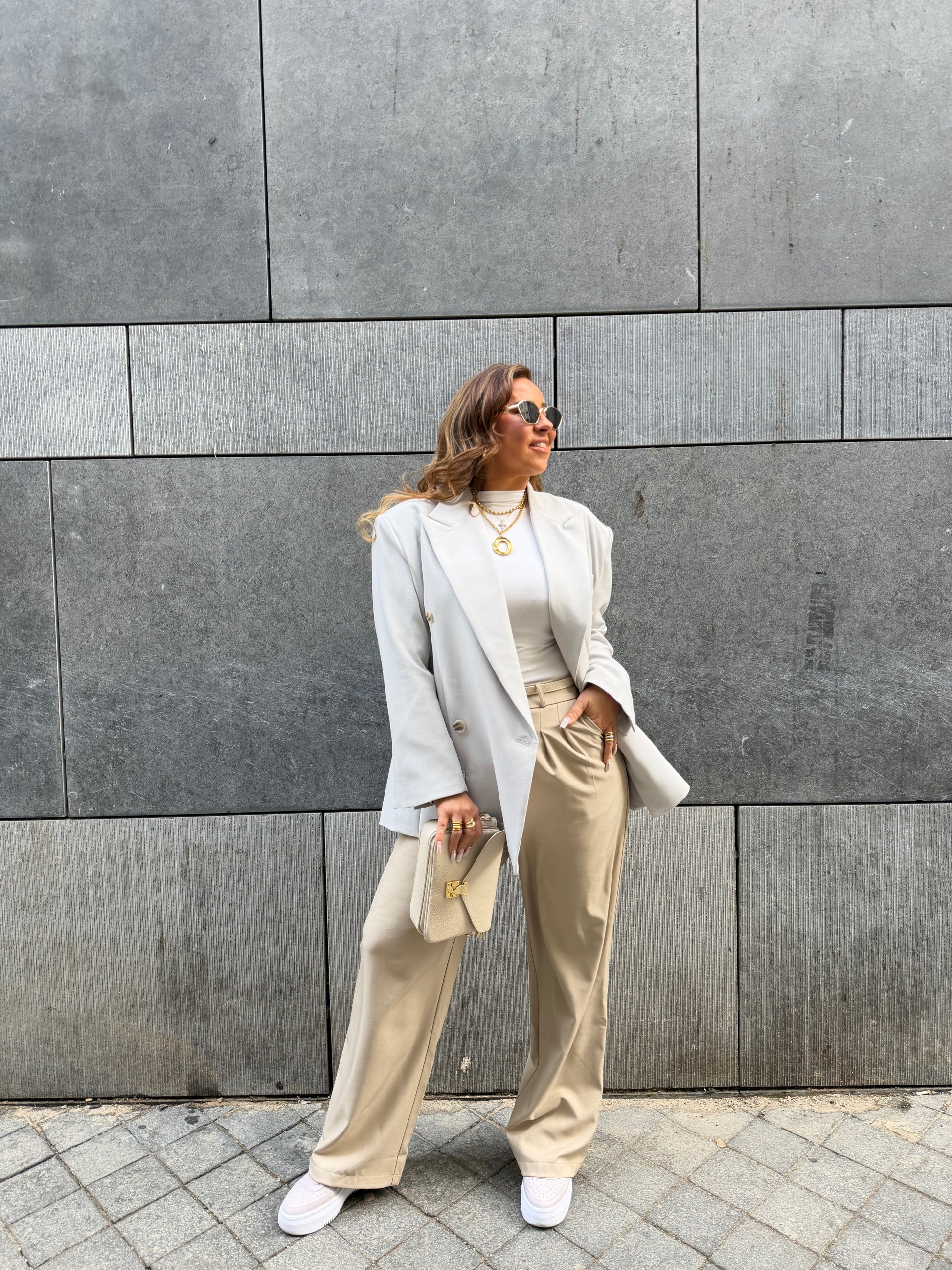 Mooie oversized blazer met zakjes ( kan je inknippen ). Leuk te combineren op een joggen of een pantalon, maar ook super mooi op een rokje of een jeans. Welke stijl je ook kiest it will look amazing! Ons model is 1.74m lang en draagt maat s/m.