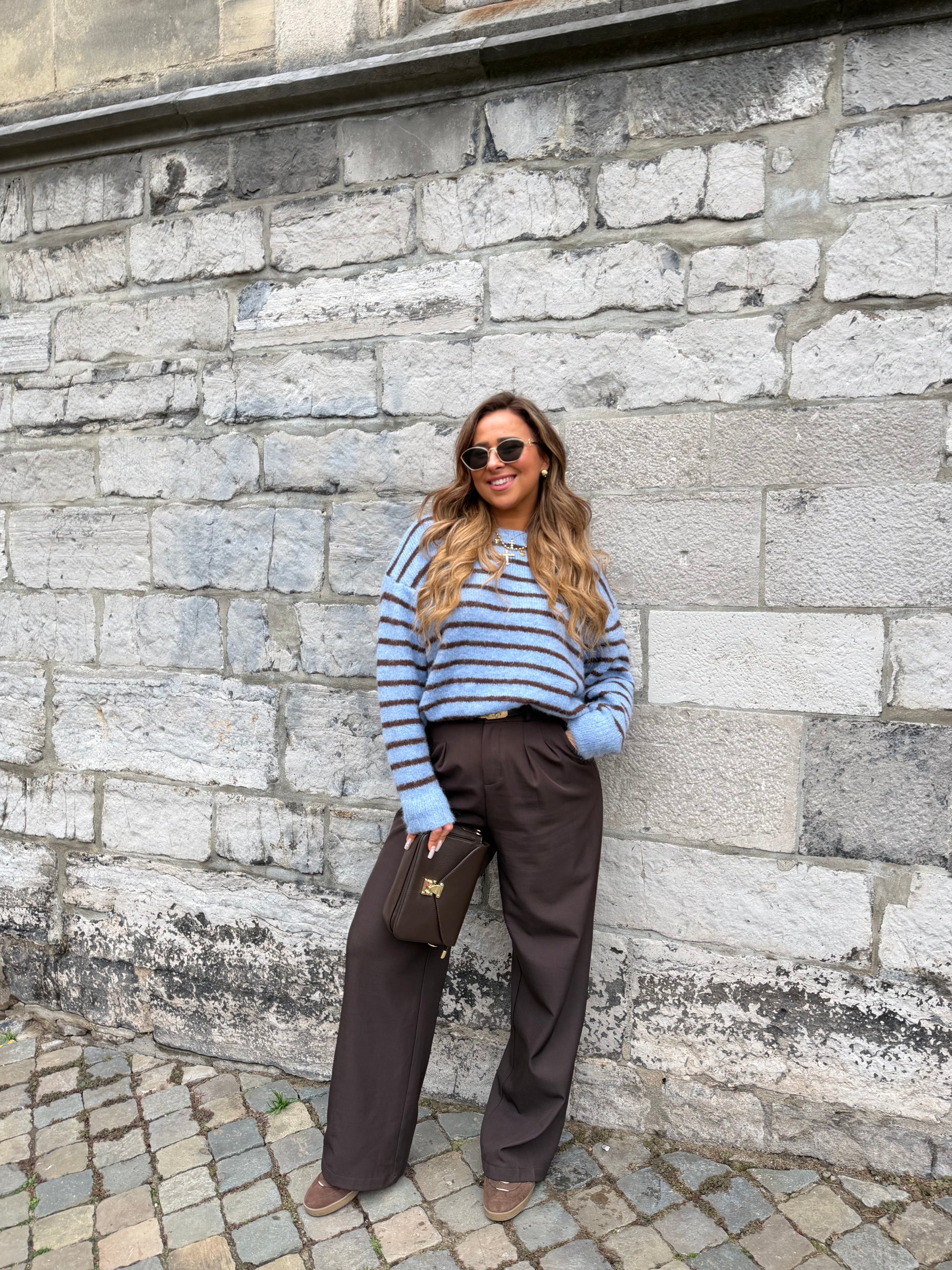 Super cute sweater met leuke streepjes details. One size, draagbaar voor de maatjes xs t/m xl. De sweater bevat een klein beetje wol, let op op de hand wassen niet in de machine.