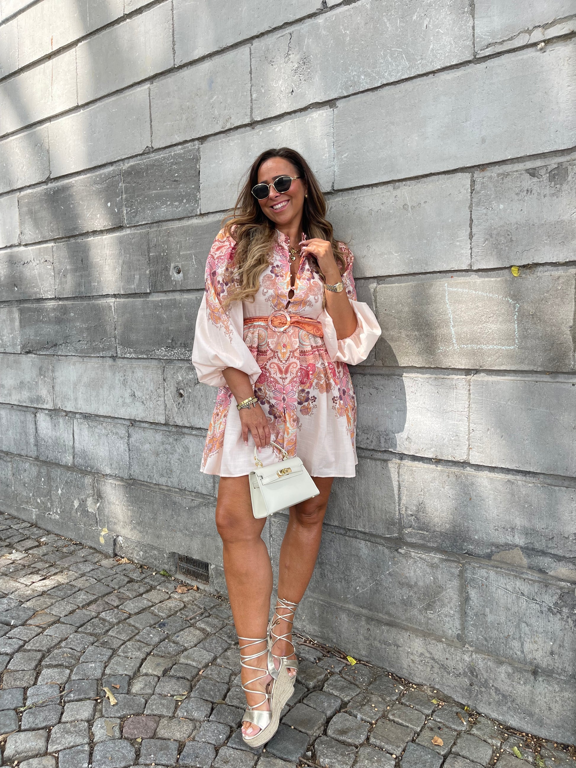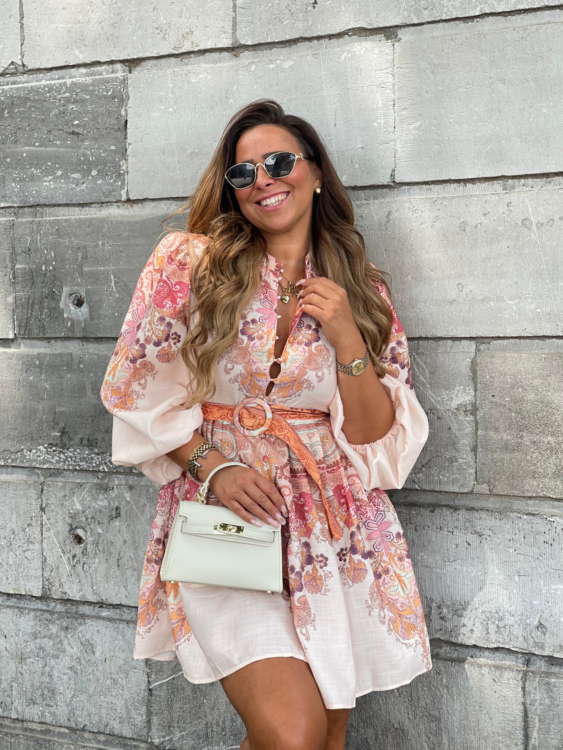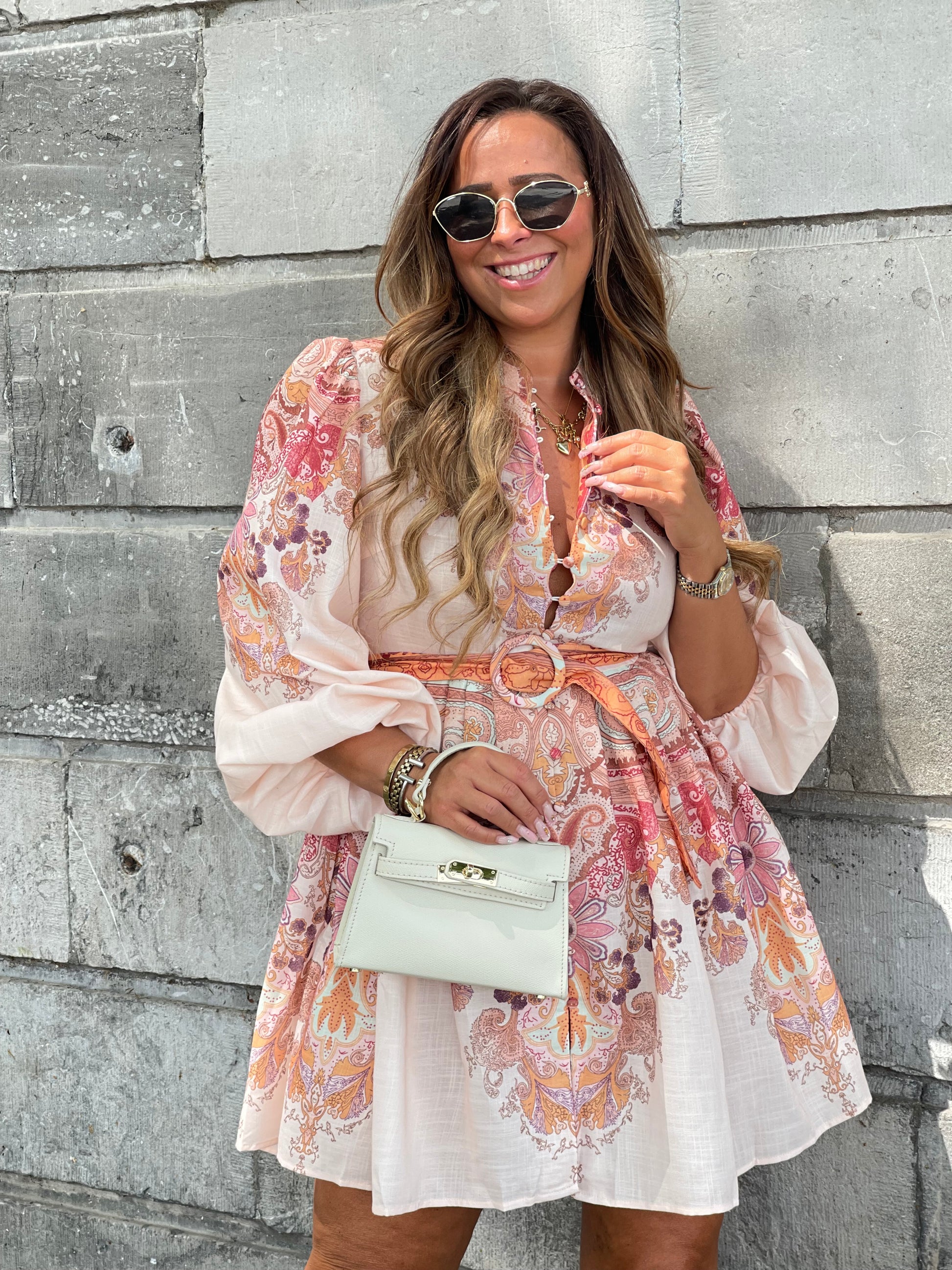 Prachtige jurk met mooie detalis en een centuurtje. Valt goed op maat, je kan gewoon je eigen maat bestellen.