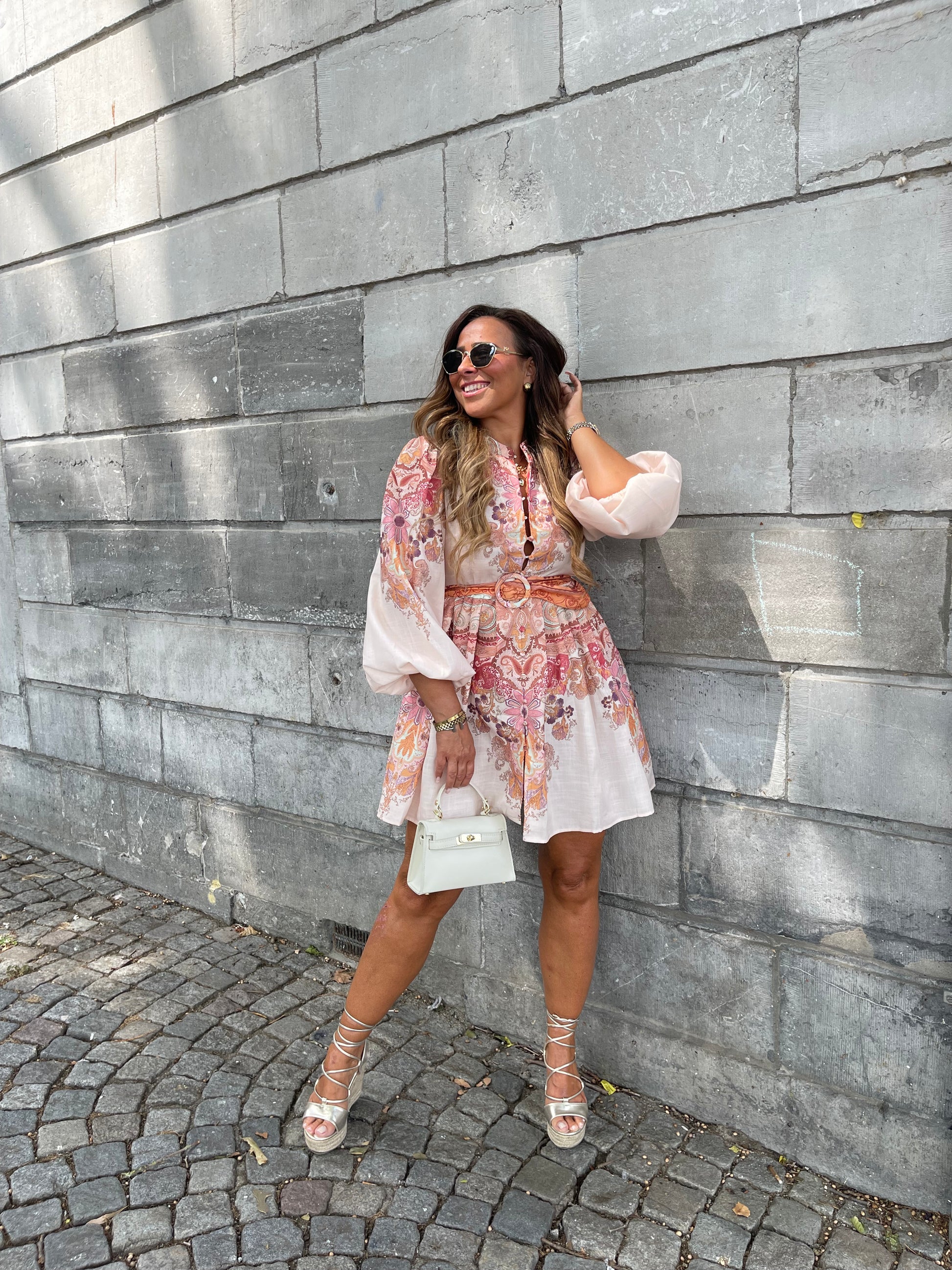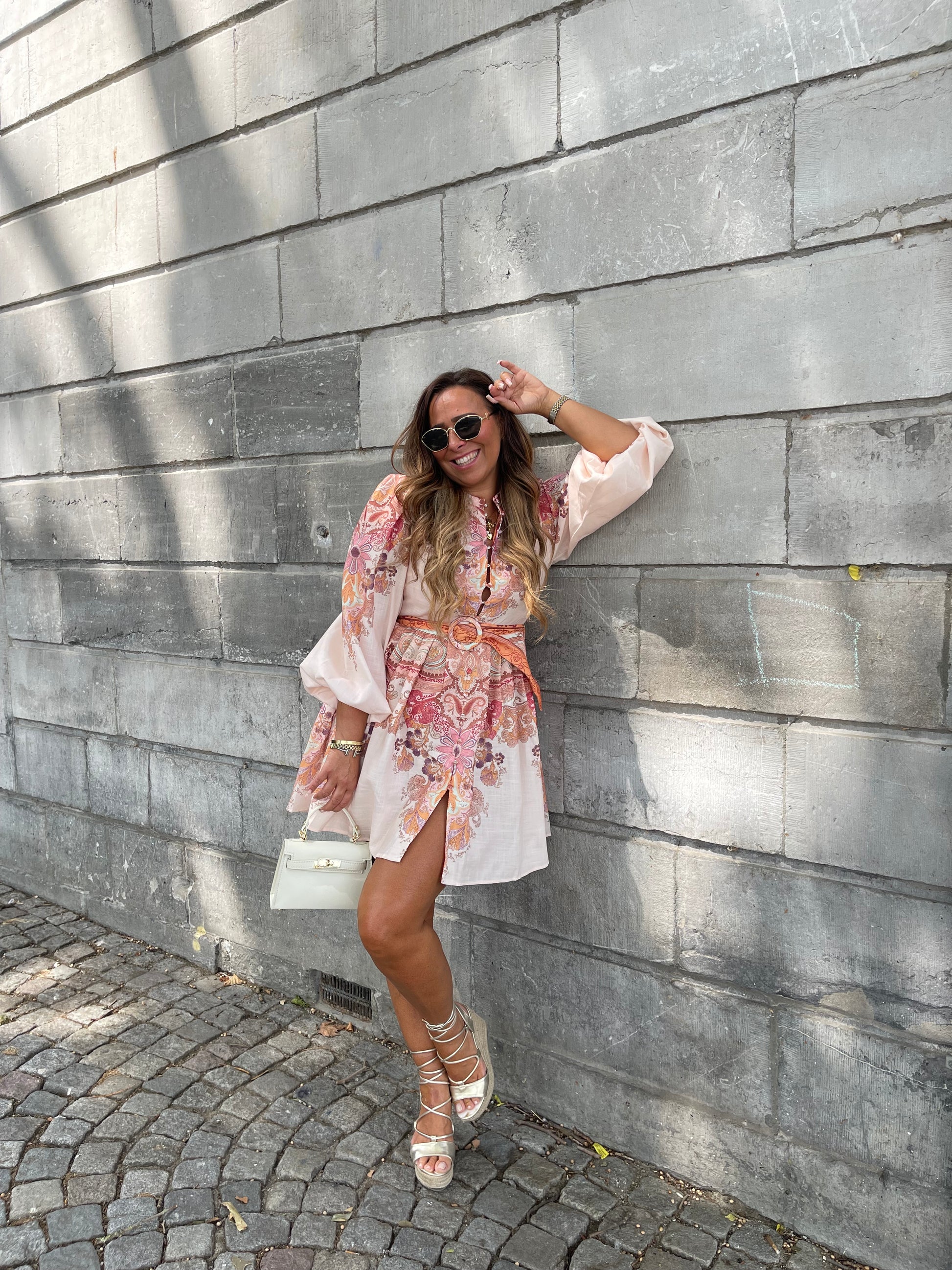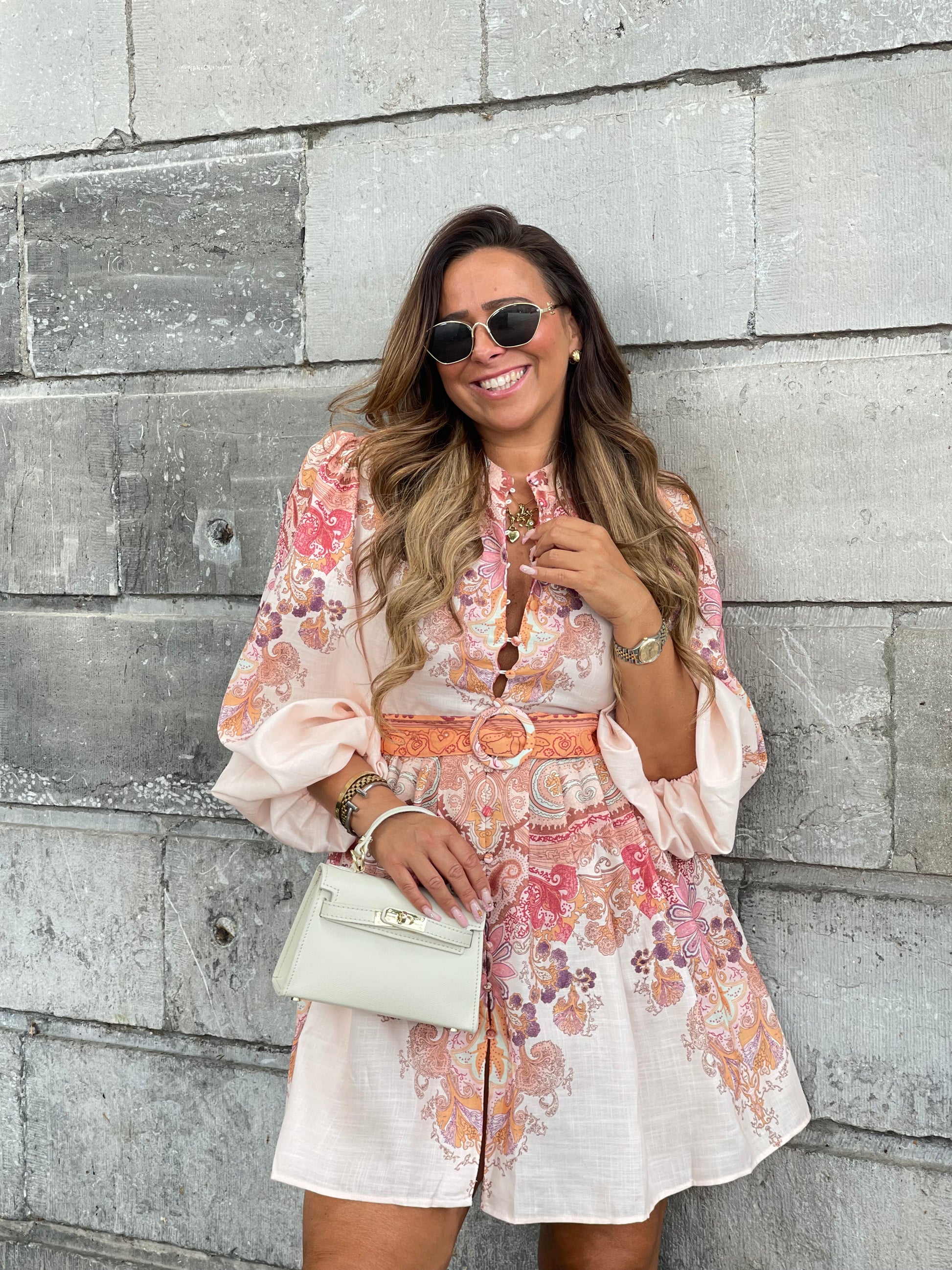 Prachtige jurk met mooie detalis en een centuurtje. Valt goed op maat, je kan gewoon je eigen maat bestellen.