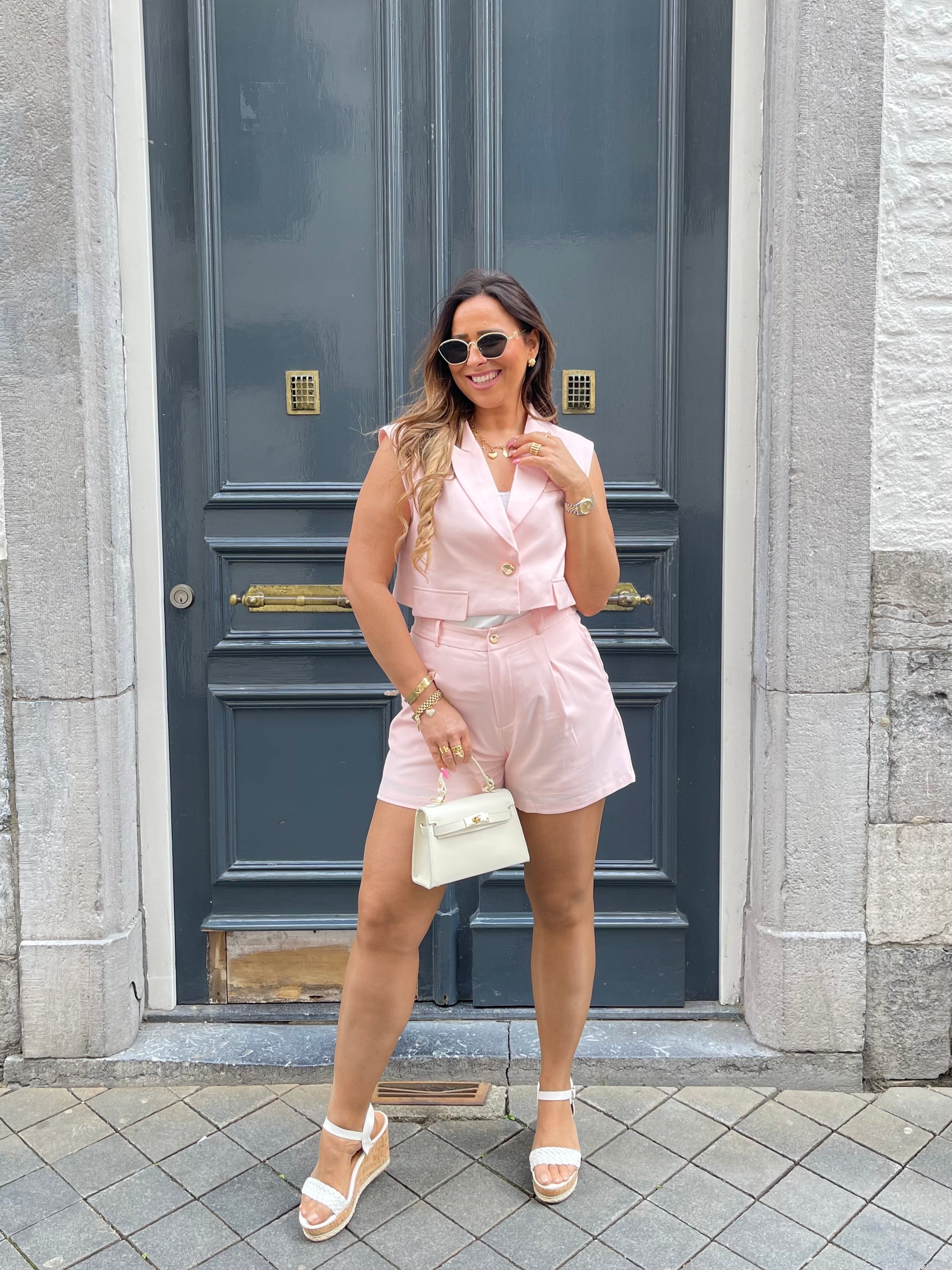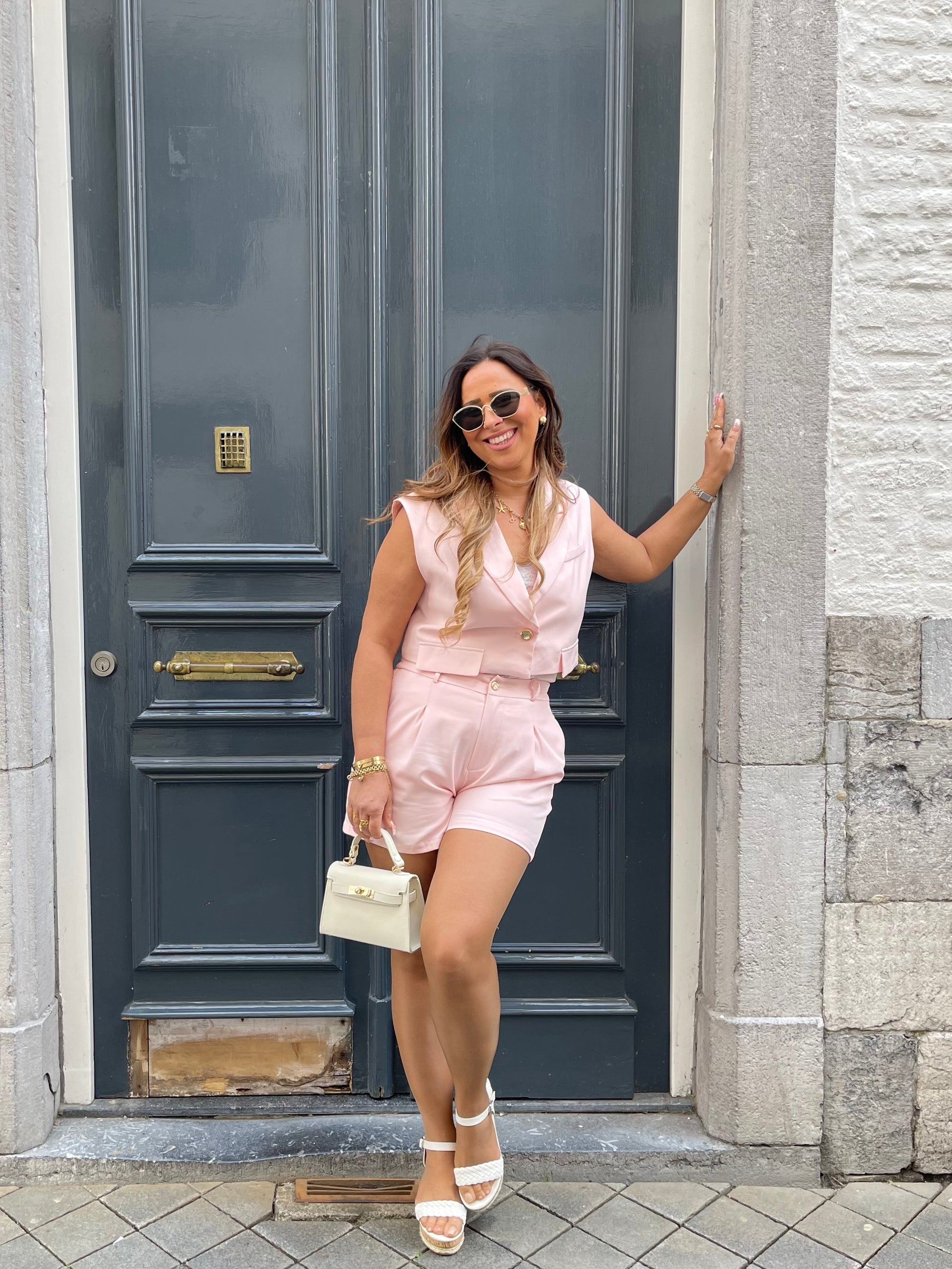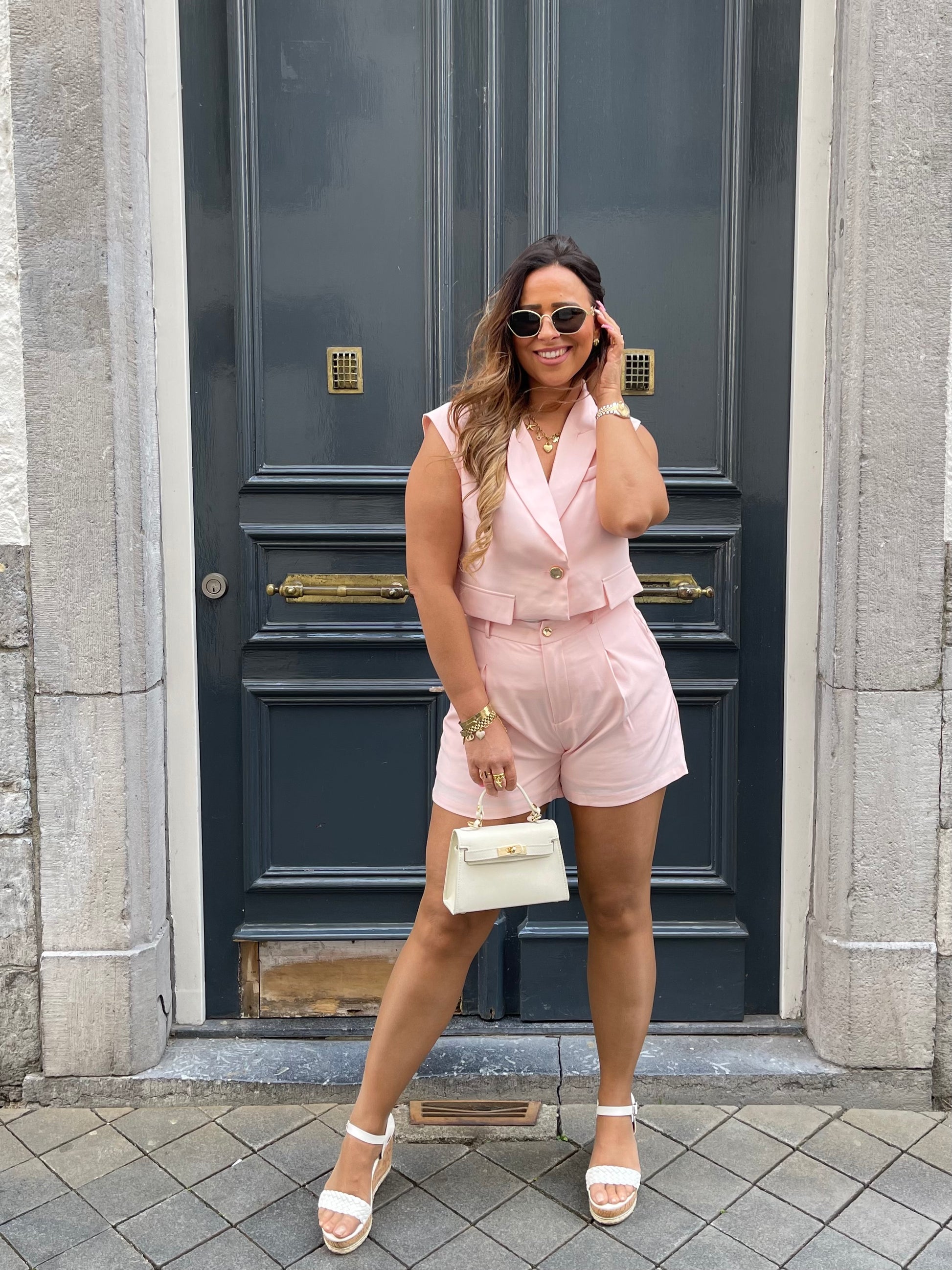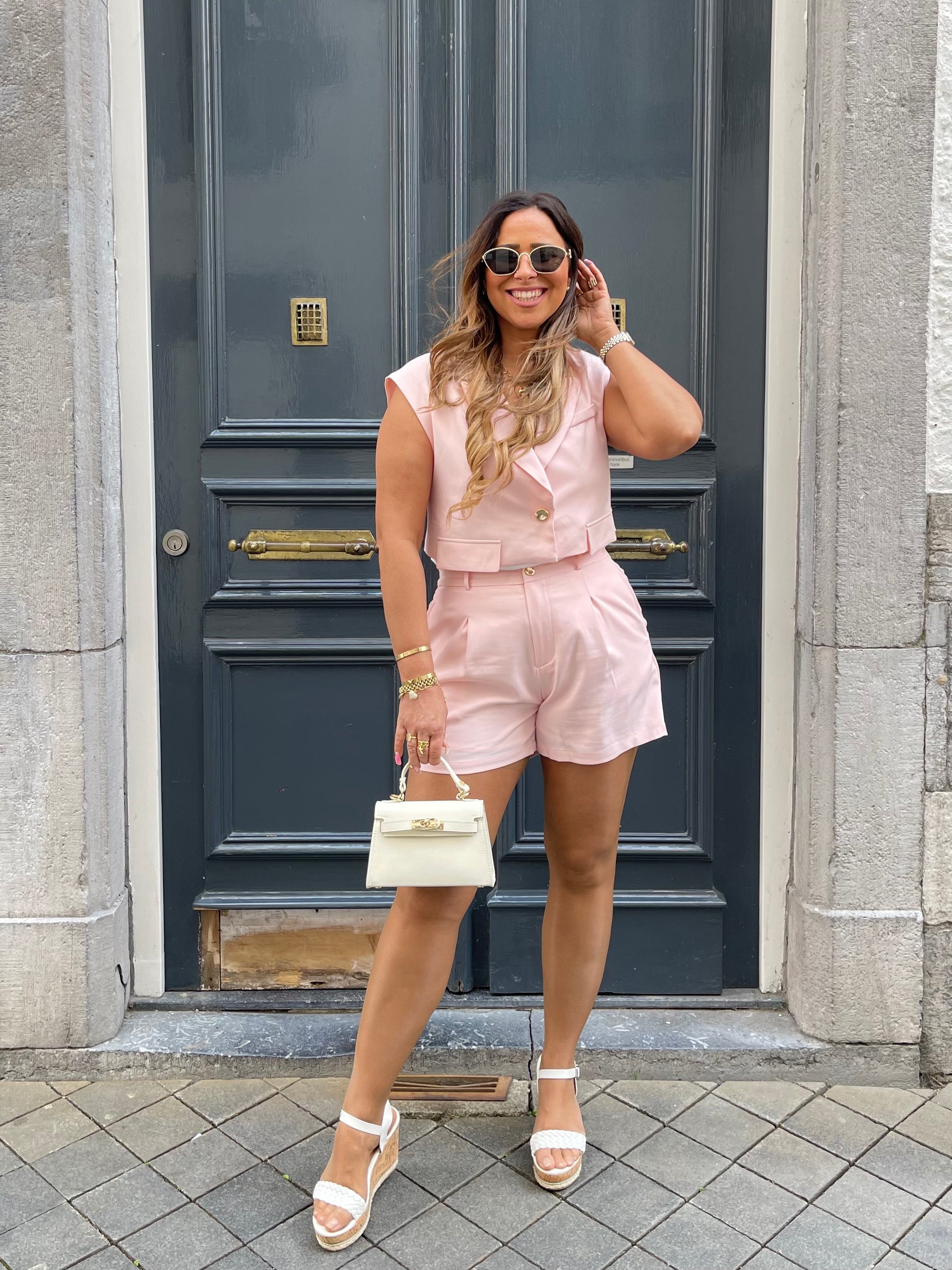 Beeldig twinsetje die je samen maar ook los van mekaar kan dragen. Het broekje is dubbelgevoerd en schijnt dus niet door. Hij heeft ook een elastieke band aan de achterkant, waardoor hij dus ook mega lekker zit en stretchy is. Ons model is 1.74m lang en draagt maat m/l.