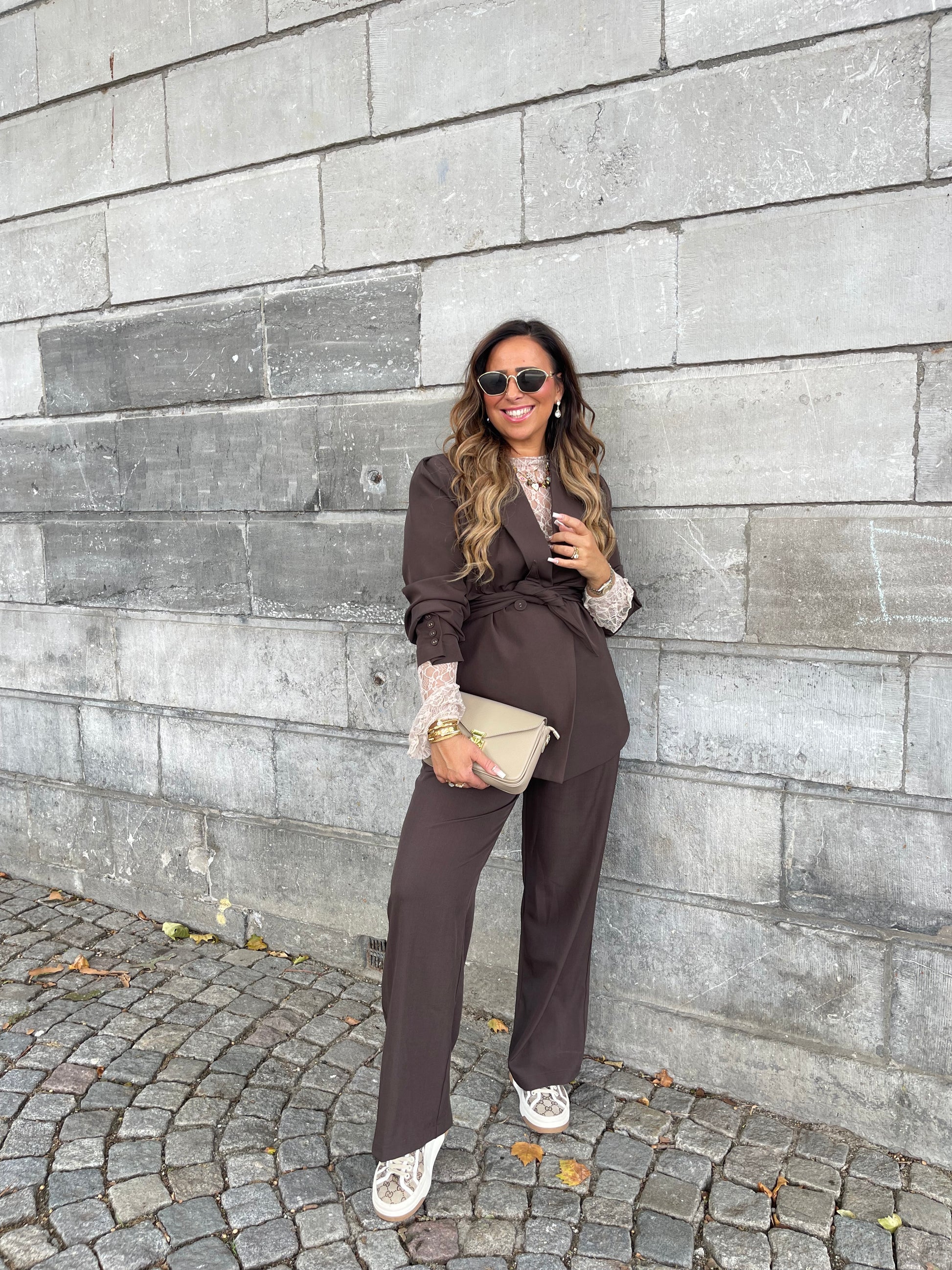 Deze beeldige oversized blazer is echt een musthave! Super leuk te dragen met de bijpassende pantalon. De blazer heeft ook een losse brede centuur, zodat je hem ook strak om je heen kan dragen! Love it🩷