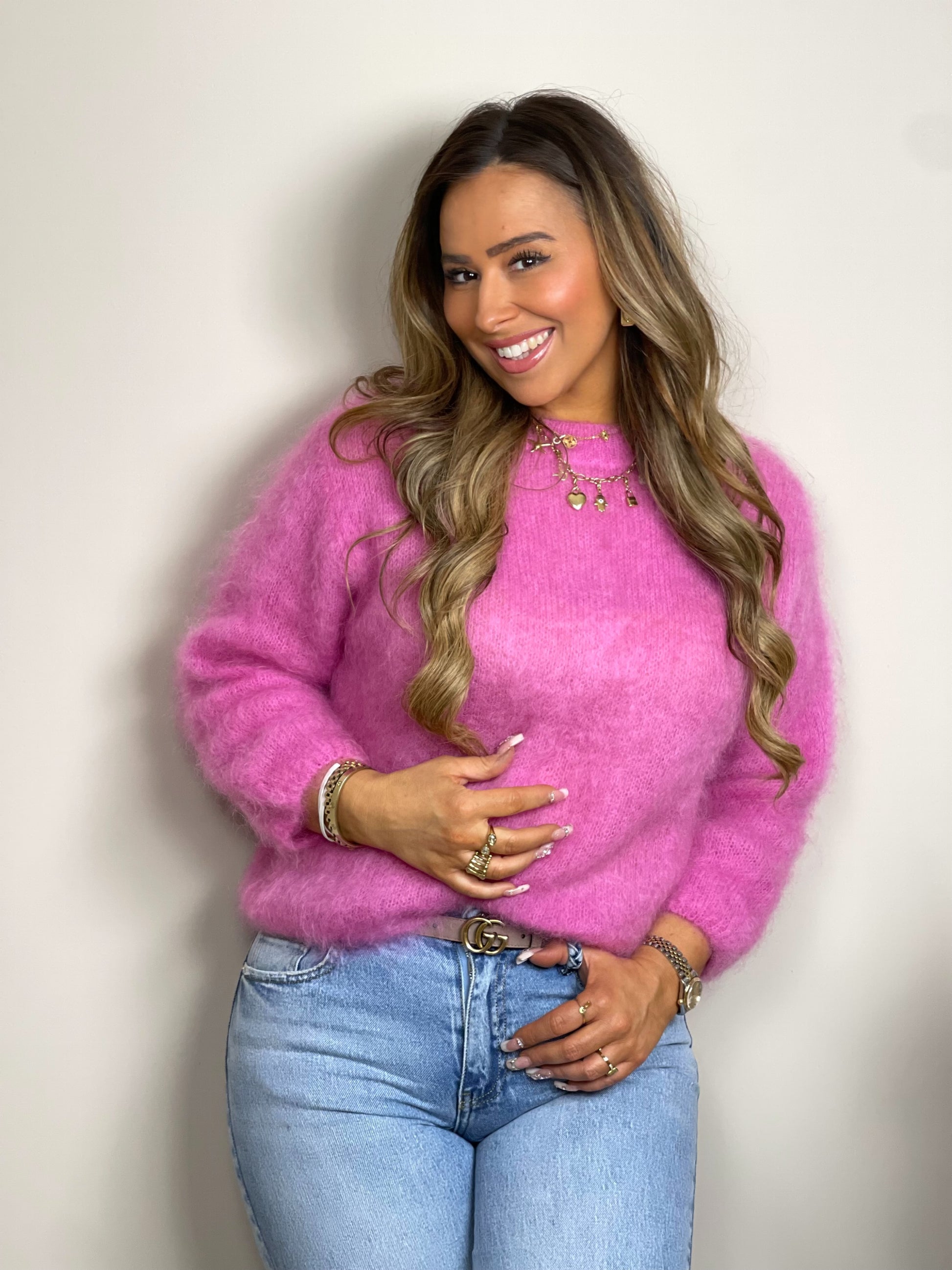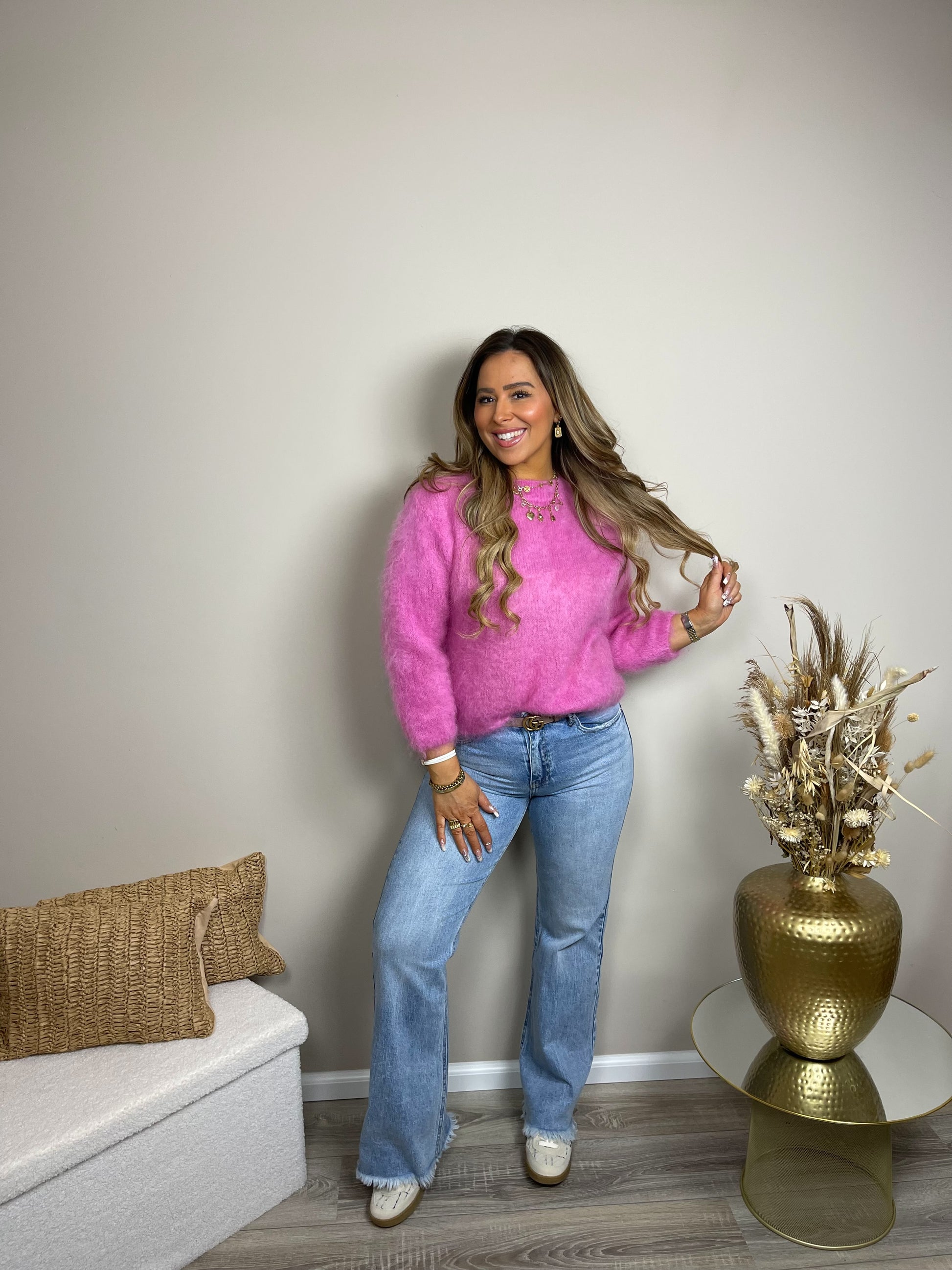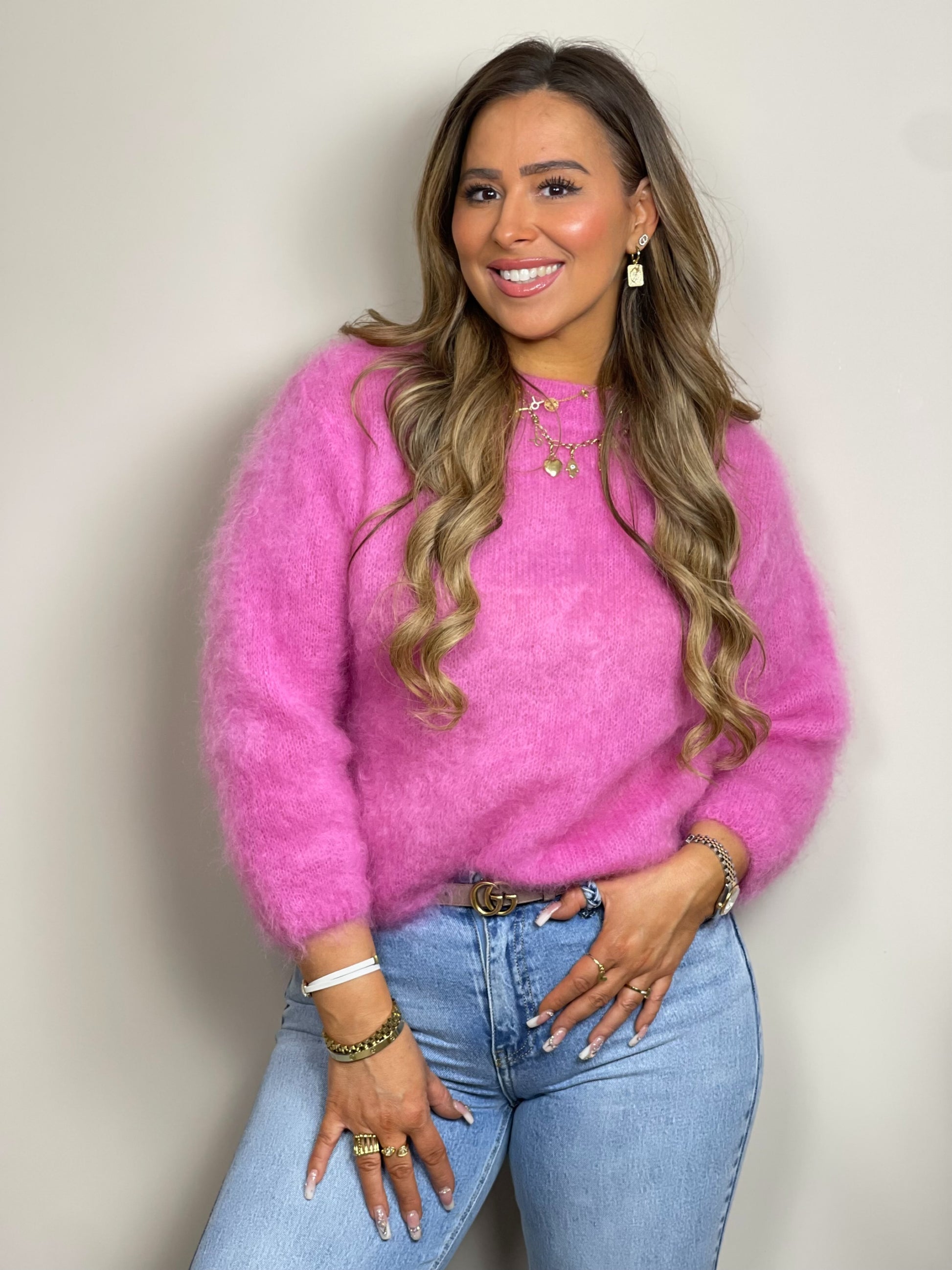 Prachtige sweater gemaakt van 81% kid mohair. Niet alleen mooi voor het oog, maar ook lekker cozy en warm. Let op dit model mag niet in de wasmachine gewassen worden, maar op de hand.