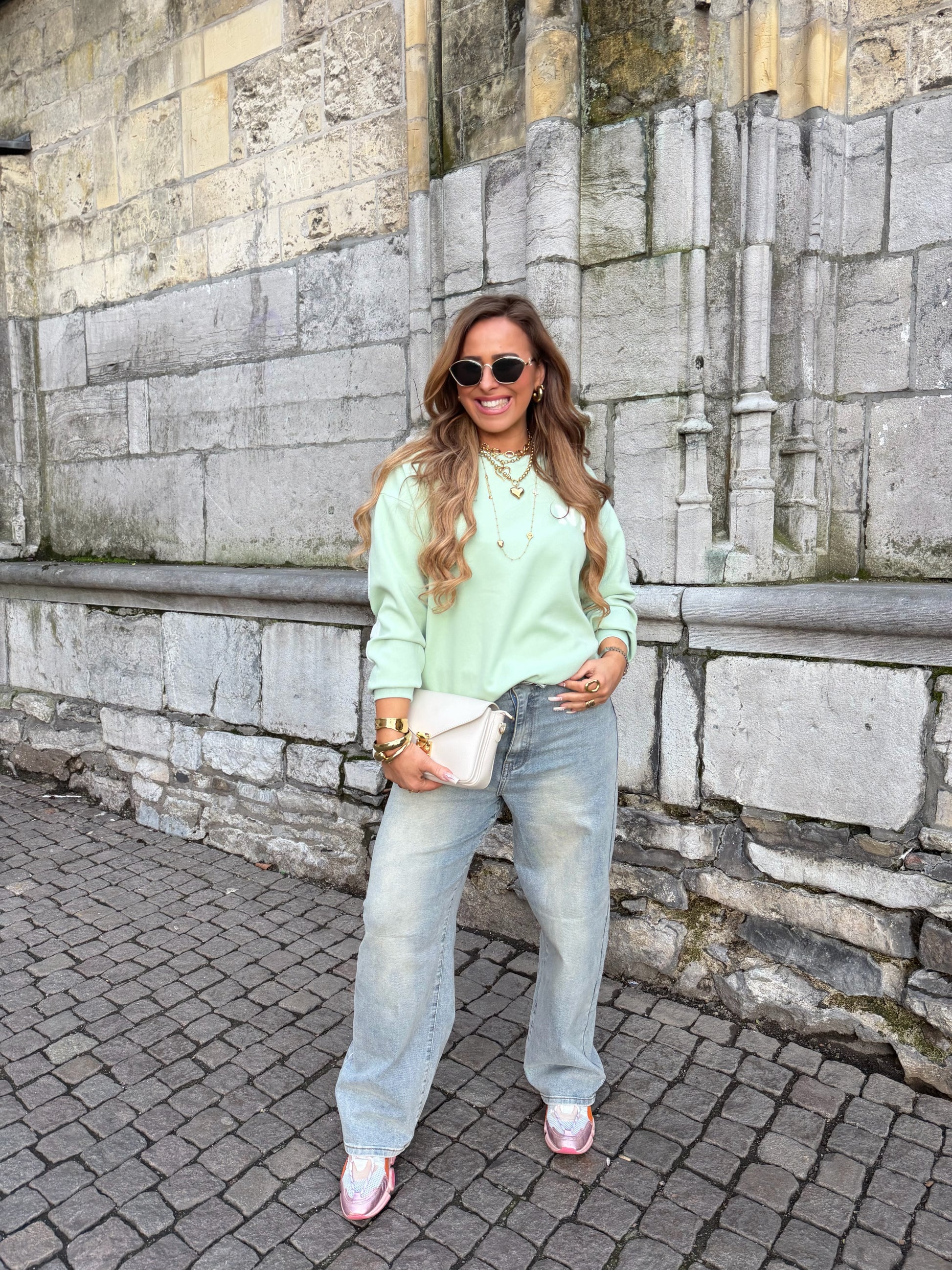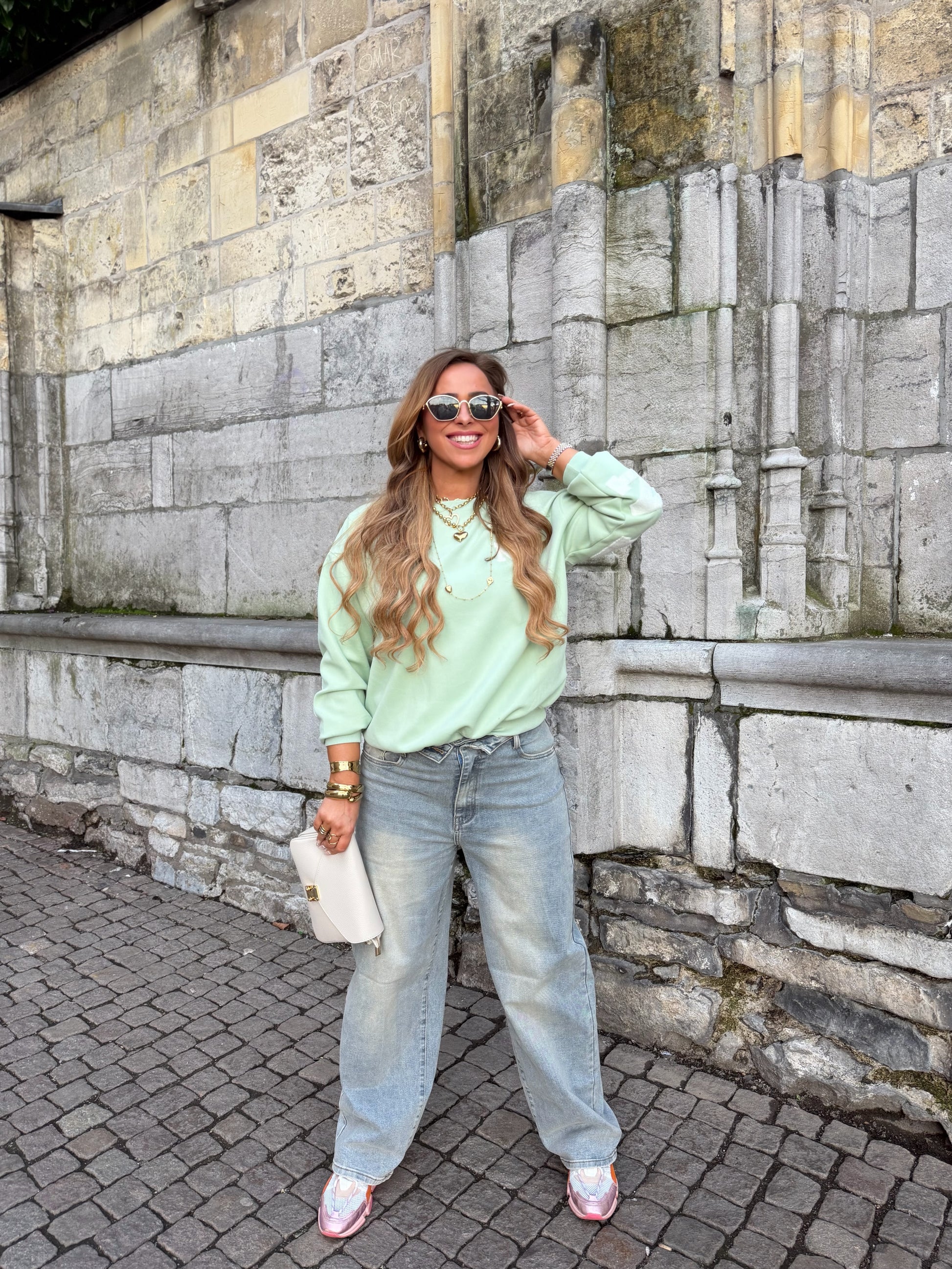 Mooie baggy sweater met een leuke opdruk op de achterkant. One size, draagbaar voor de matjes xs t/m xl.