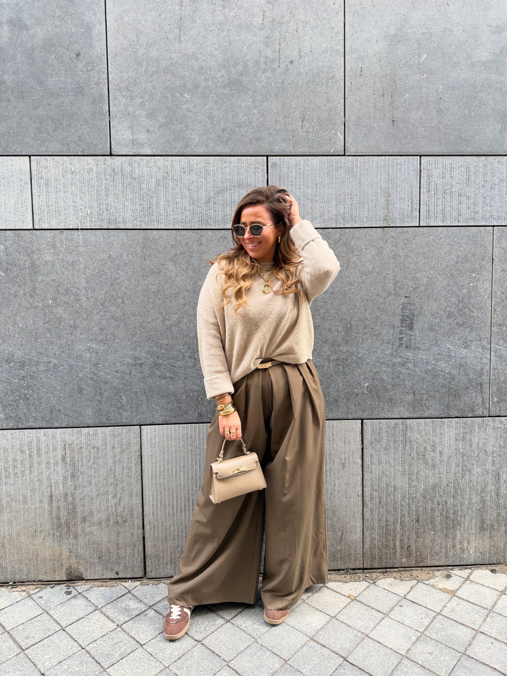 Super mooie zachte sweater met een omgeslagen mouwtje. Lekker baggy, one size, draagbaar voor de maatjes xs t/m xl. Gemaakt van 30% babyalpaca , 32% polyamide en 38% acryl. Super zacht en kriebelt niet!