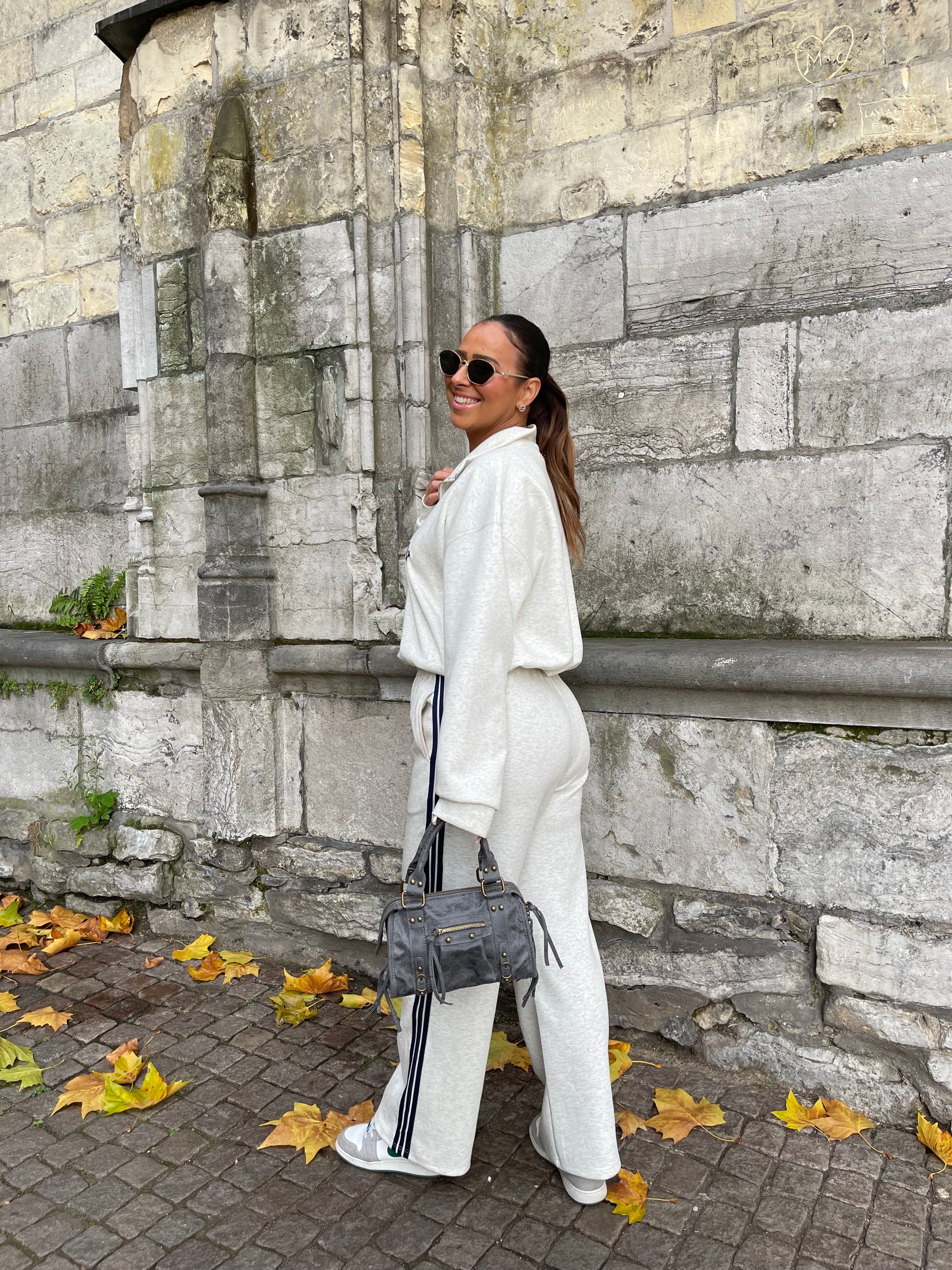 Mooie stretchy jogger met blauwe streepjes aan de zijkant. De jogger heeft een elastieke band aan de bovenkant en valt goed op maat ons model is 1.74m lang en draagt maat s/m.