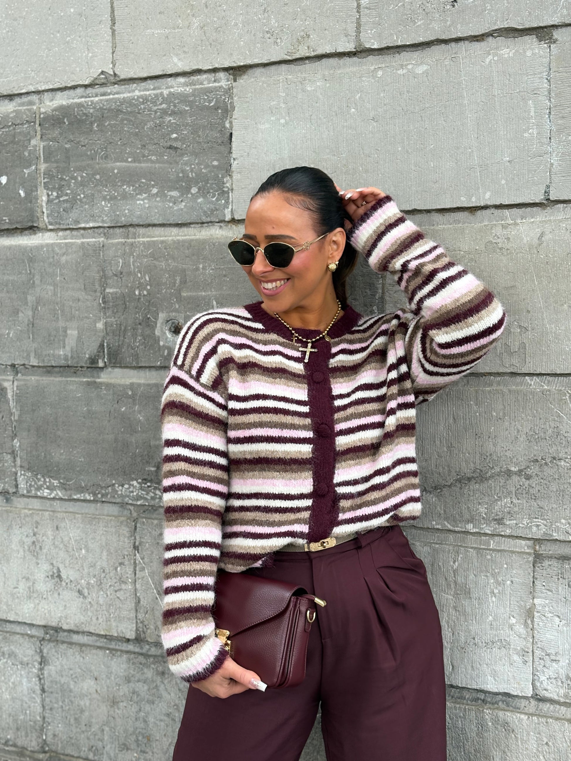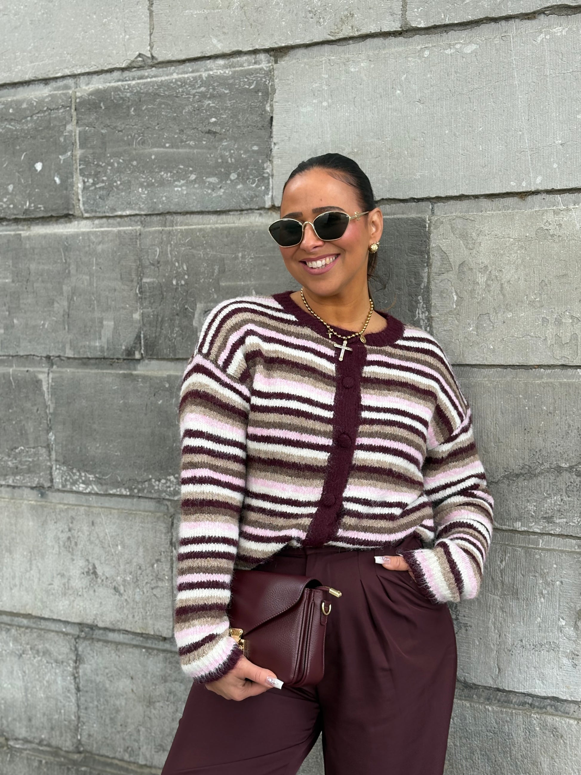 Super cute vestje met mooie streepjes details. One size, draagbaar voor de maatjes xs t/m xl. Het vestje bevat een klein beetje wol, kriebelt niet.