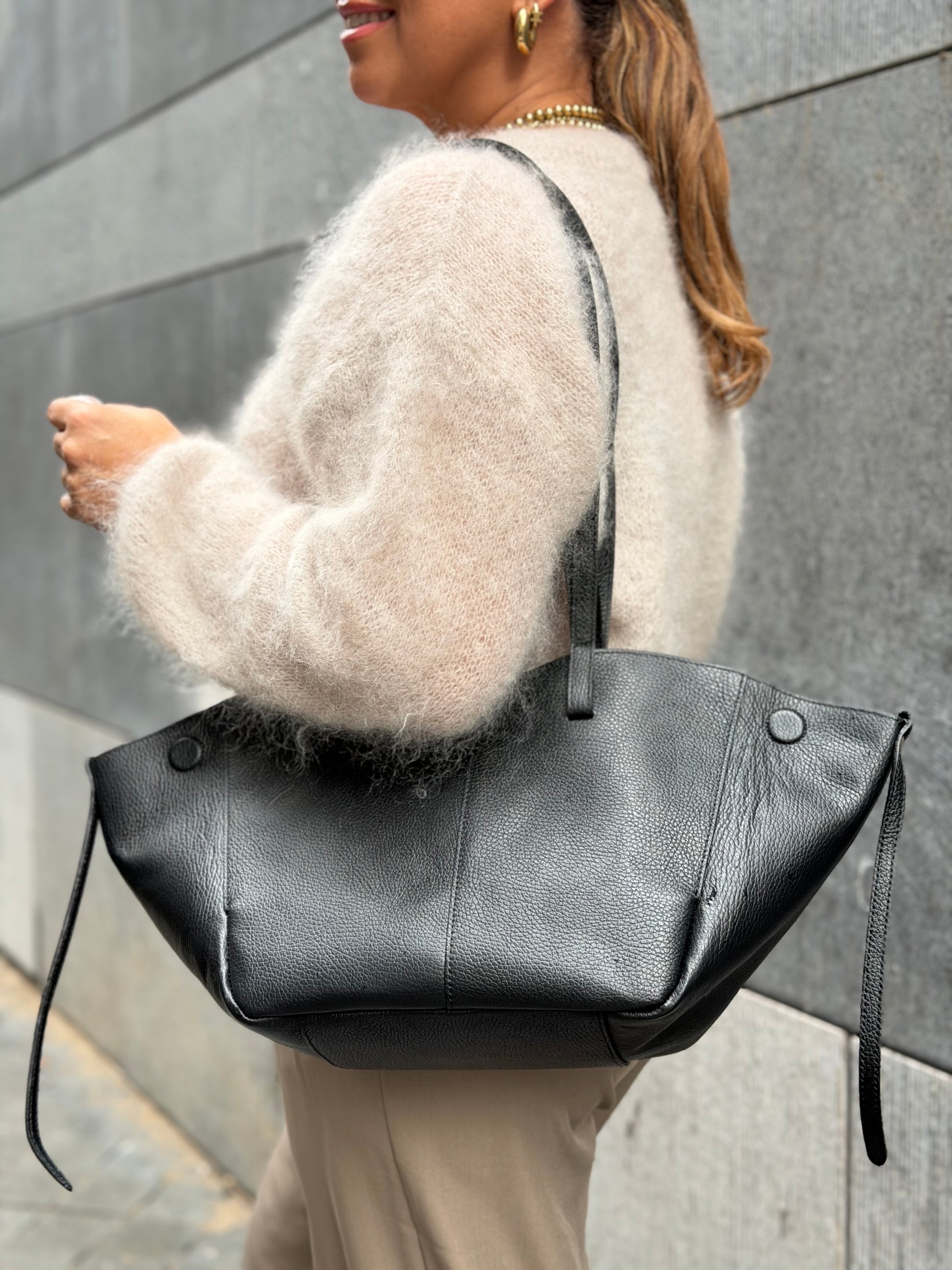 Prachtige lederen tas met een ritsje en een extra kleine binnentasje. Leuk om in de hand, maar ook om je schouder heen te dragen. De tas is aan de zijkant voorzien van magneetjes, waardoor je hem dus ook kan inklappen en kleiner maken! This is the it bag you need girls💓