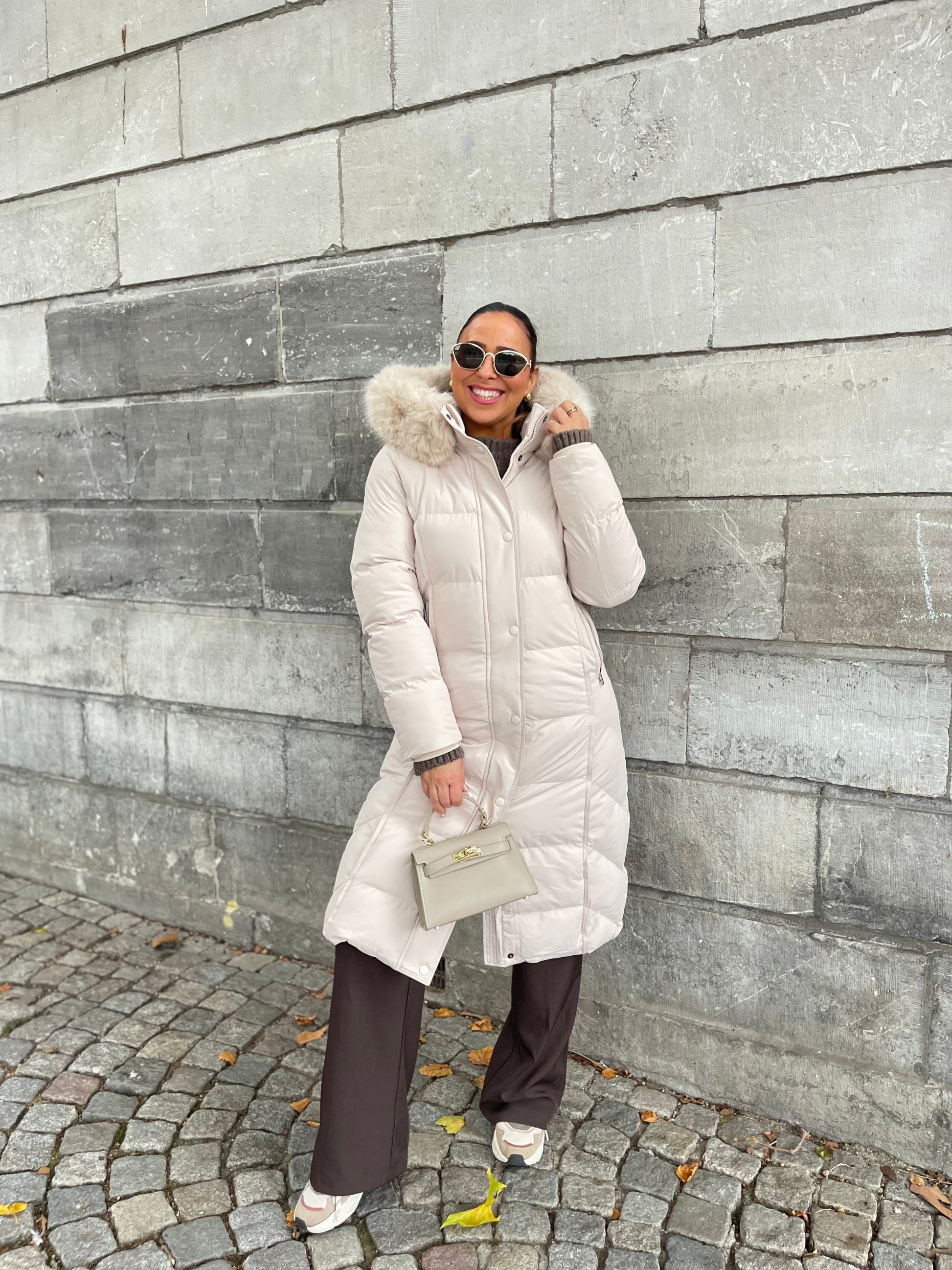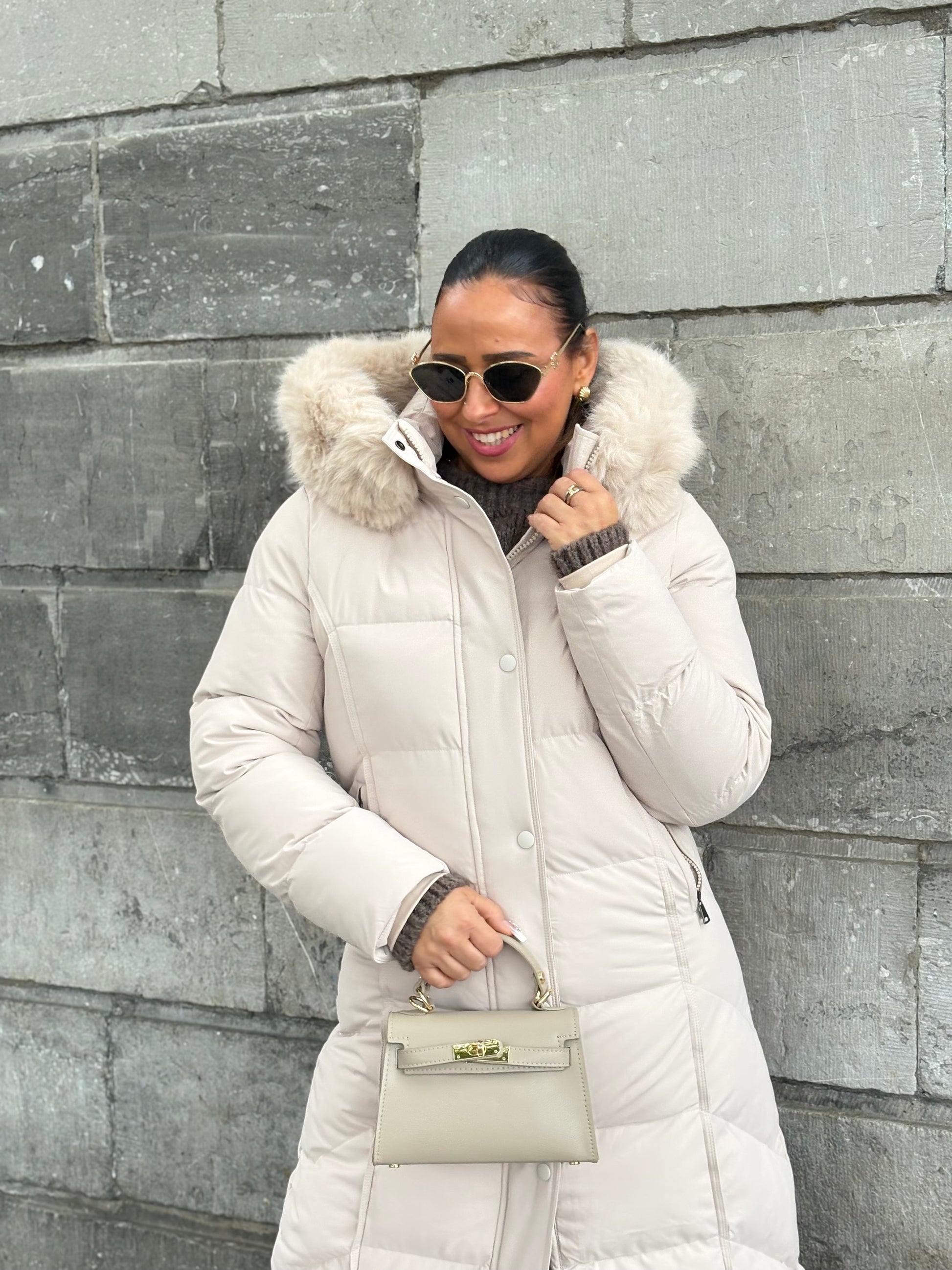 Mooie getailleerde pufferjacket men een faux fur kraagje en een capuchon. De kraag kan er ook afgehaald worden. De jas heeft een rits die zowel van onder als van boven open gemaakt kan worden. Voorzien van drukknoopjes en steekzakjes. Valt goed op maat, ons model is 1.74m lang en draagt maat m.